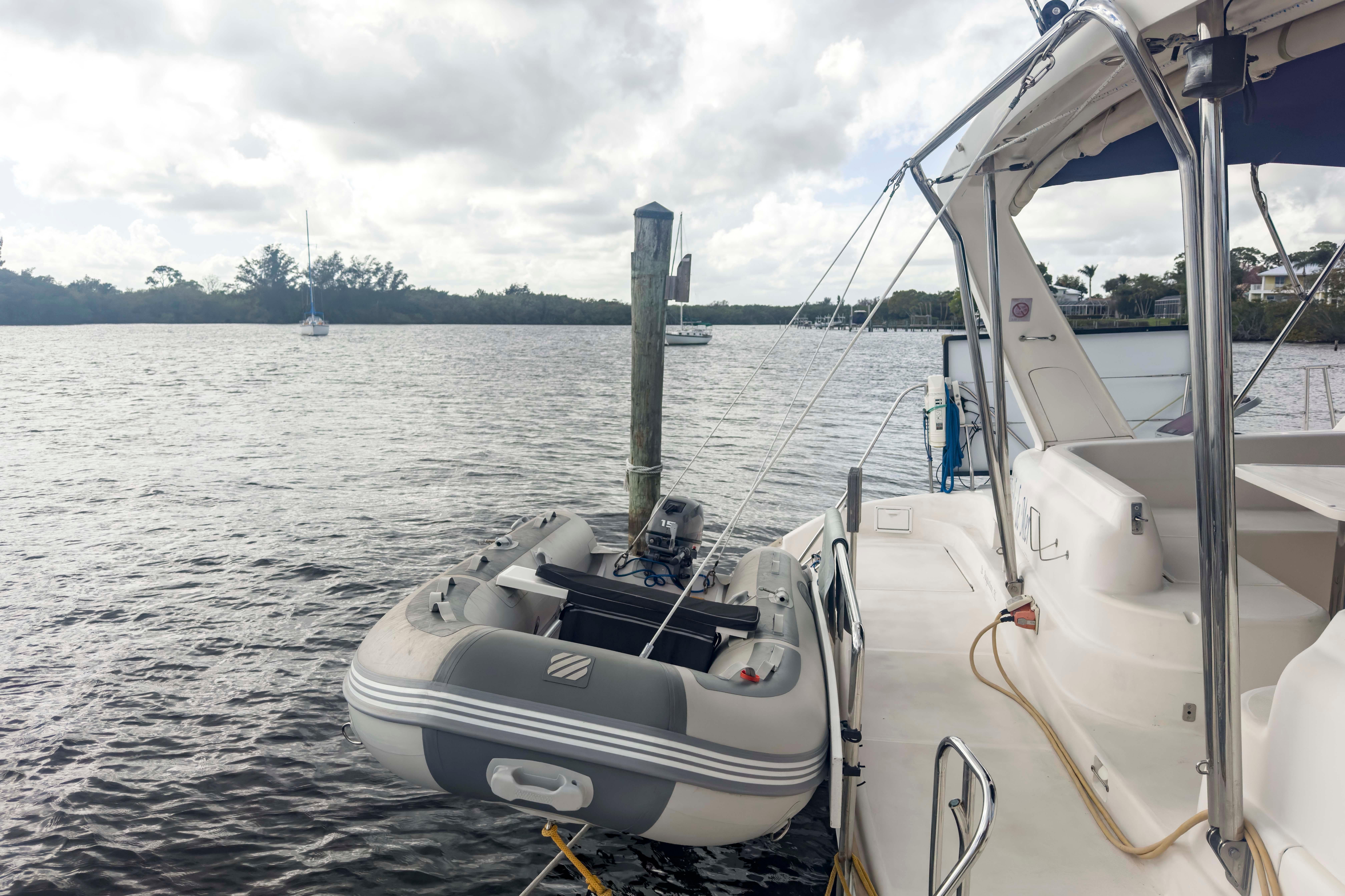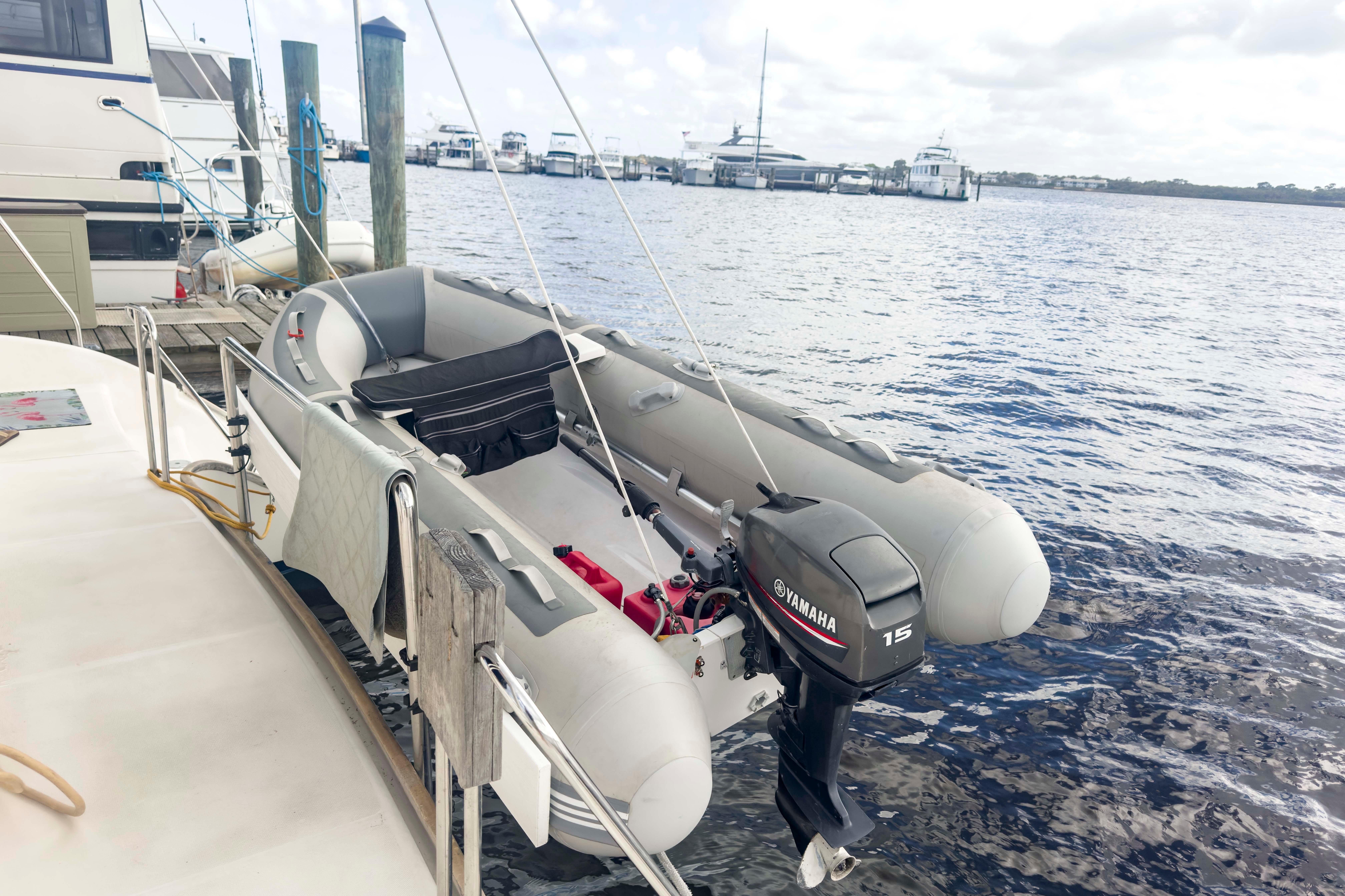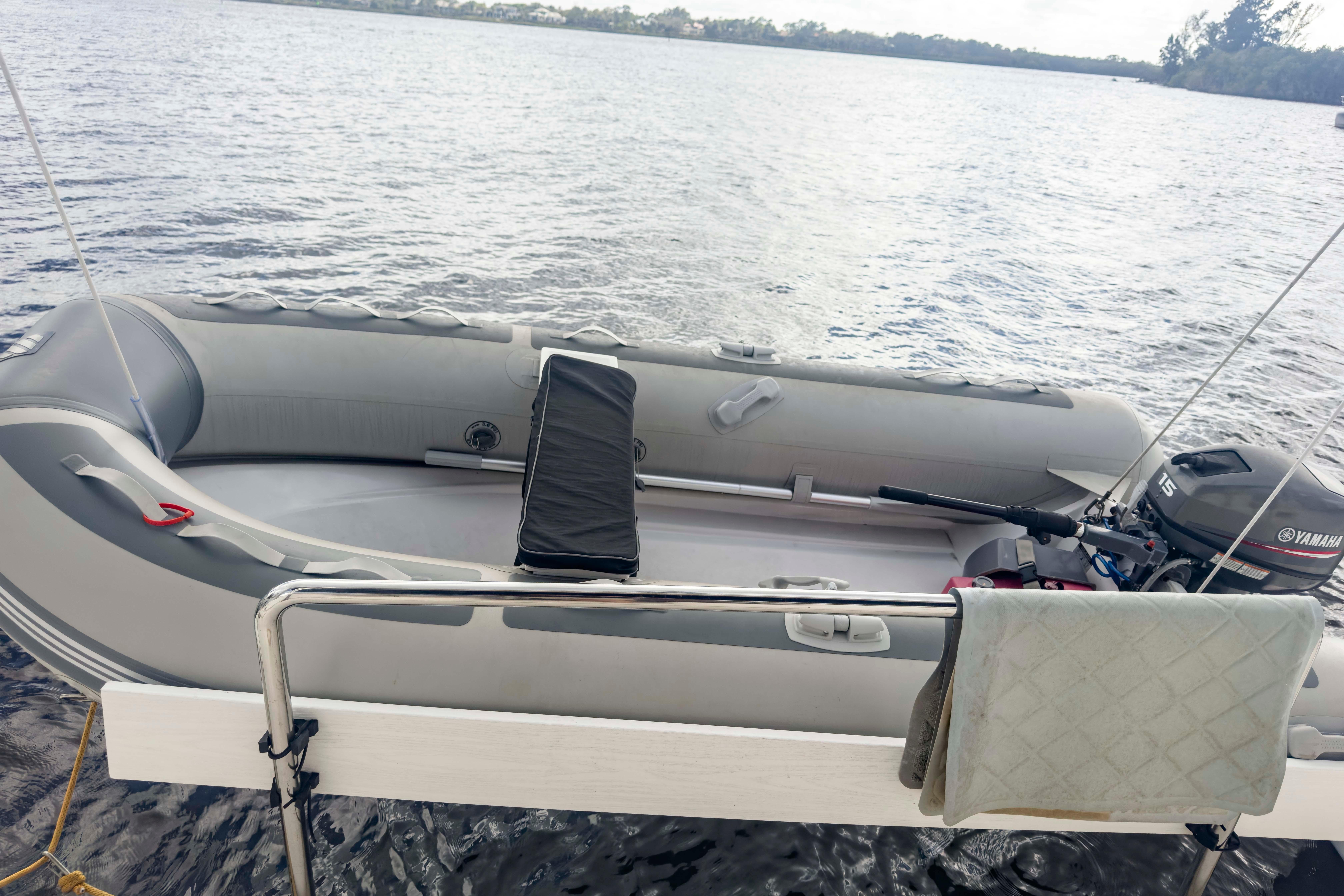 On deck, she is equally well prepared with a brand-new West Marine 105 RIB dinghy (2025) paired with a Yamaha 15hp outboard, making shore access fast and reliable.