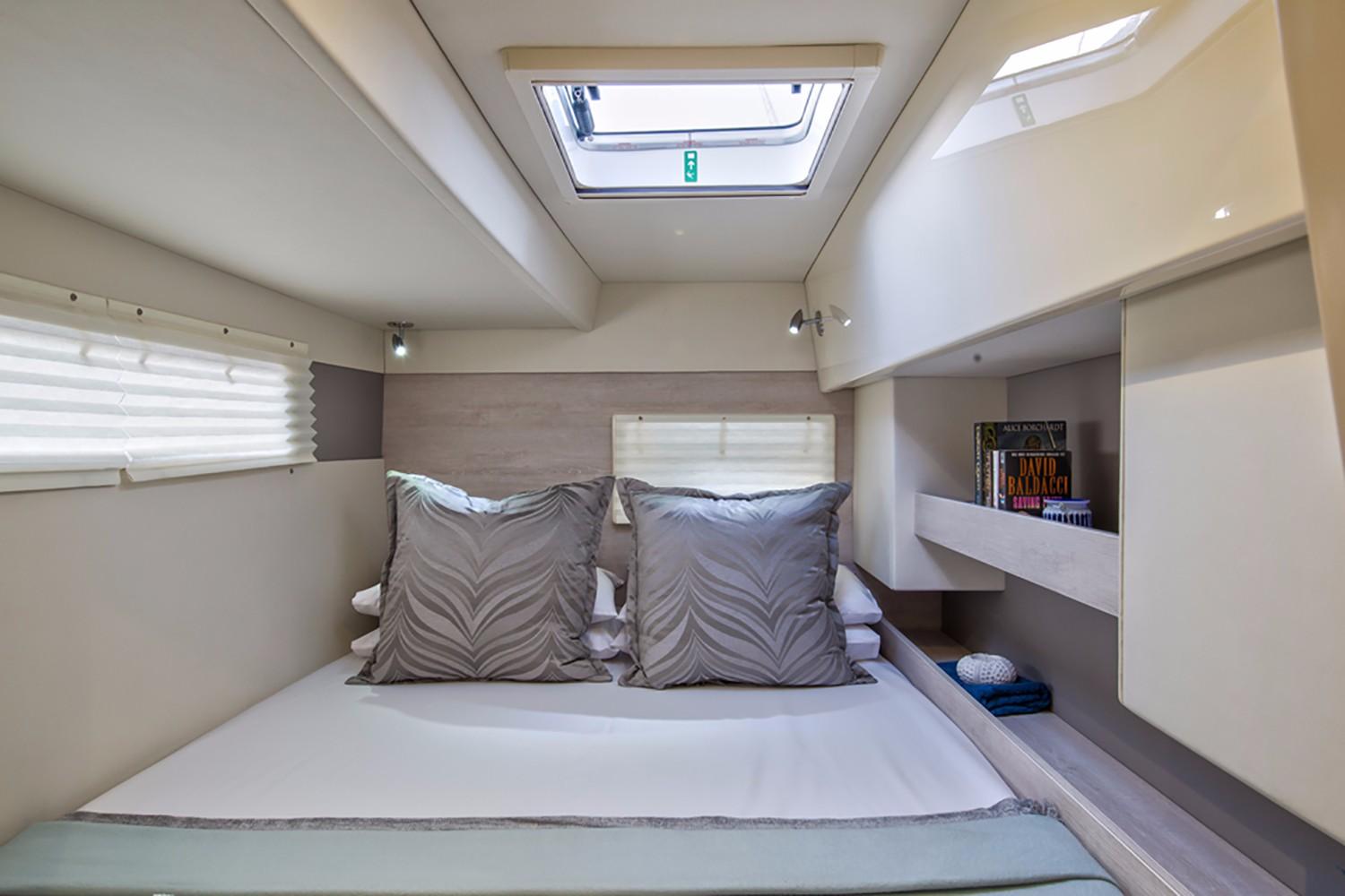 The stepped hull design adds interior volume above the waterline, allowing for roomier accommodations in the hulls without sacrificing the performance of the yacht. With narrower hulls and less wetted surface below the waterline, the Leopard 43 PC reaches an impressive maximum speed of 24 knots and maintains exceptional fuel efficiency consistent with all Leopard power catamaran models.