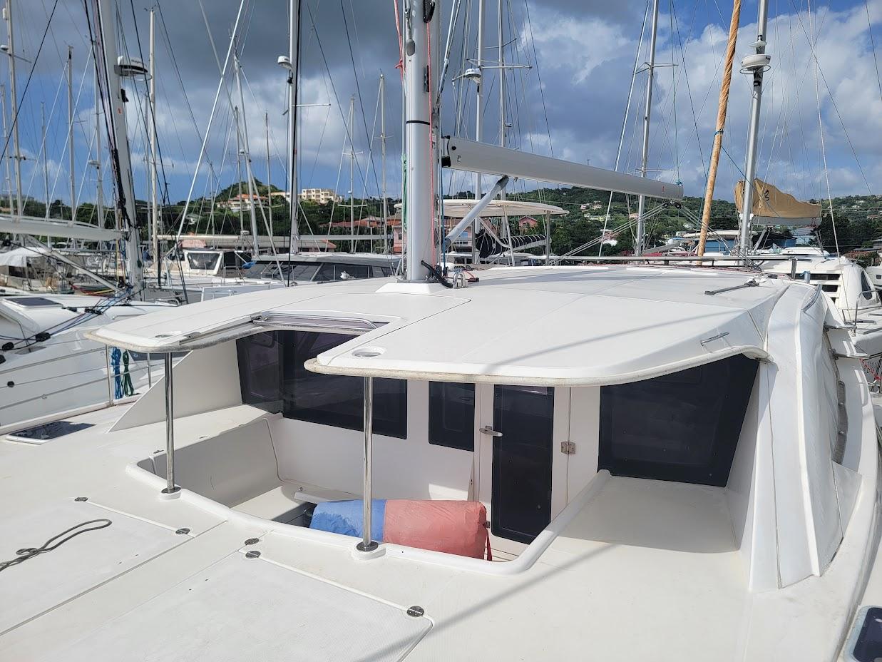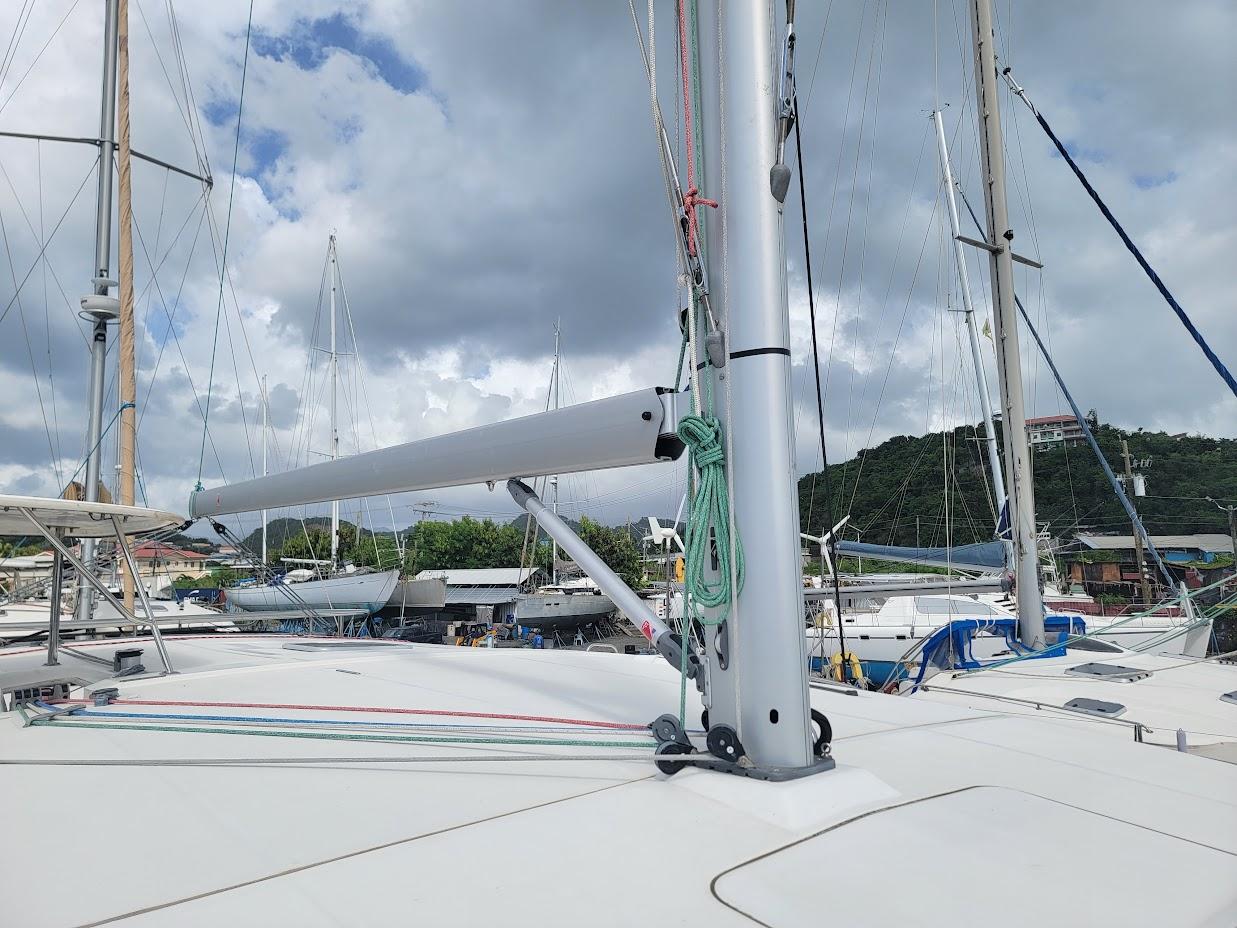 The boat was bought in 2021 and sailed for three years with the Owners until it was dismasted in a squall between Guadeloupe and Dominica. A new mast, boom and standing rigging were installed in Grenada by Turbulence.