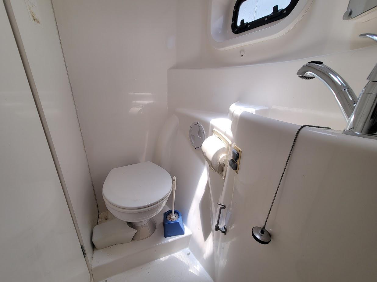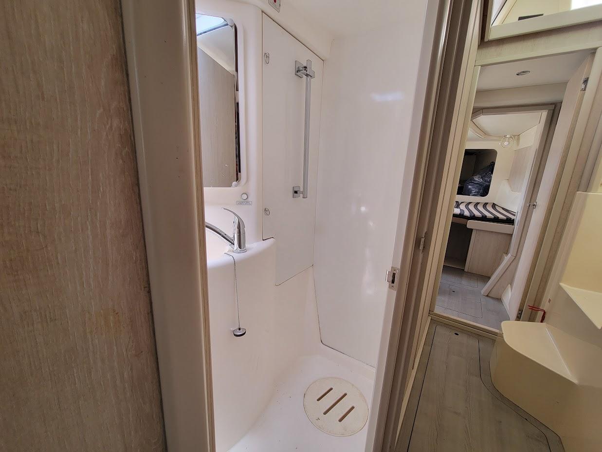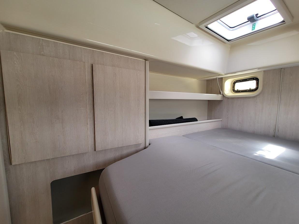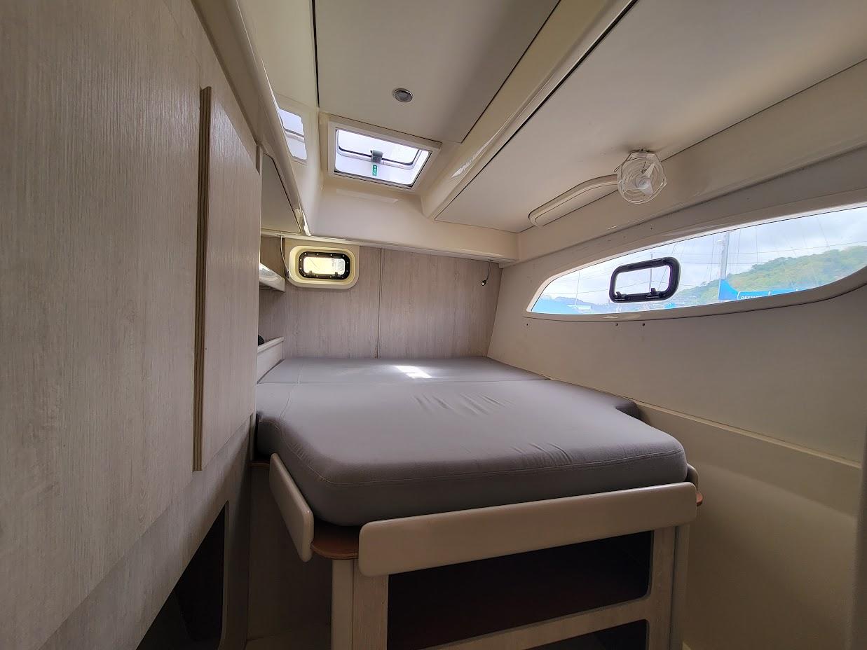 With four cabins and four heads everyone can enjoy their own personal space. The forward cabins have an additional cozy space (twin size) for sleep-overs or storage. One of the cabins can easily be made into a workshop or office space for remote work.