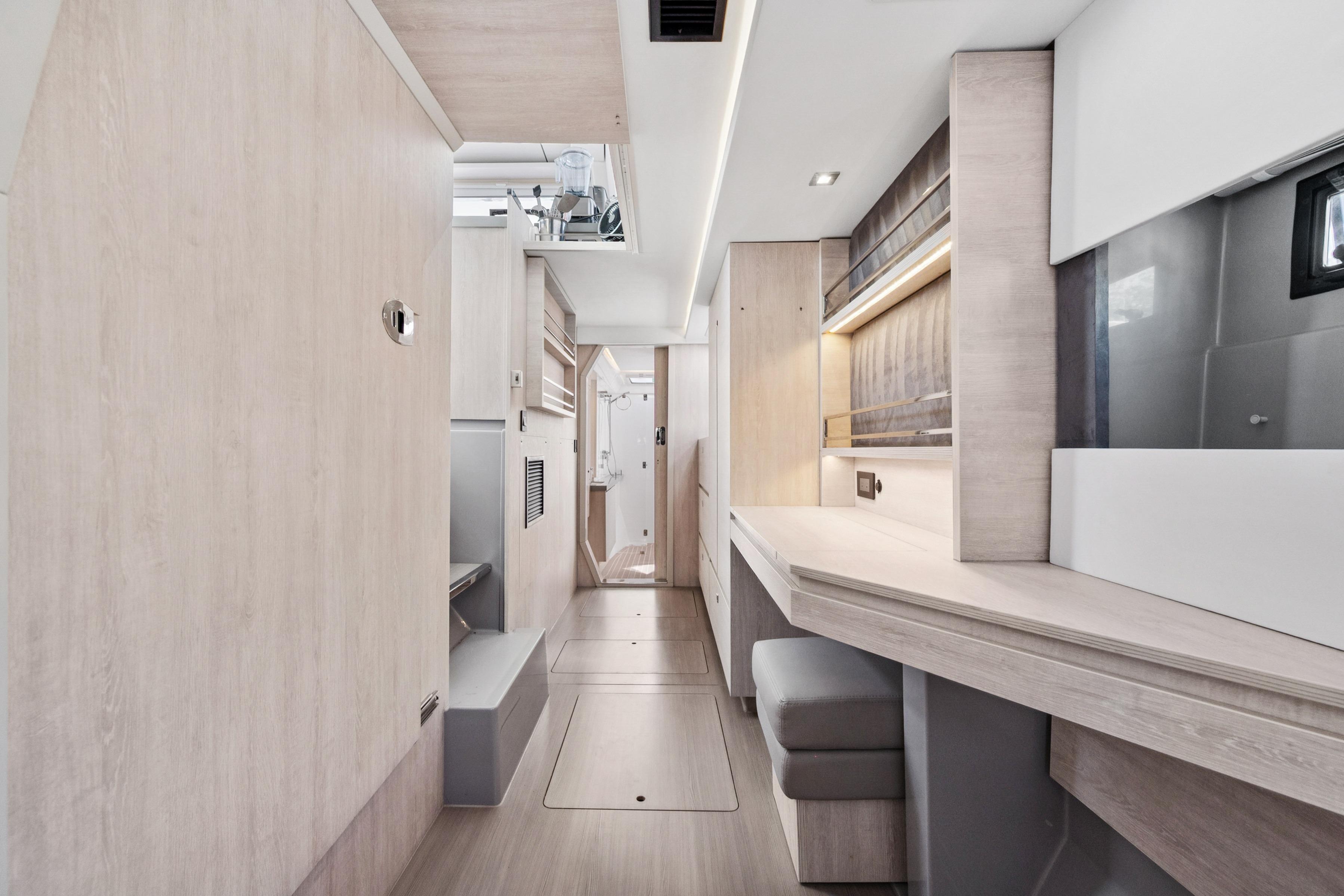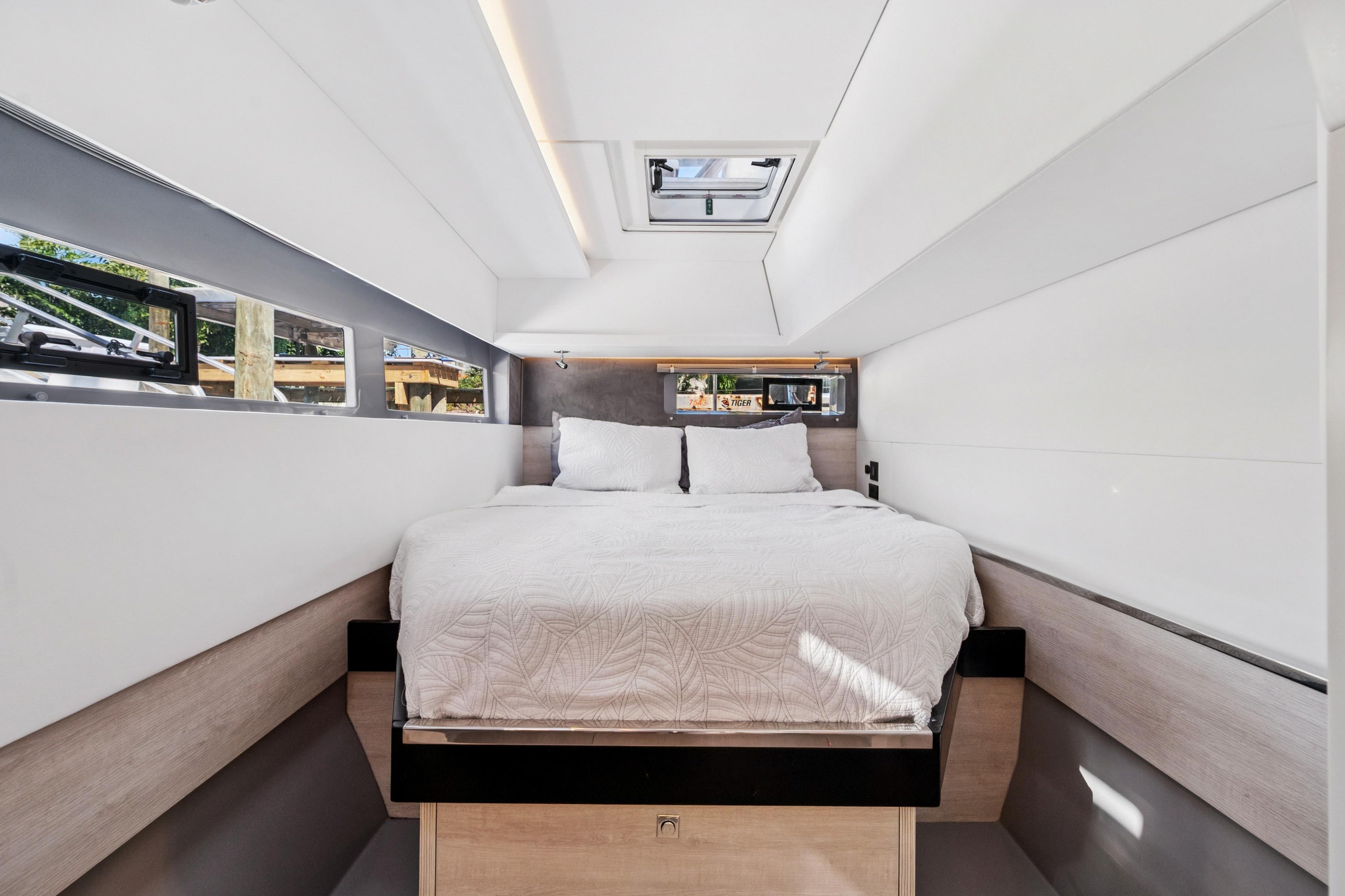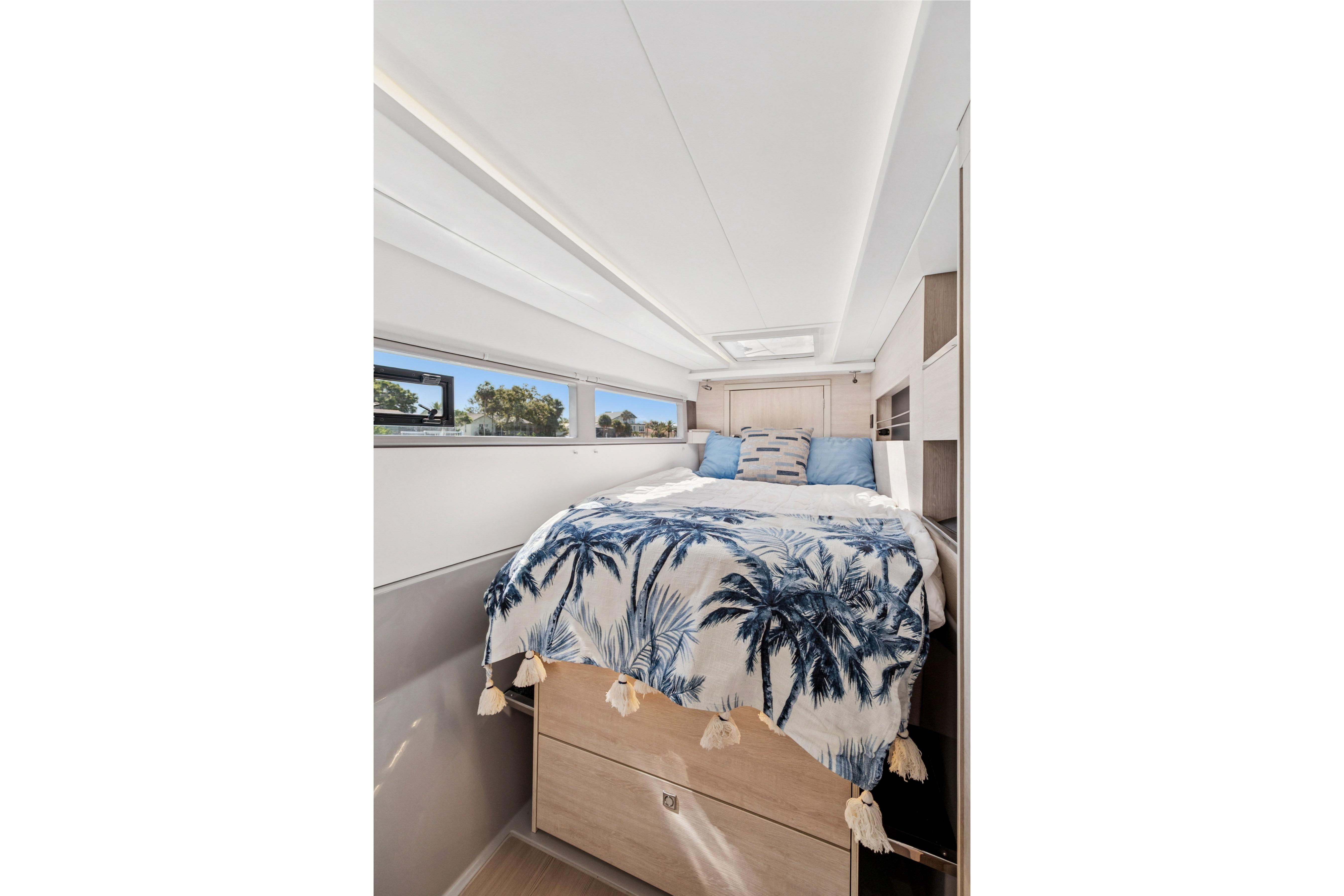 "Always Wet" is an exceptional example of the Leopard 45, a catamaran that offers the perfect balance of high-performance sailing and luxurious living. True to the Leopard DNA, movement throughout the yacht is seamless, thanks to features like the forward saloon door that opens to a spacious forward cockpit and sun lounge which are ideal spaces to relax and enjoy the view. Large windows throughout connect you to the surrounding environment, creating a bright, open atmosphere that cruising sailors love.
