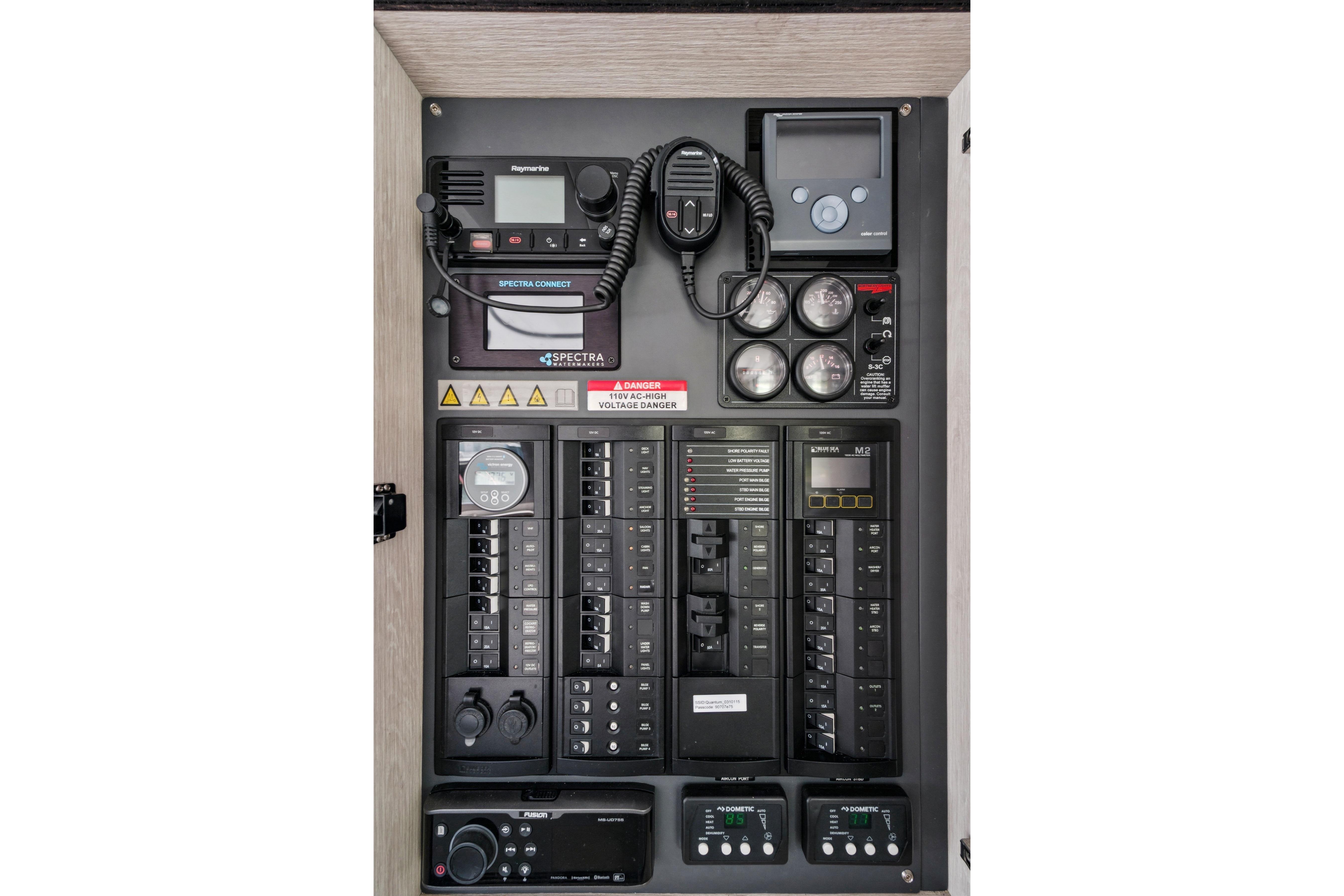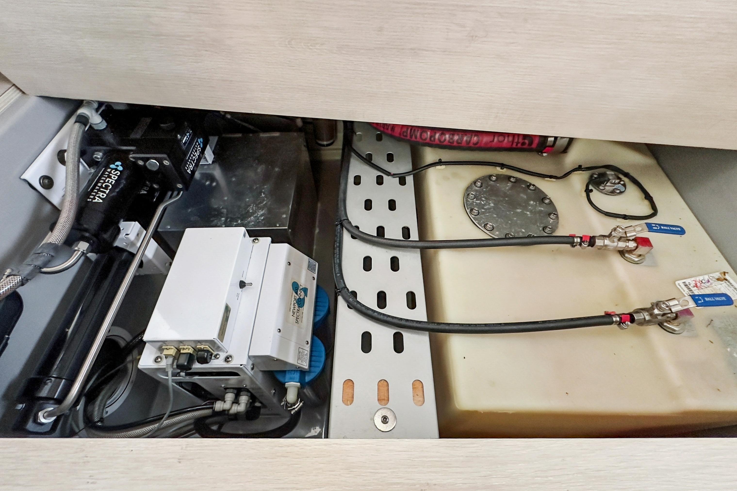 Fire Extinguishers – 5 x portable – 1 x in each cabin, 1 x in forward cockpit, 1 x in aft cockpit