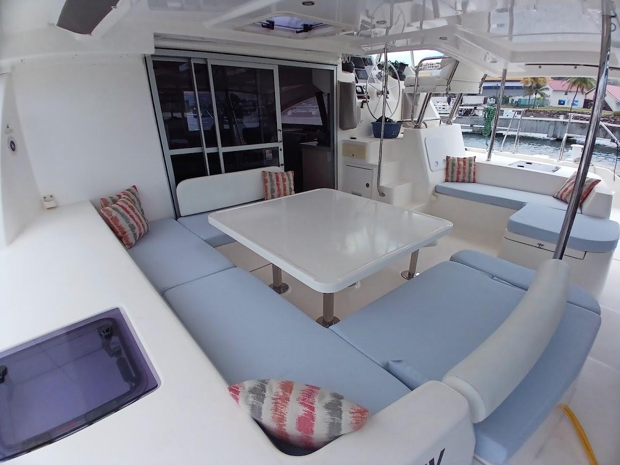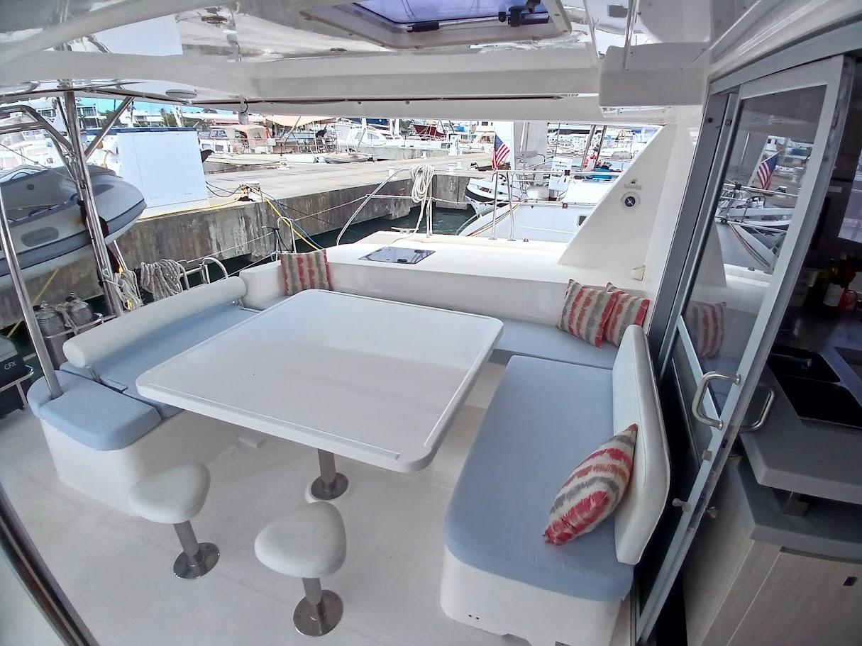 The Leopard 48 features a large forward cockpit with direct access from the saloon and a stairway to the forward platform. Other exterior bonuses include a large and open aft cockpit with cockpit table. A raised helm station, providing excellent panoramic visibility, allows for excellent blue water maneuverability.
