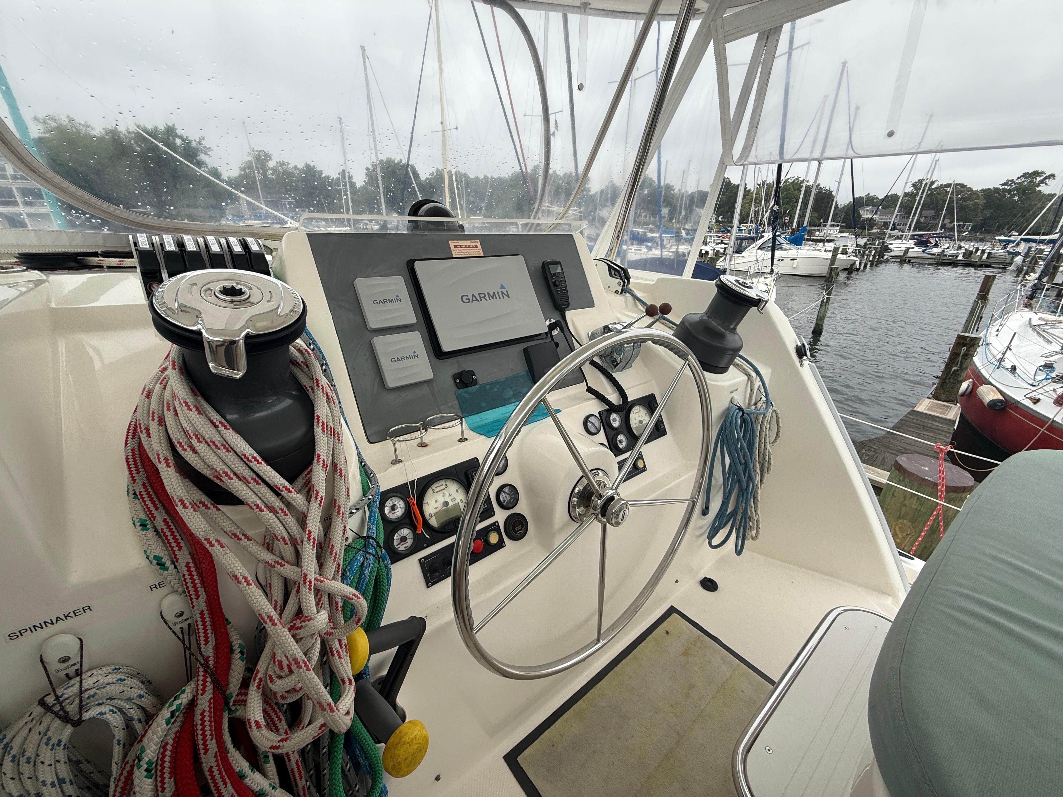 All new Garmin electronics: Garmin 7612x 12 chart plotter, g-Wind, Autopilot, Radar GMR 18XHD, VHF radio, forward facing sonar Panoptix v6.50.