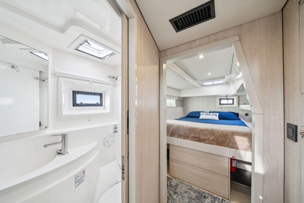 The interior of the Leopard 48 provides both beauty and practicality. The galley comes equipped with top-of-the-line appliances, ample prepping space, and so much more. This catamaran also offers a plethora of interior space. The plush interior makes sailing not only fun, but also incredibly comfortable. Her modern lines and open floor plan set a new standard for the modern cruising catamaran.