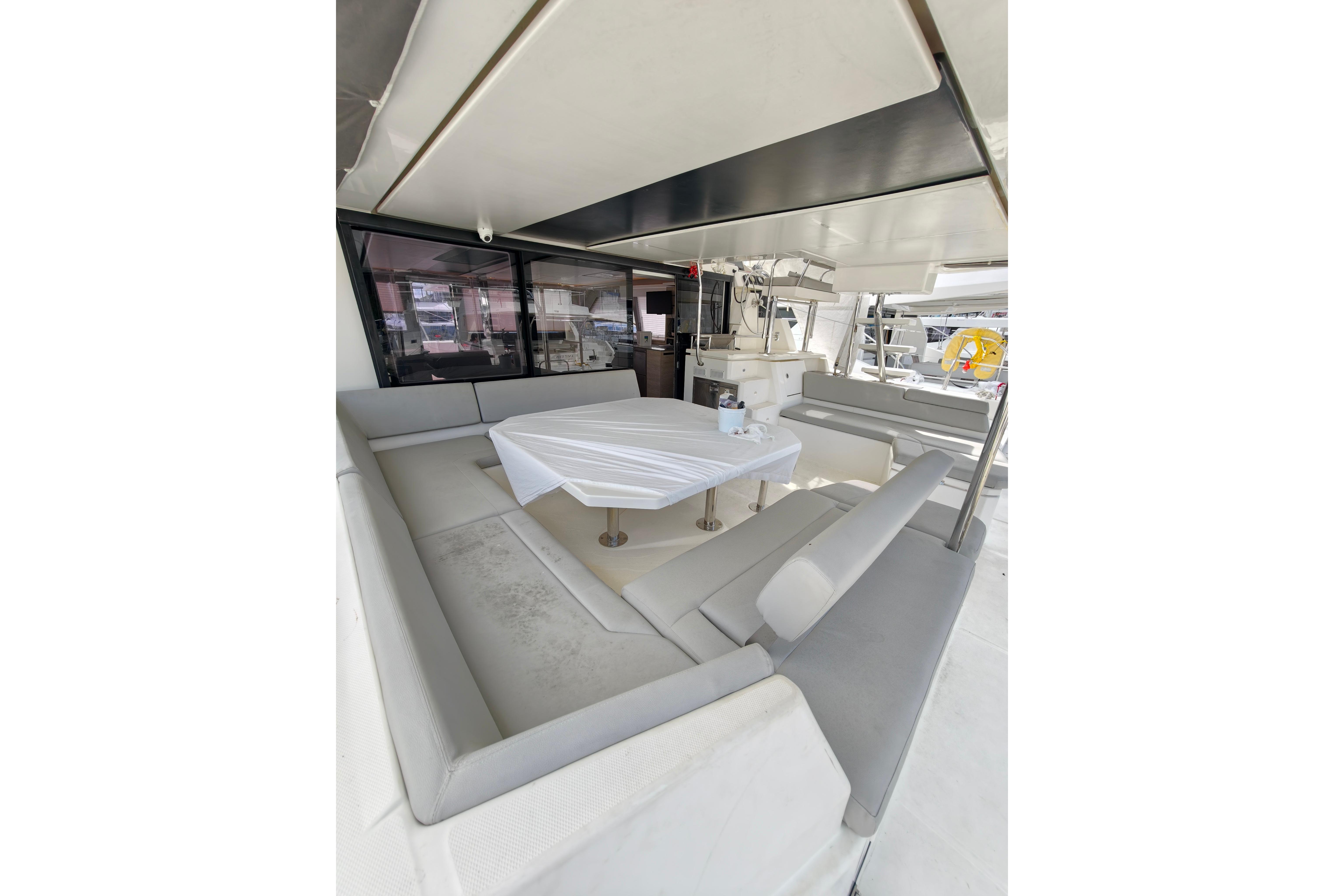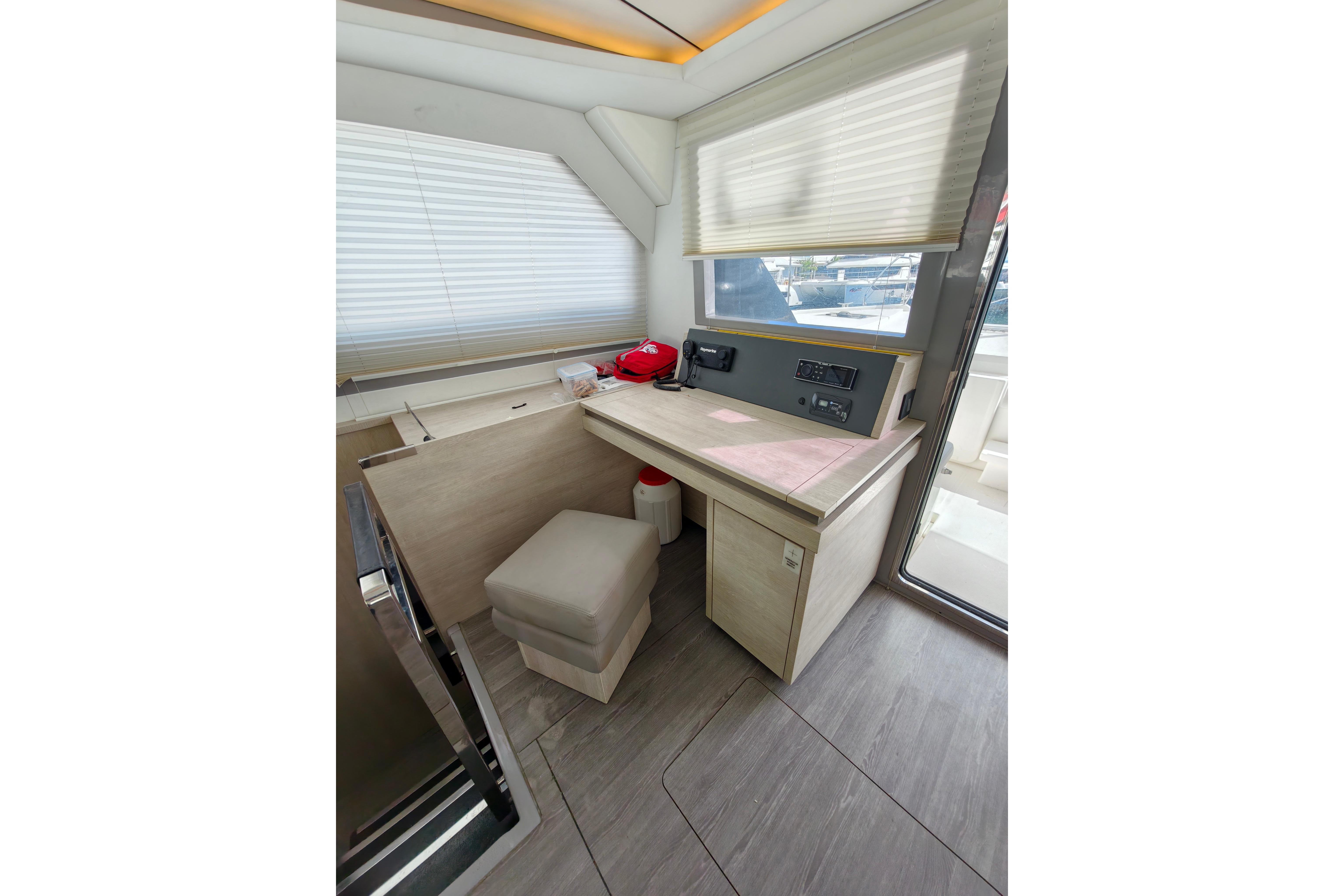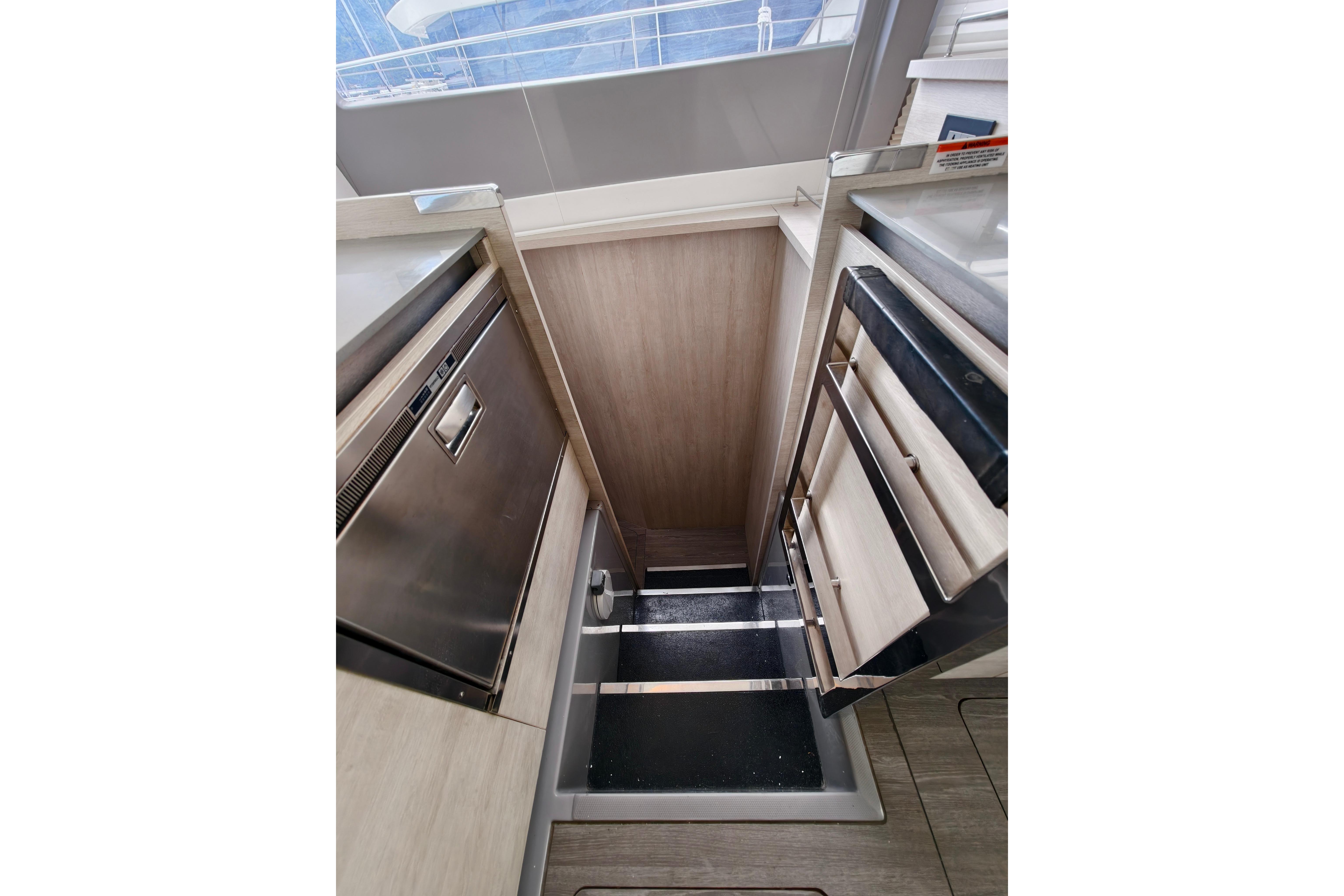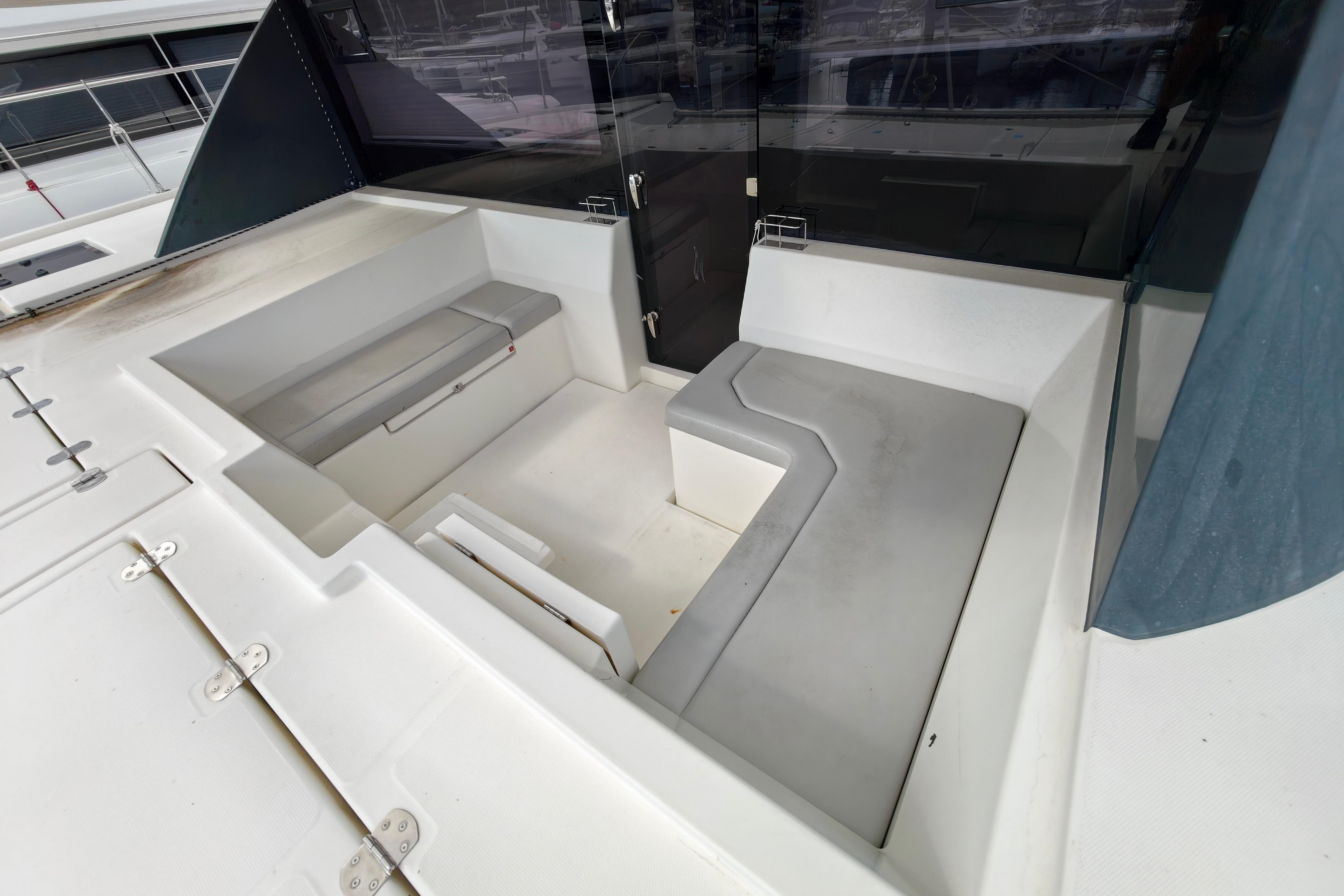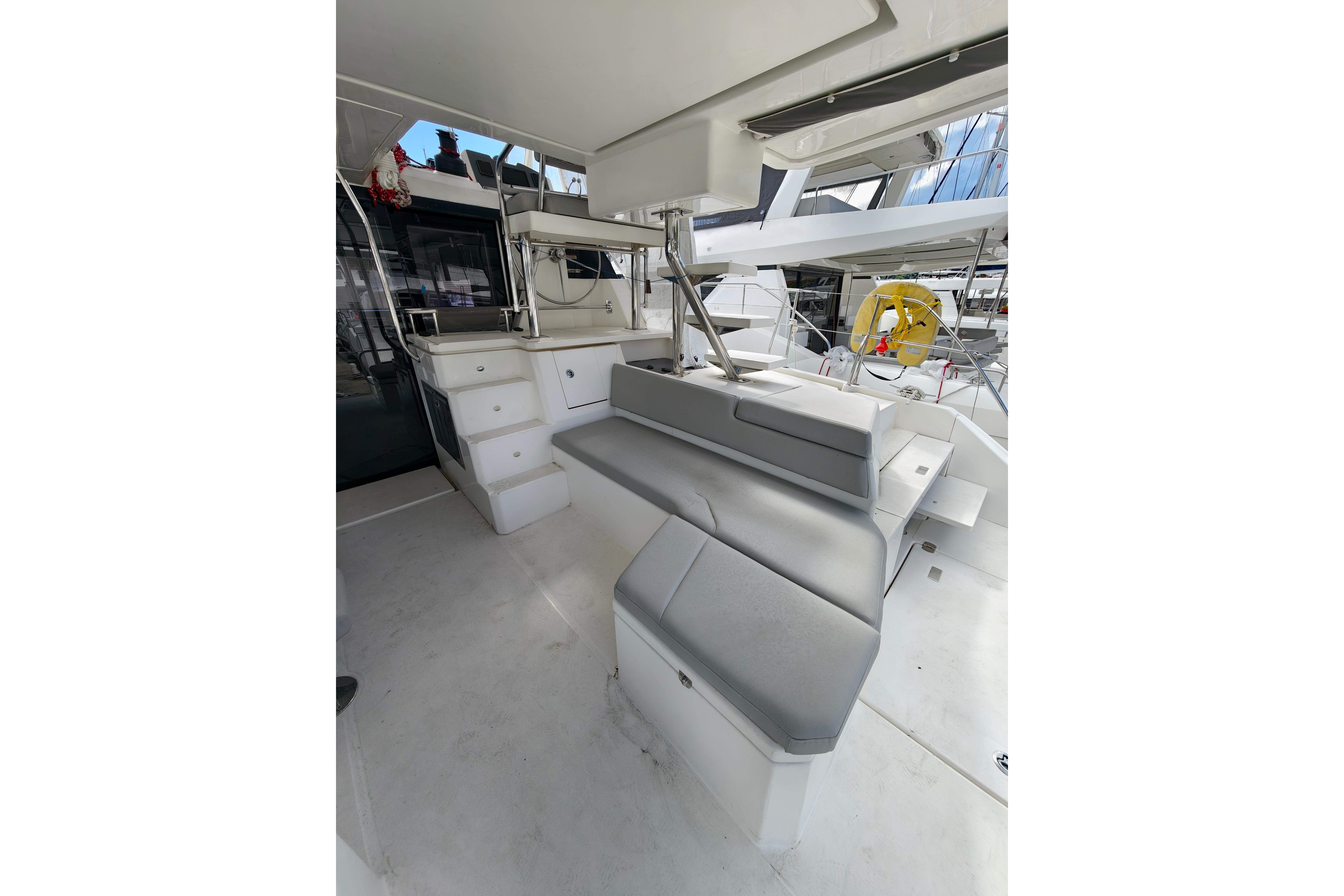 The Leopard 50 has the ideal layout for anyone looking for more outdoor living space as she comes equipped with a flybridge that includes a lounge area, table, sunbed and optional exterior speakers and shade awning. Access is provided by floating stairs leading up from the aft cockpit. An important distinction compared to similar flybridge configurations on sailboats is that while under sail, passengers can move about the flybridge with ample headroom and never worry about interference from the boom. The flybridge is also situated to maintain contact with the helm station, an important feature found on all Leopard Catamarans.