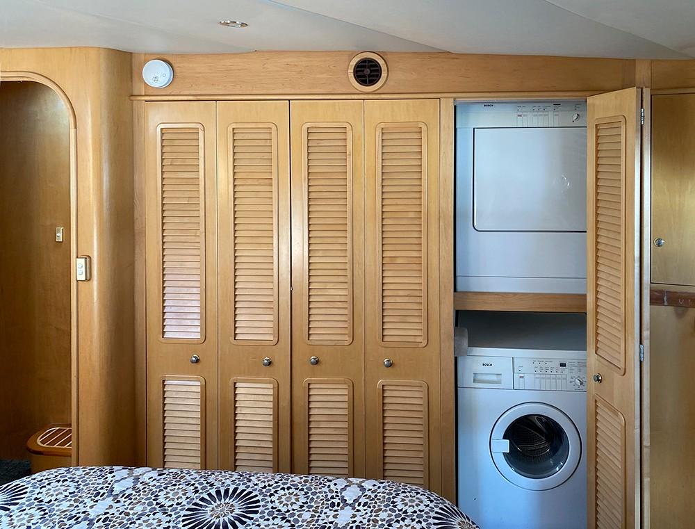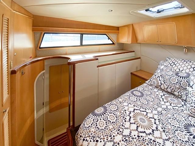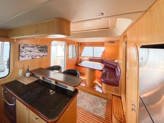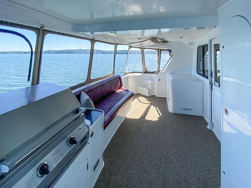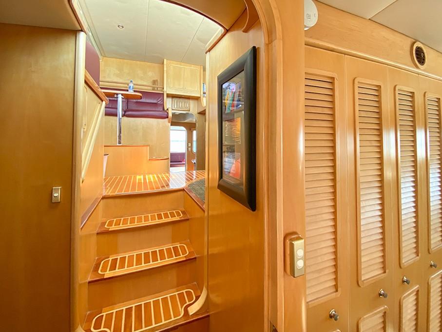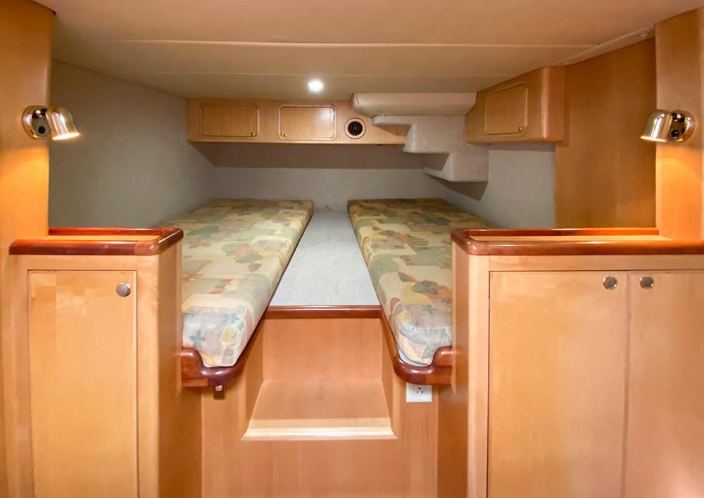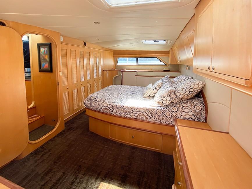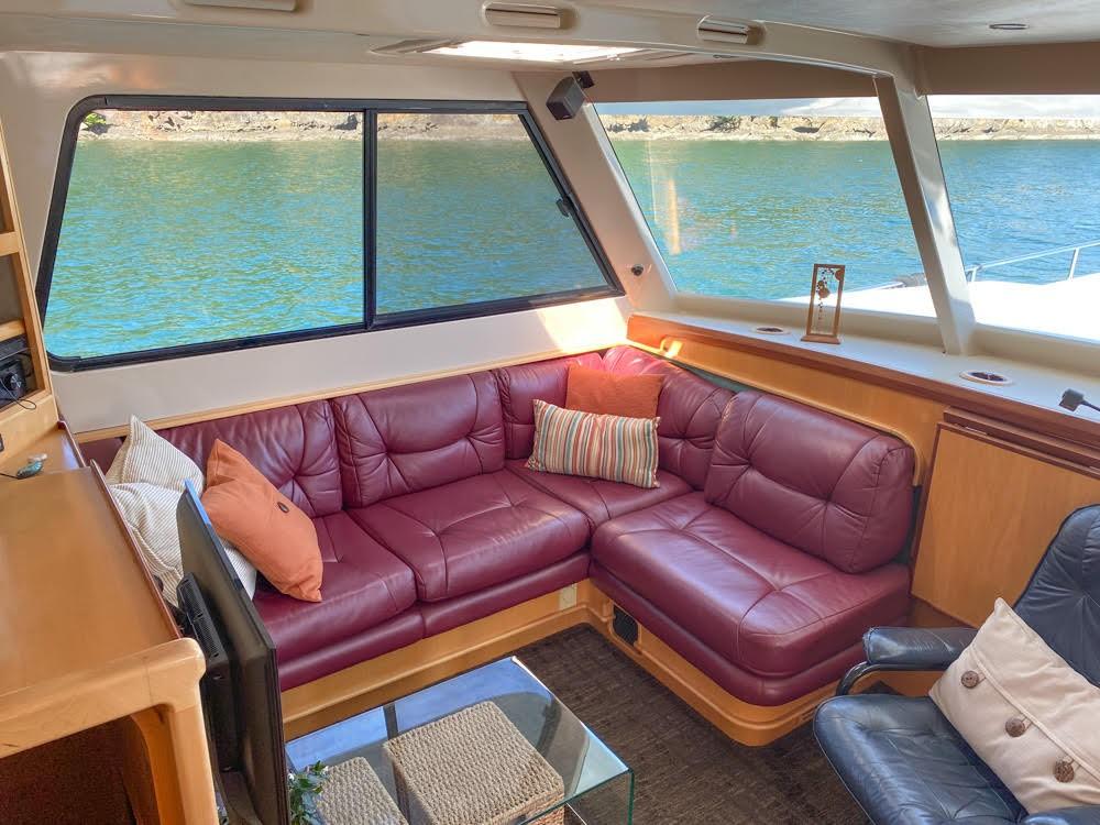 Her dual helm stations (pilothouse, flybridge) and twin Cummins 6BT 270 HP diesels with Hundestat variable-pitch propellers deliver outstanding maneuverability and redundancy.