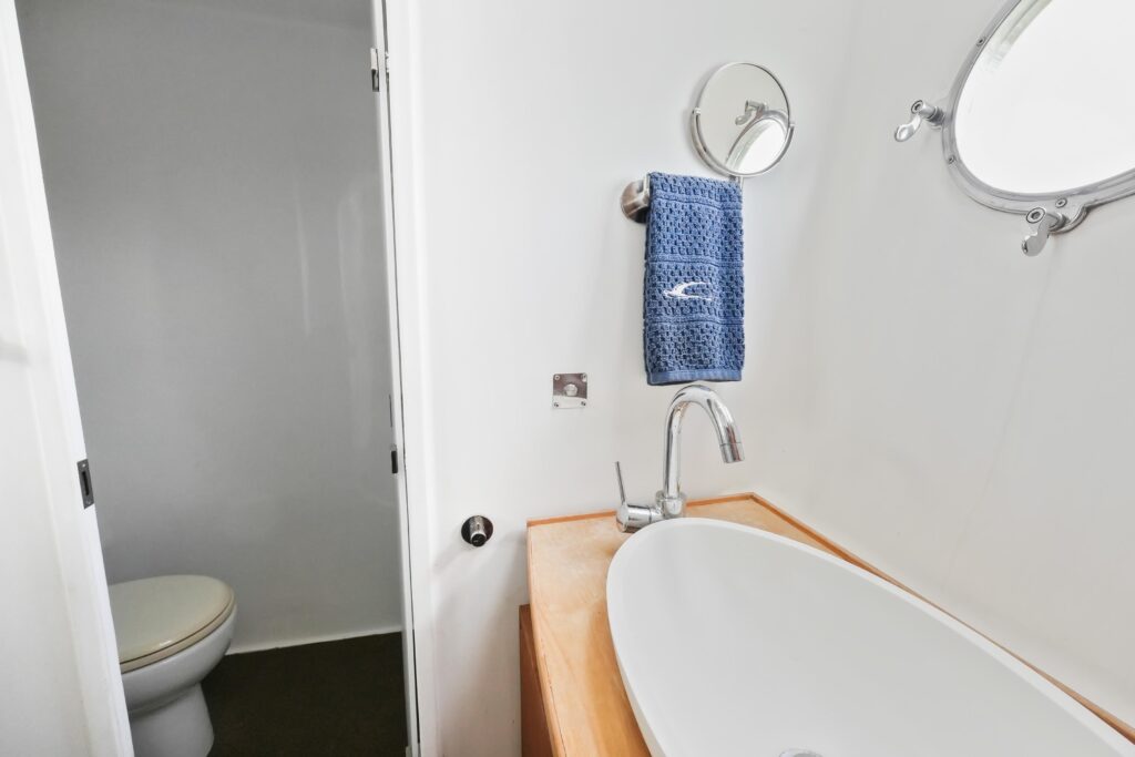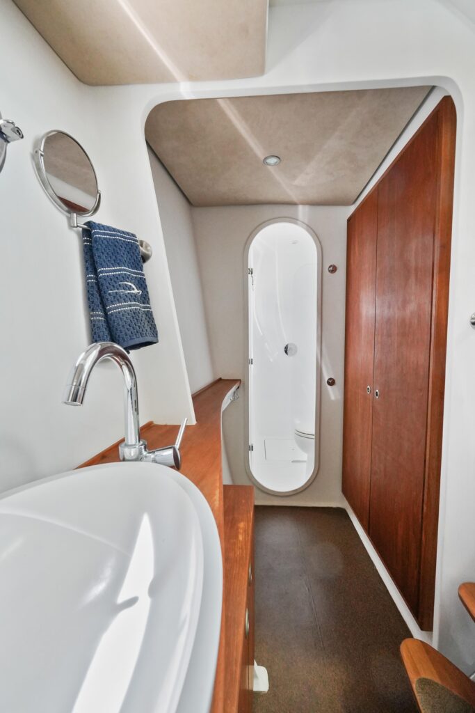 Black water is pumped into a VETUS tank, which gravity drains out the boat. Each tank is fitted with a sea water spray nozel to clean and flush tanks. Each tank is fitted with a sealand breather to reduce smells. Each black water tank system is fitted with a pump out option. Toilet system is plumbed for both sea and fresh water. Whilst offshore and passage, saltwater can be used to minimize the use of fresh water.