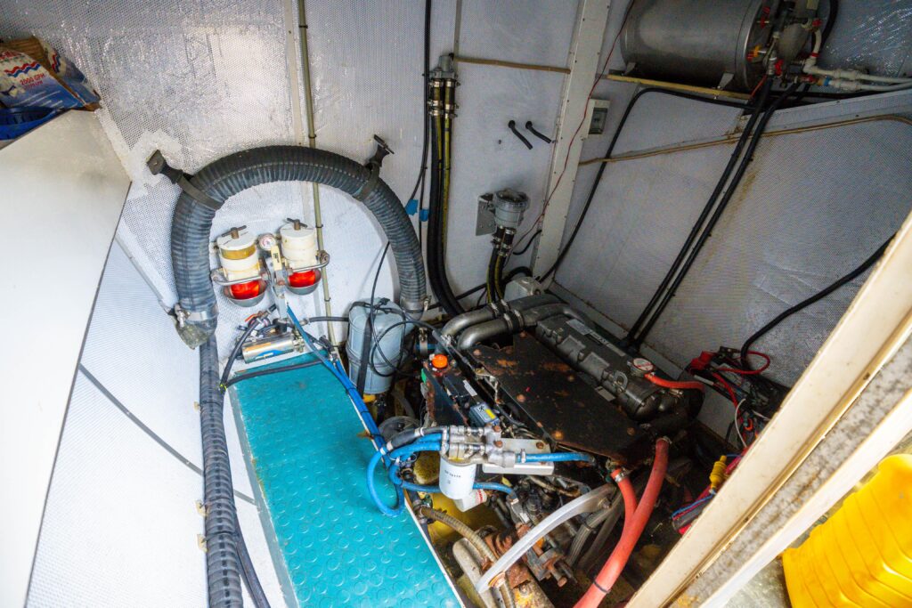 Fuel is stored in bladder tanks manufactured to aviation standards located under the aft cabins. Fuel flows from tanks to the engines via a RACOR dual filter system which in turn is plumbed to an magnetic algae X device. It is possible to transfer fuel between both tanks with the REVERSO pump.