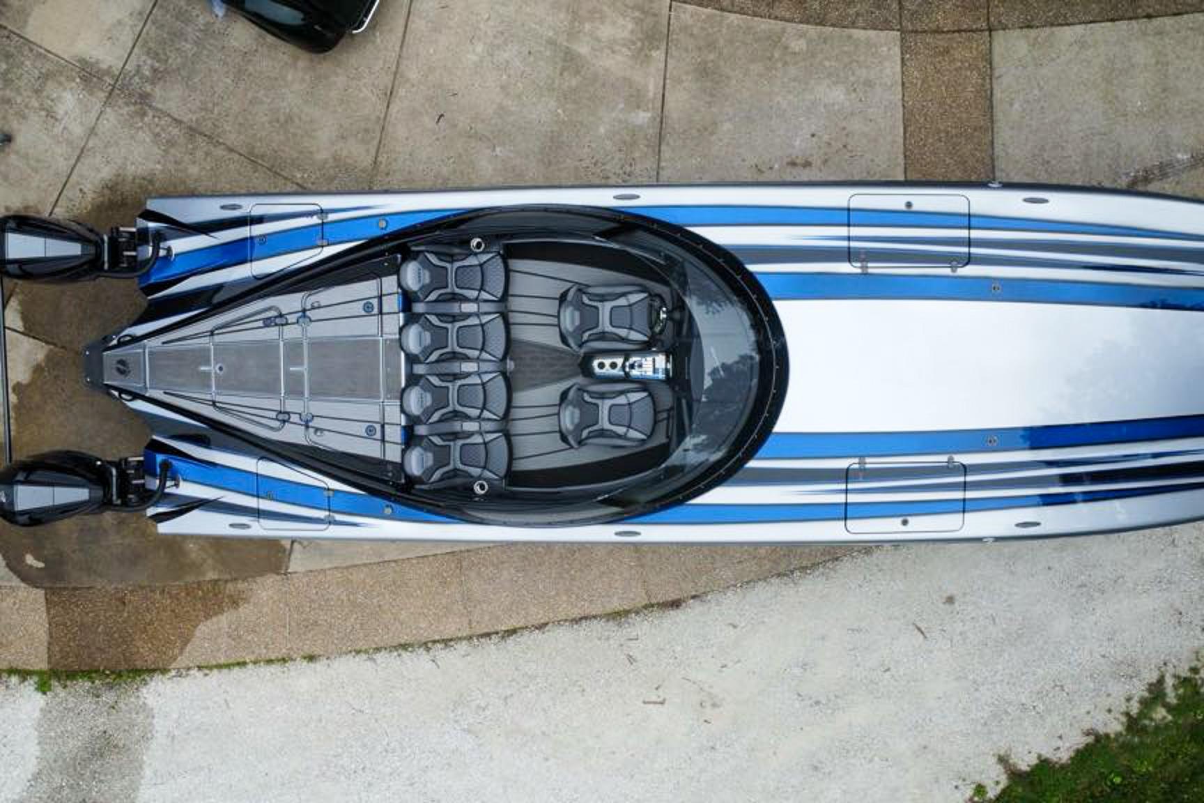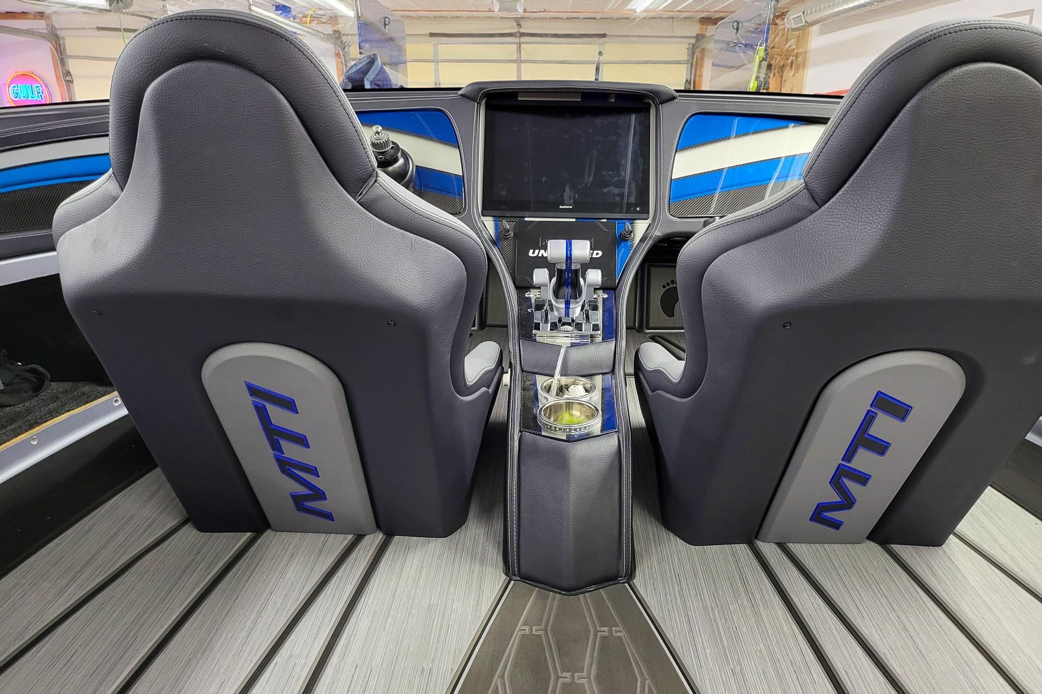 2019 MTI 340X featuring New interior, Seadek and Speakers done by Mayden Design in 2025. Mercury 450R's with approx 150 hours w/ Mercury Gold Warranty until 11/10/2027! Painted MYCO Aluminum Trailer included