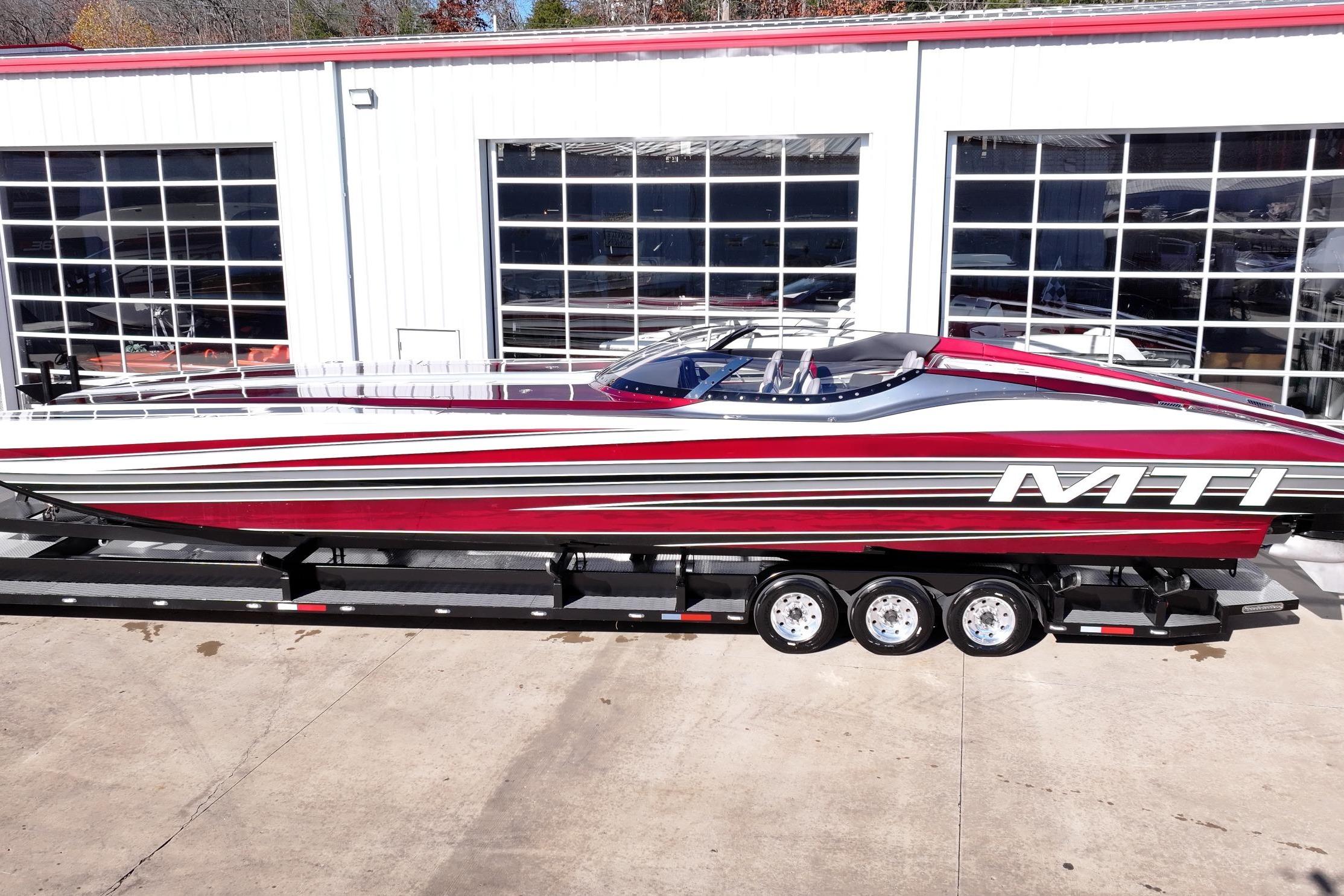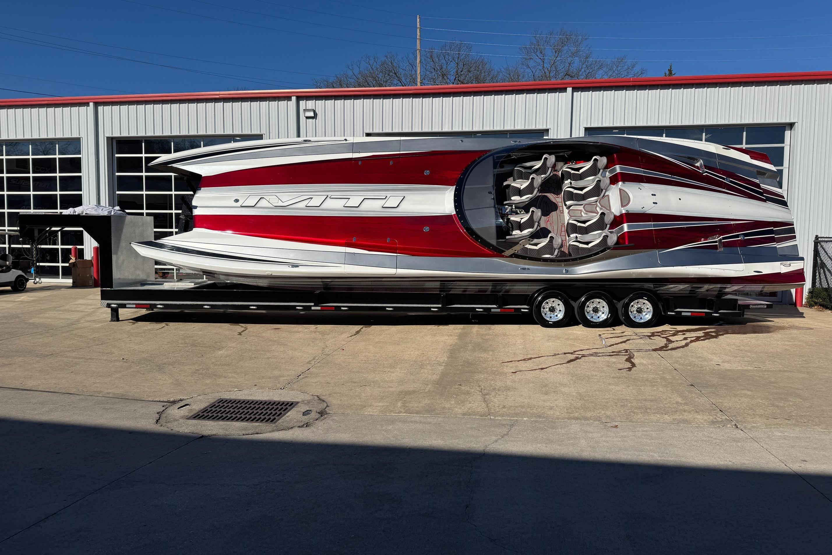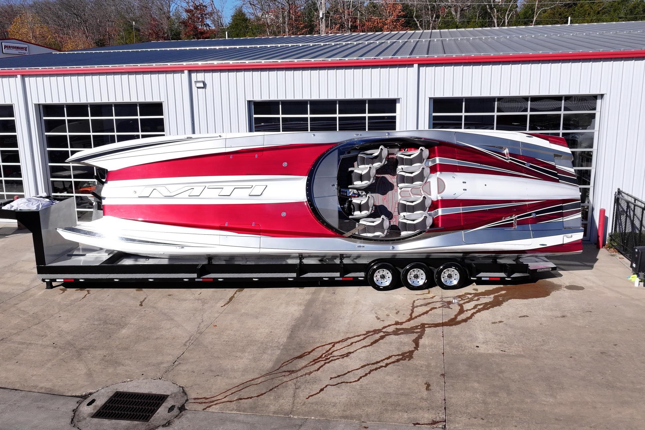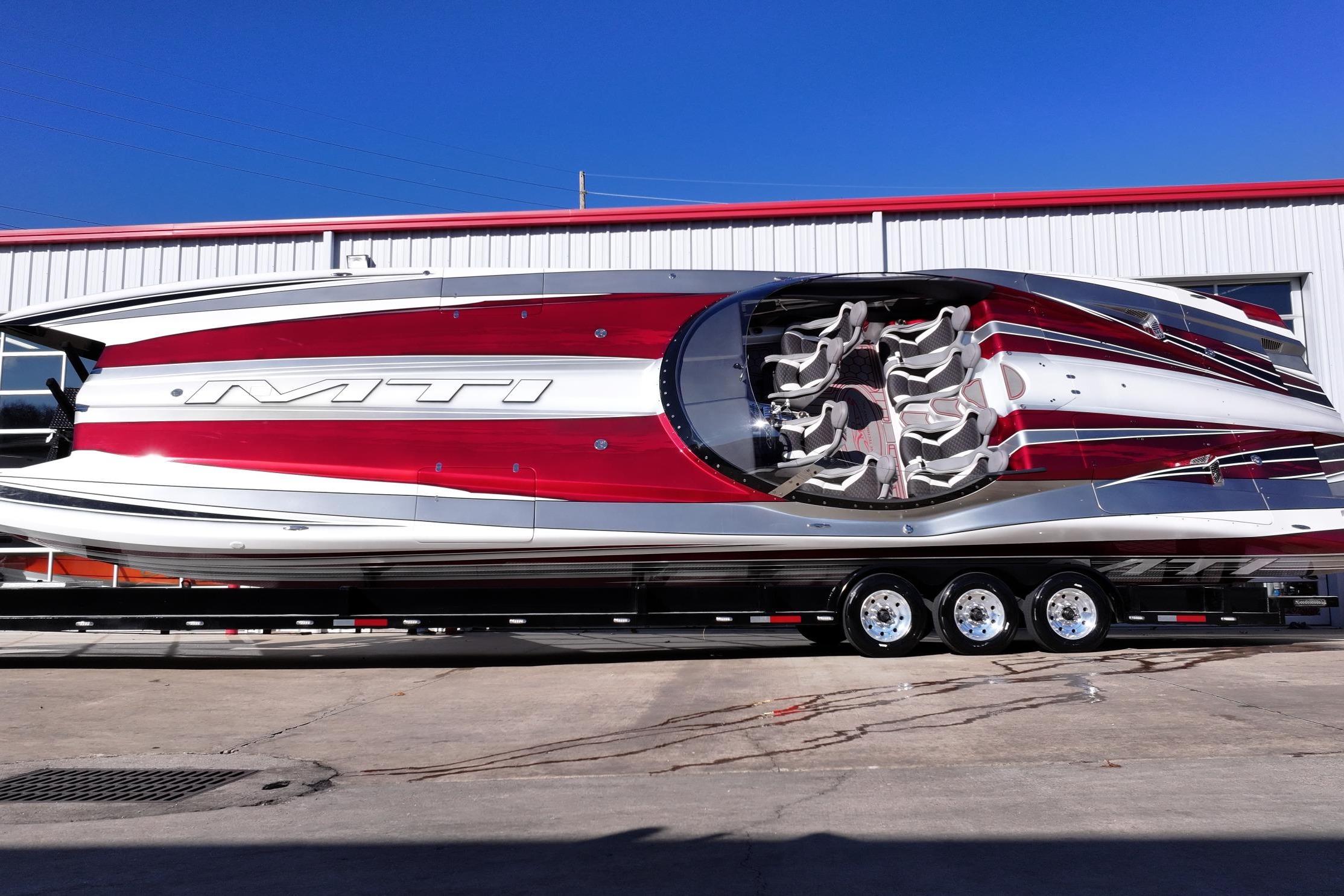 2016 MTI 48 R/P powered by Mercury Racing QC4V 1350s with 85 hours, M8 drives (Completely rebuild less than 5 Hours ago), 8 Person Cockpit Configuration, Mercury 5 Blade propellers, Underwater lights, Seadek flooring, Carbon fiber dash panels, 17" Garmin Centered in the Dash, 2 - 15" Garmin's for Driver and Passenger, vessel view 703, Fusion head unit with Stage 3 stereo system, Forward Electric Deck Hatches w/ Speaker Pods, Cockpit A/C with Lithium Ion Battery System and Dash Blower Vents, Accent Lights, Additional house battery, power adjustable cockpit seats, cockpit cover and Full Travel Cover, Flat trailer included and Tilt Trailer Available for additional cost.