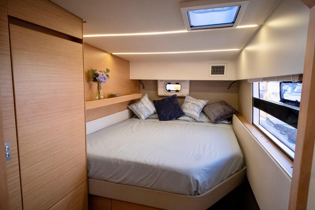 Custom 10″ memory foam mattress in owners cabin (new late 2023)