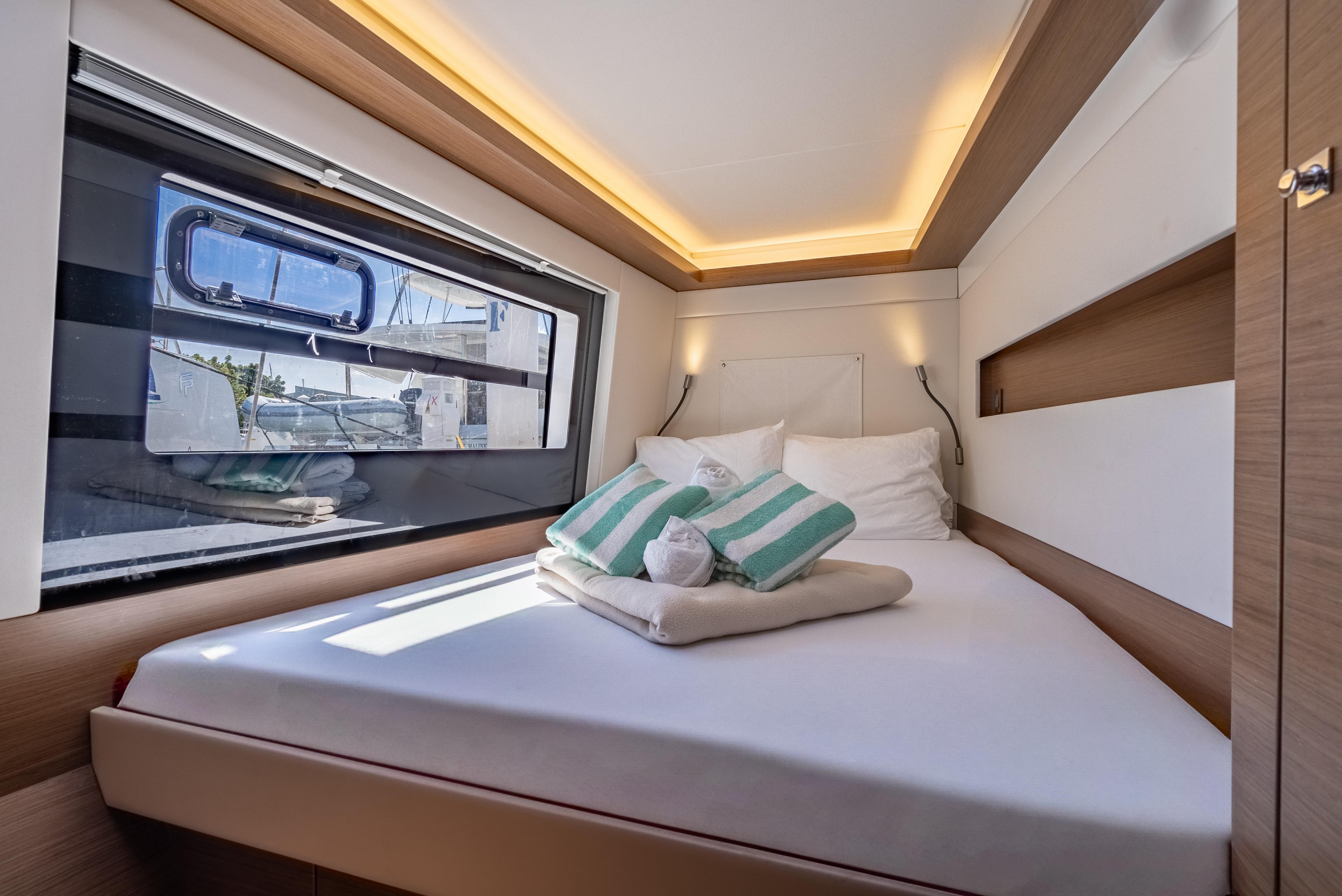 The post 2020 Mark II update introduced a stiffer hull design, larger hull windows, a flybridge refrigerator, and a reimagined salon layout—dramatically improving natural light, sightlines, and overall livability. These thoughtful refinements elevate an already successful platform into a truly versatile cruising and charter catamaran.