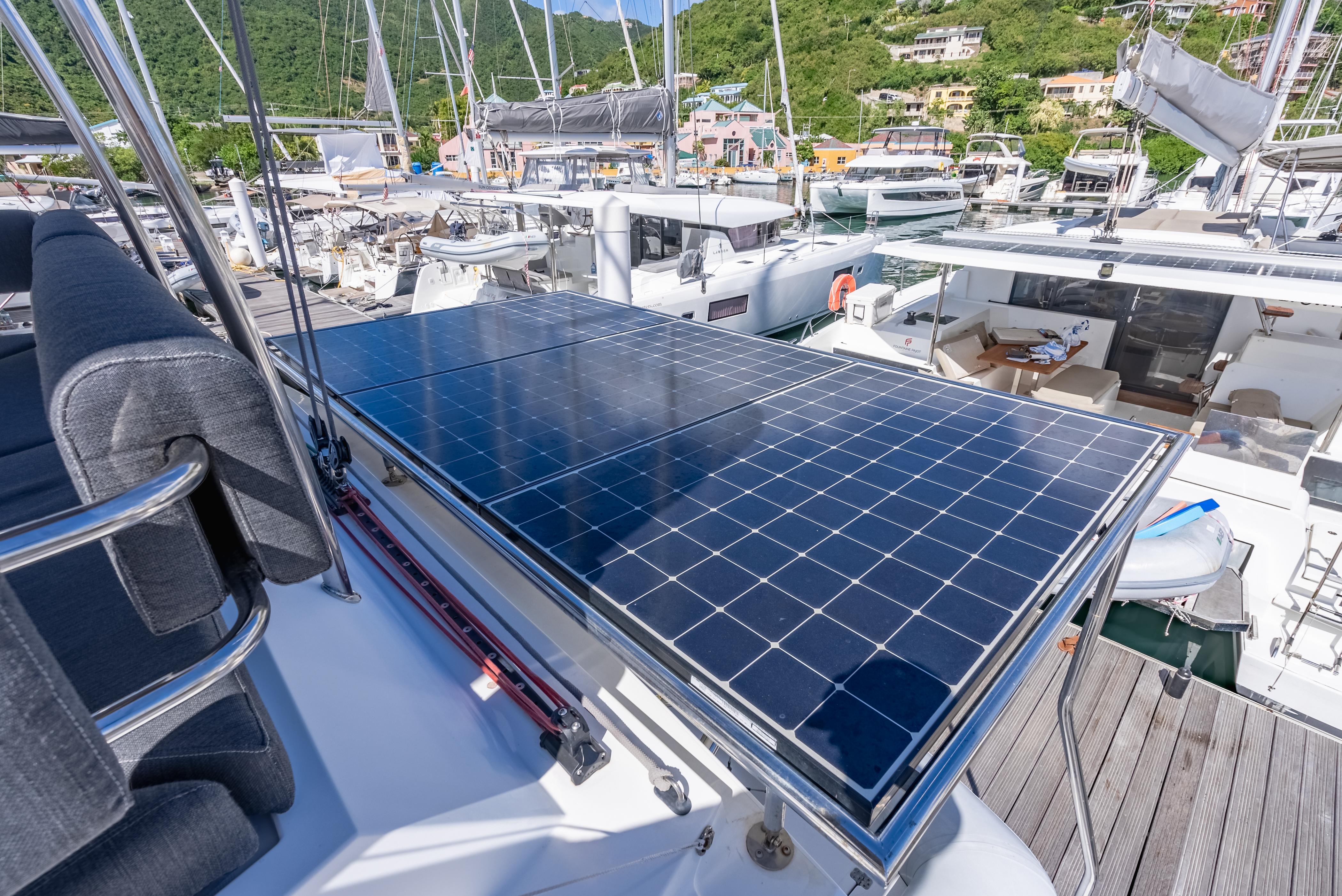 Custom stainless steel solar arch with 3 × 400W solar panels (1,200W total)
