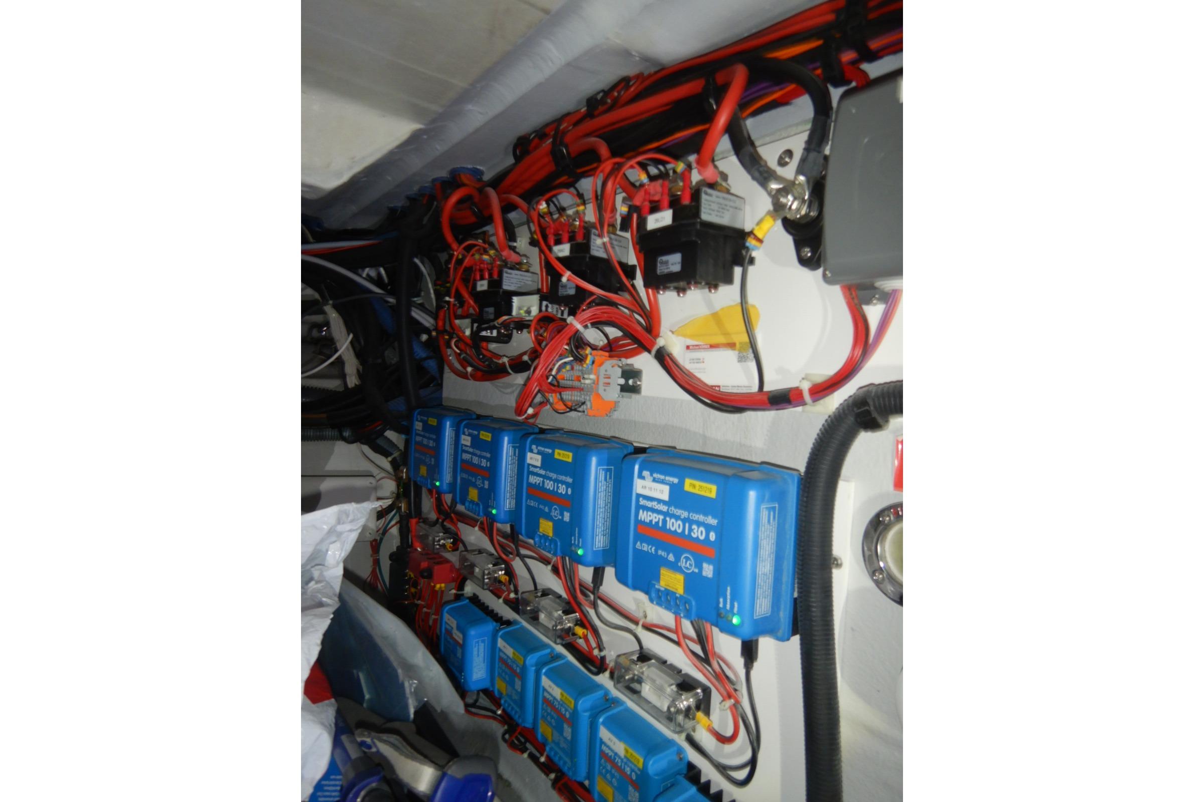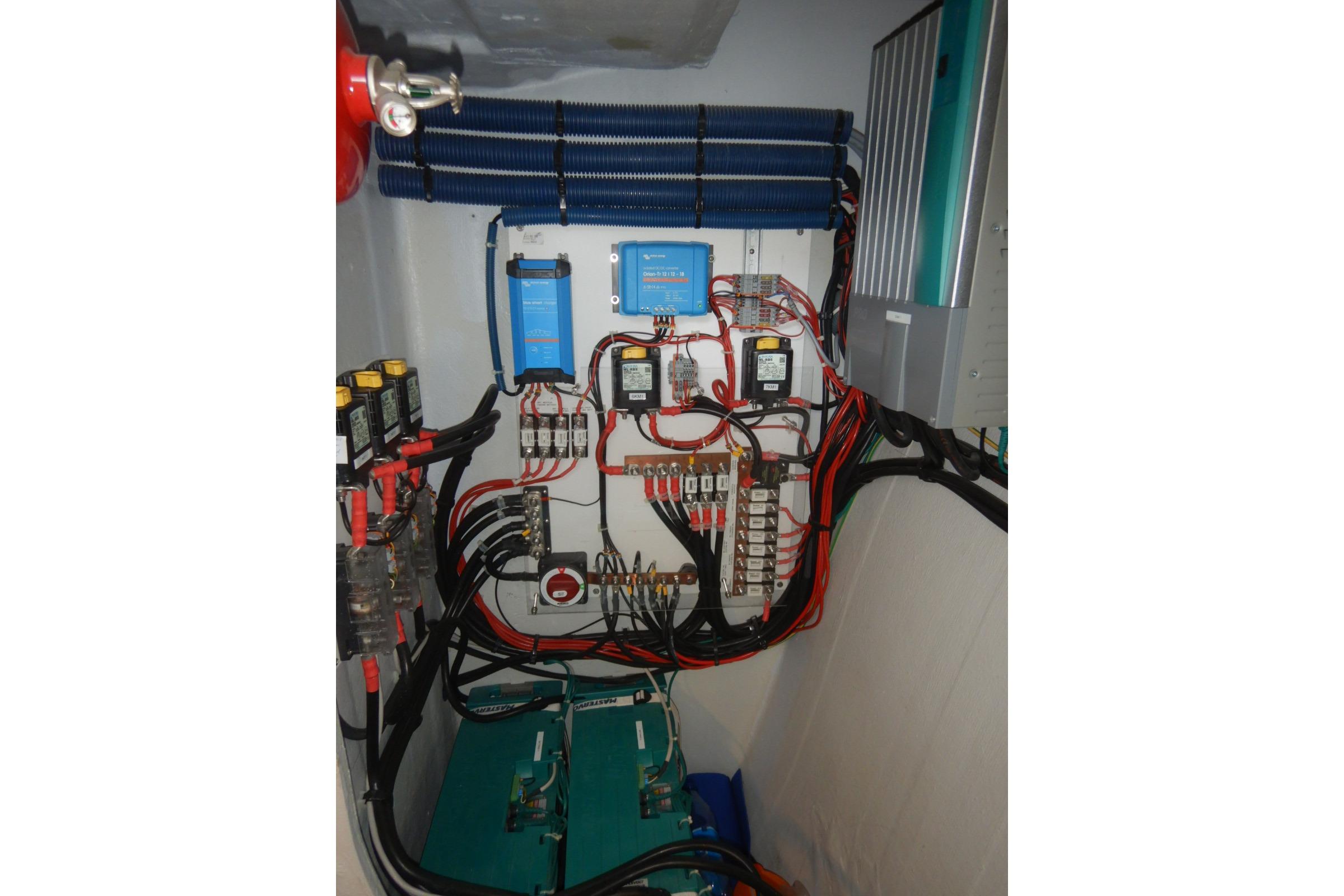 Parmi les améliorations récentes figurent également de nouvelles batteries de démarrage moteur et propulseur d’étrave (2025), ainsi qu’un important stock d’outillages et de pièces détachées essentielles telles qu’un démarreur, une hélice repliable, des pompes, un boitier MDI, un alternateur, etc.