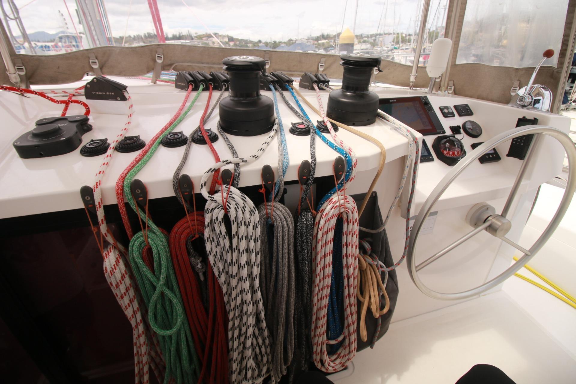L’inventaire de voiles est particulièrement complet et bien équilibré, comprenant une grand-voile, un génois et un solent en Hydranet (Incidence), entretenus en 2025 en Nouvelle-Zélande par un voilier professionnel, auxquels s’ajoutent un spinnaker asymétrique, deux Wingakers et un gennaker, garantissant des performances sur toutes les allures et par tous les temps. Le gréement dormant et courant a été intégralement remplacé en avril 2025. Le plan de pont a été soigneusement optimisé avec des bloqueurs supplémentaires, de nouveaux points d’ancrage, un système autovireur en Dyneema et des renforcements sous les taquets, le pont et les winchs, afin de simplifier les manœuvres et d’accroître encore les performances.