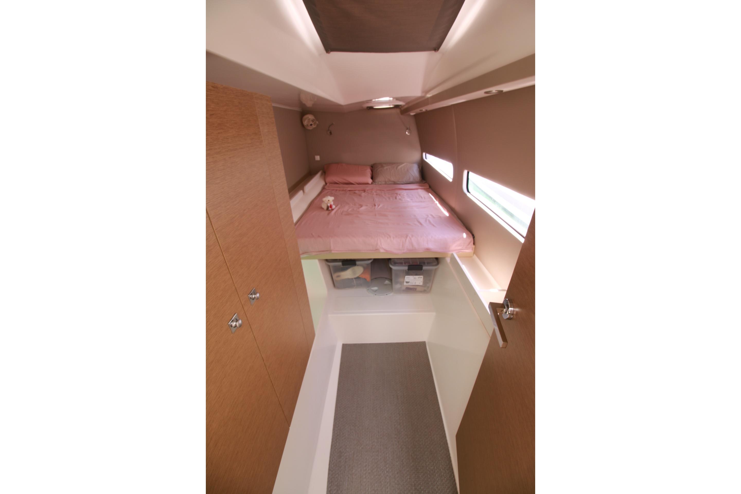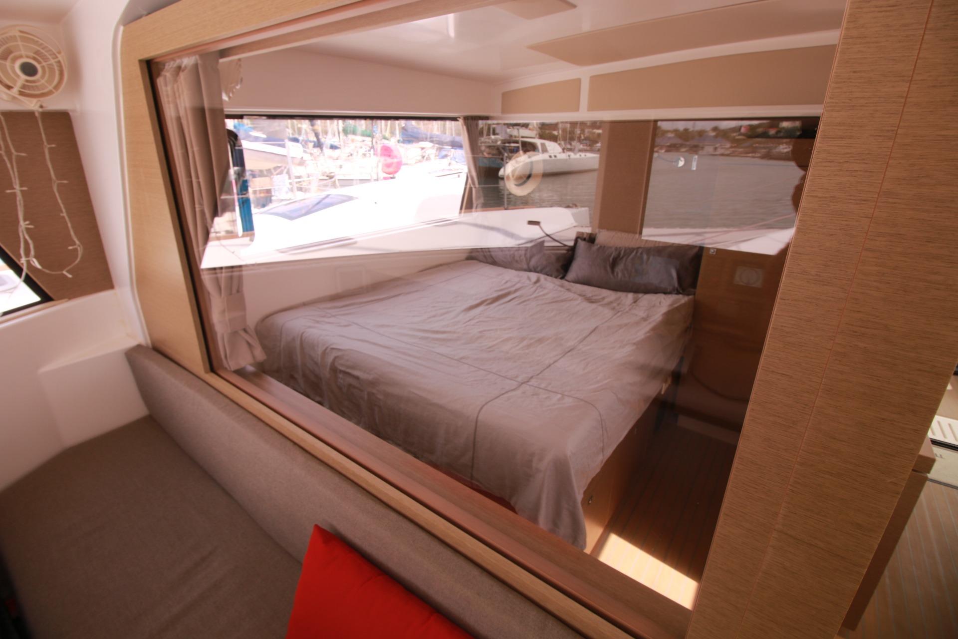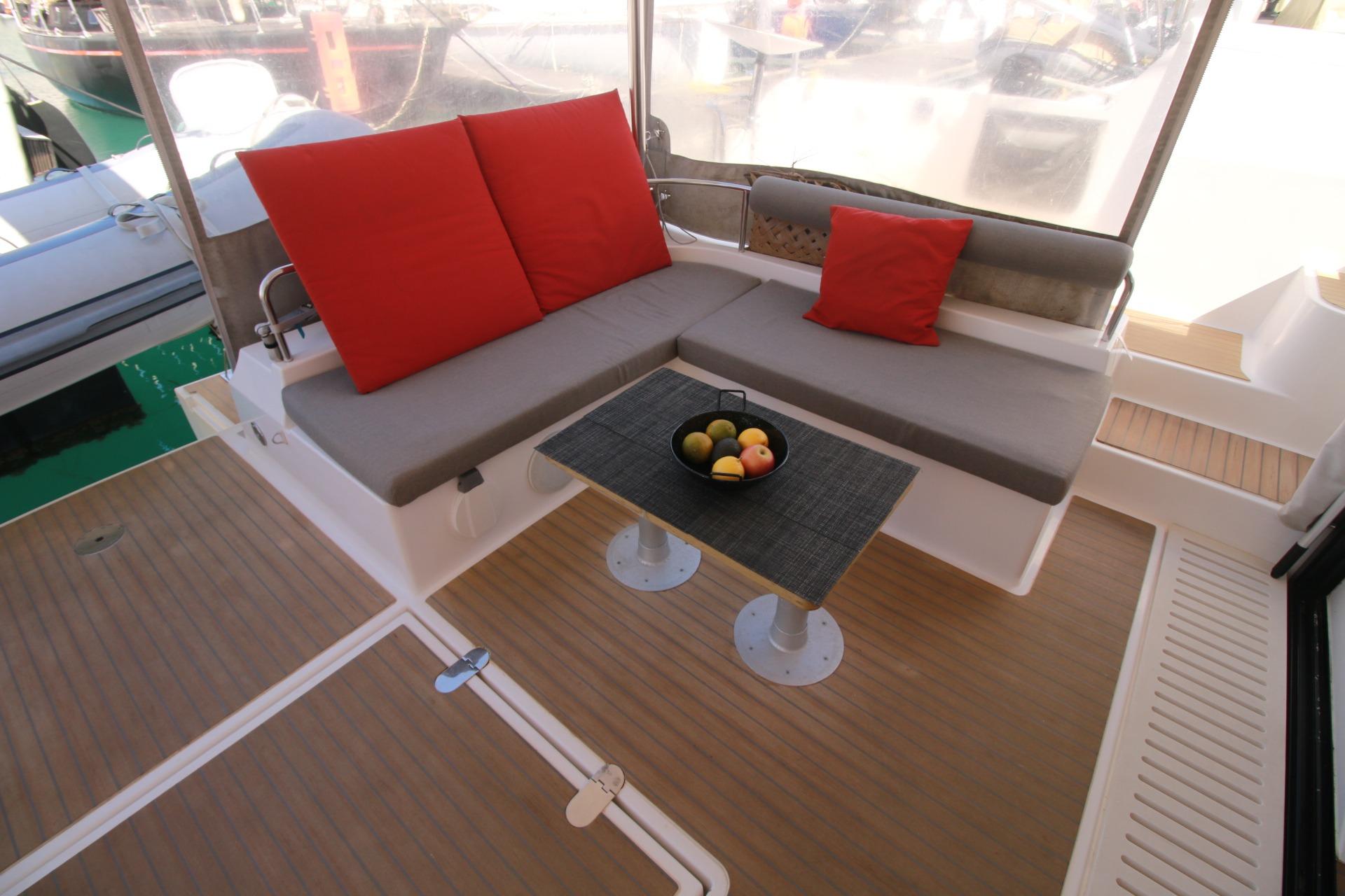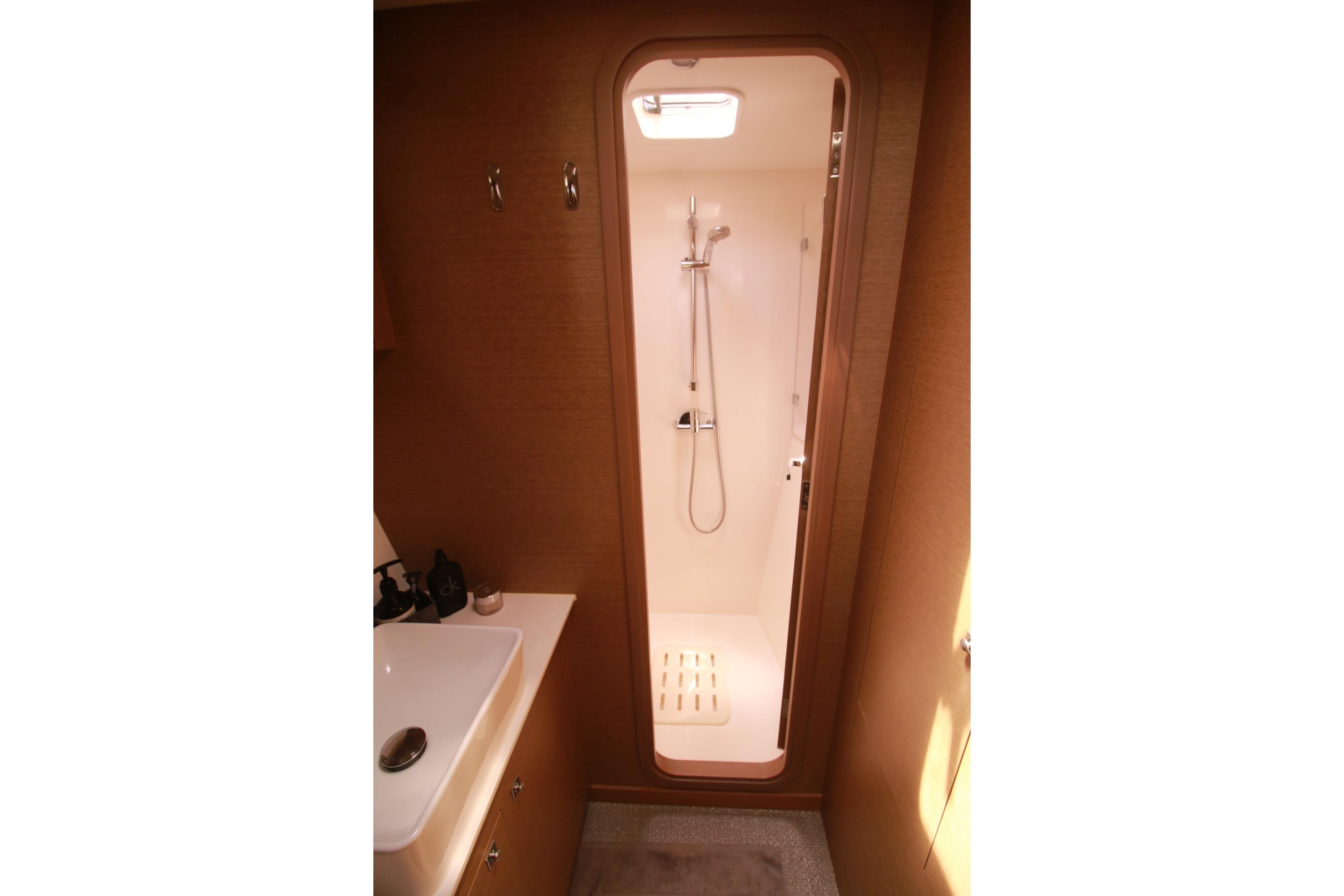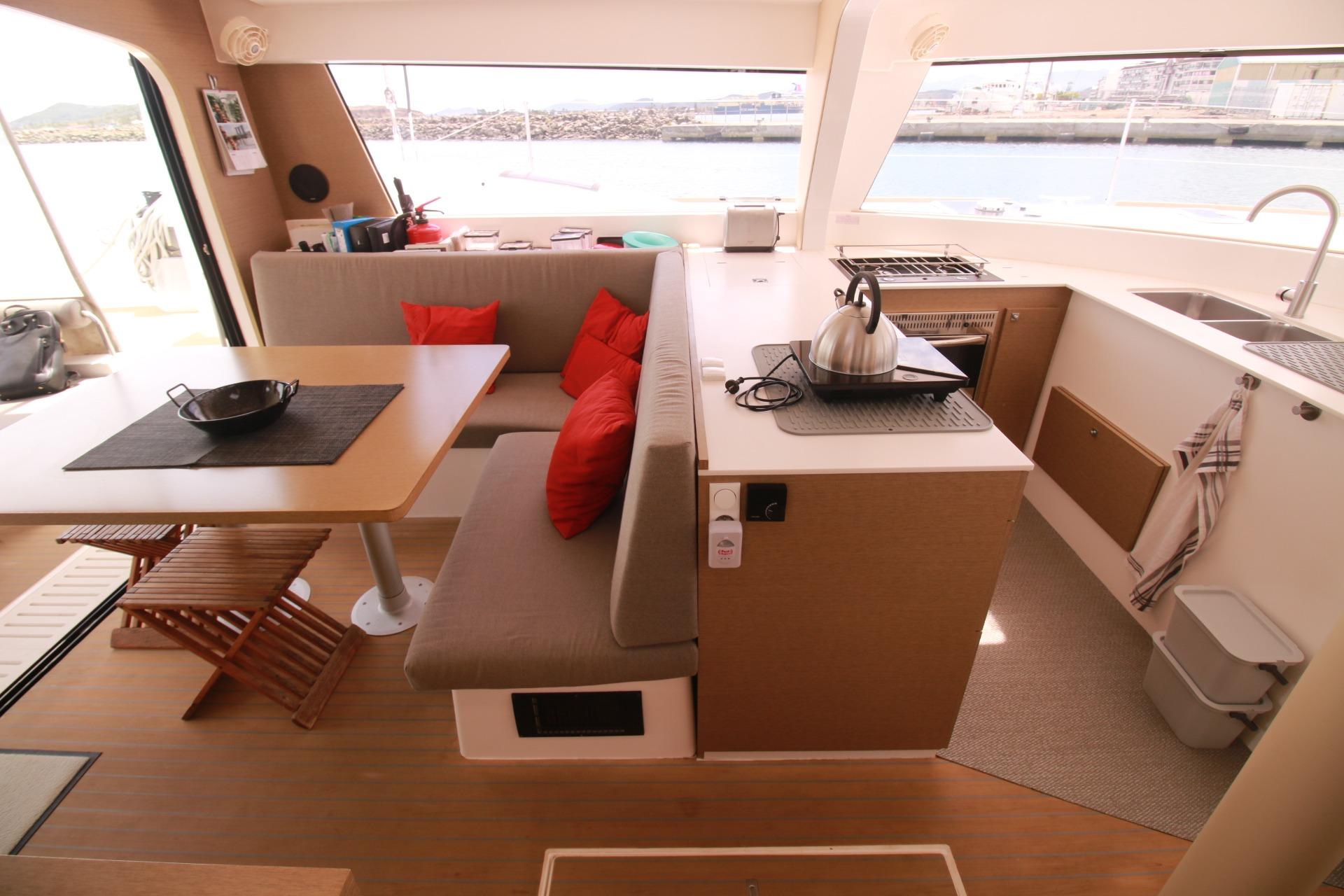 La vie à bord est particulièrement confortable : une cabine propriétaire luxueuse avec un matelas Tempur neuf, un carré lumineux et spacieux avec une grande télévision, une circulation de plain-pied vers le cockpit entièrement protégé par des bâches transparentes, une machine à laver neuve et un dessalinisateur fiable garantissant une autonomie totale en eau douce.