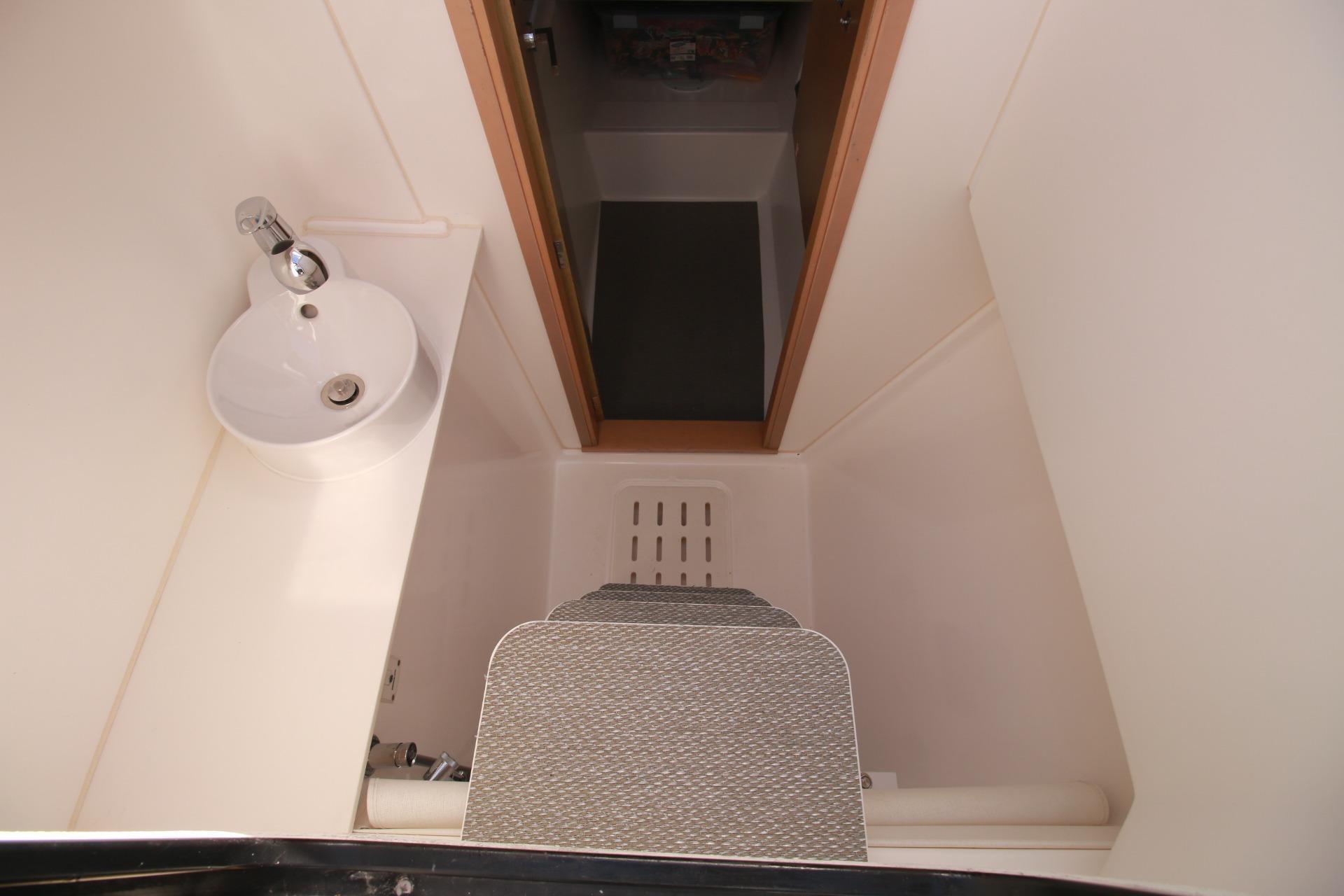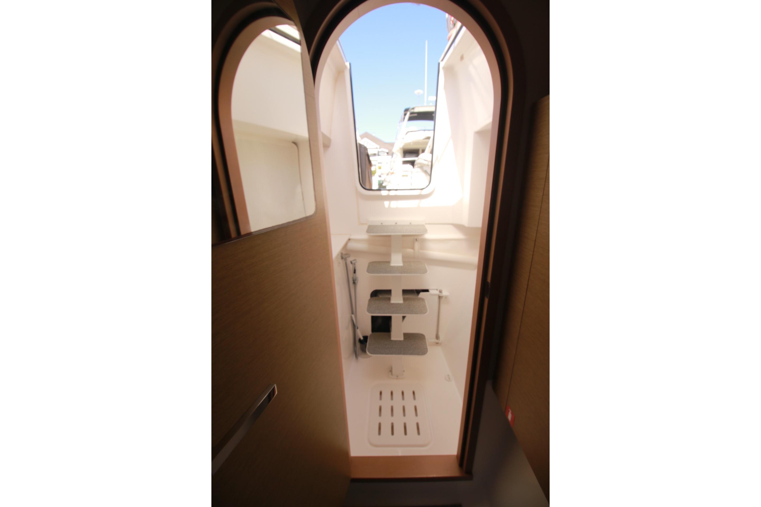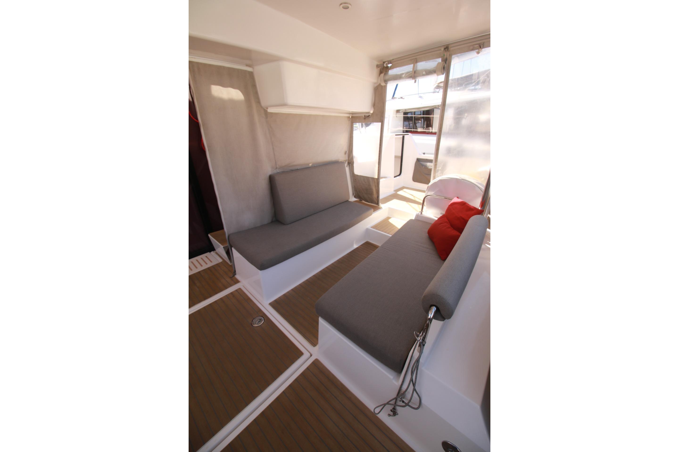 Life on board is particularly comfortable: a luxurious owner’s cabin with a brand-new Tempur mattress, a bright and spacious saloon with a large TV and seamless access to the cockpit, which is fully protected by transparent enclosures, plus a new washing machine and a reliable watermaker.