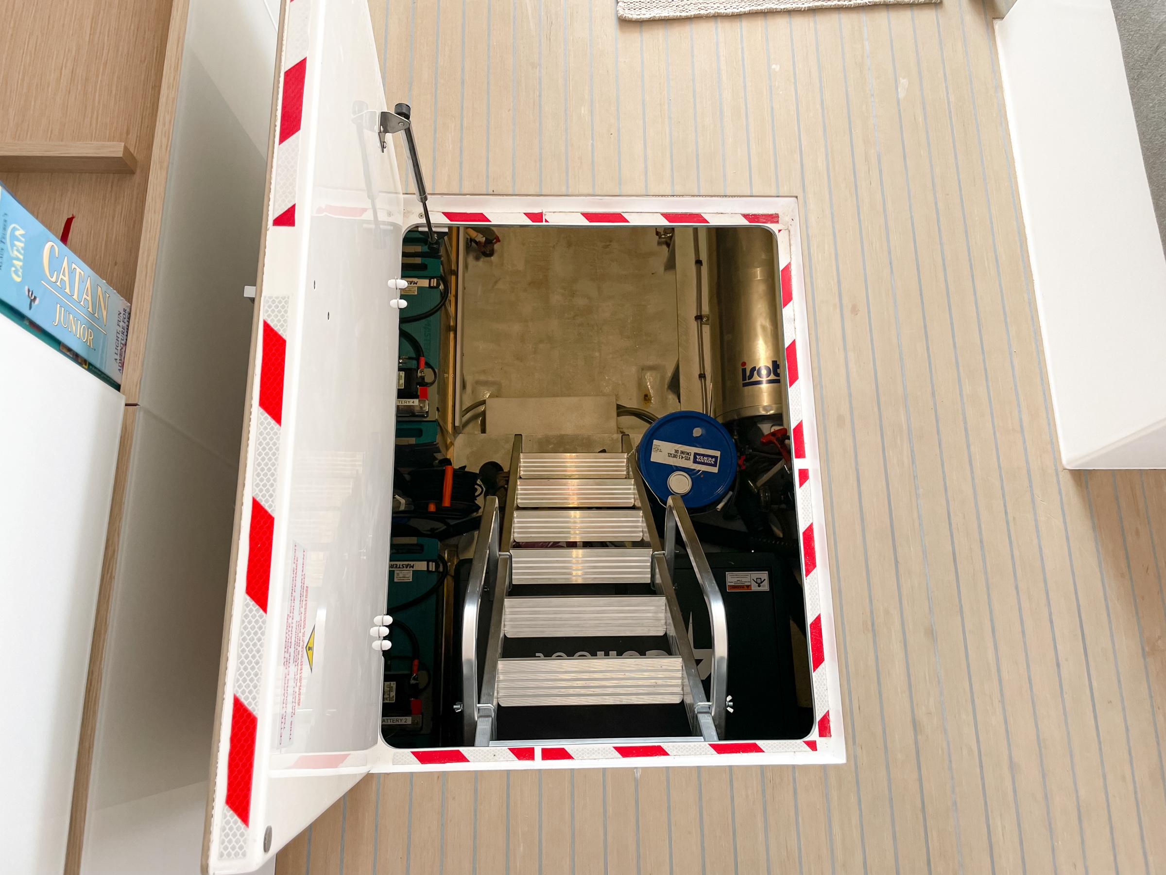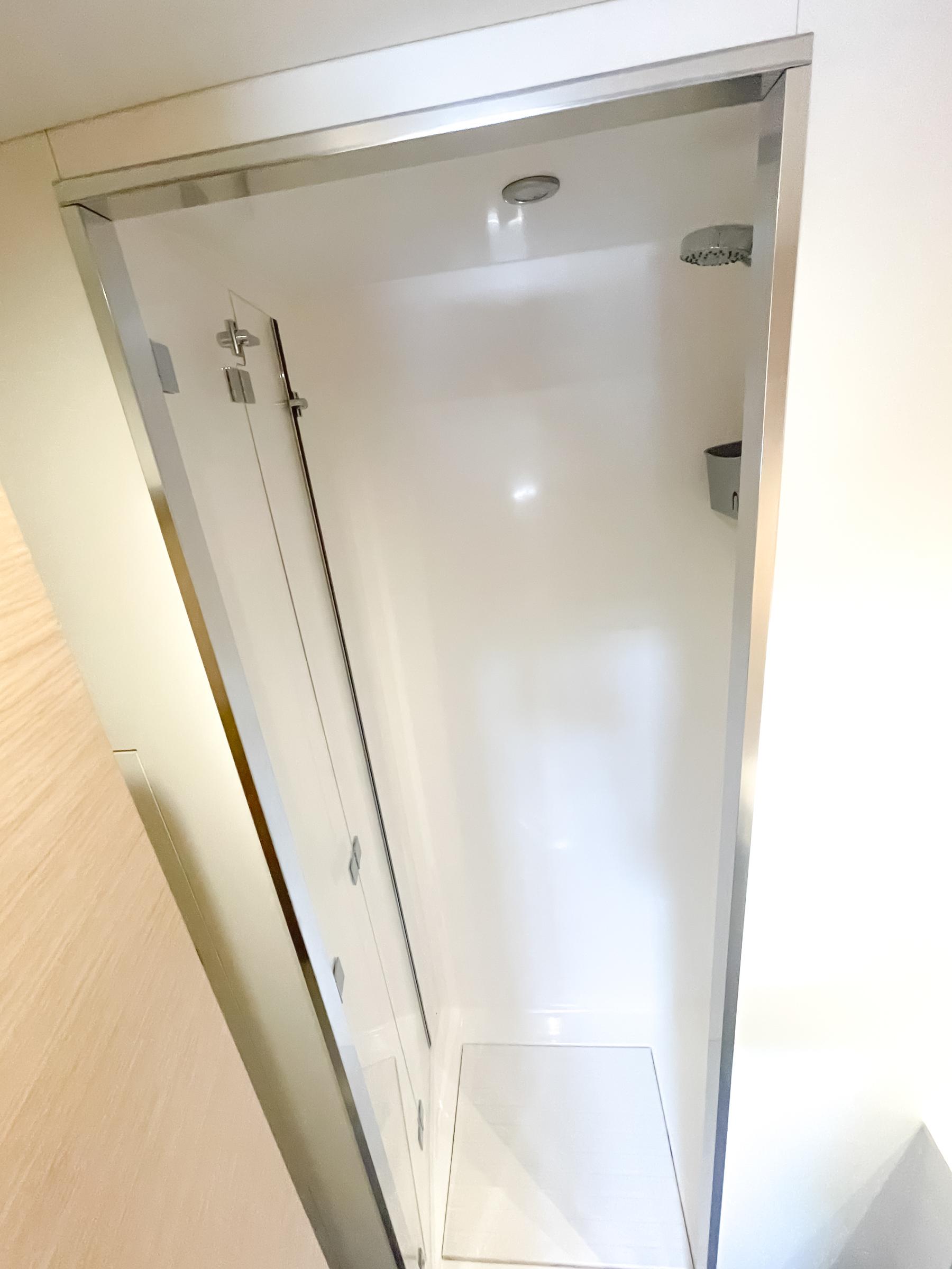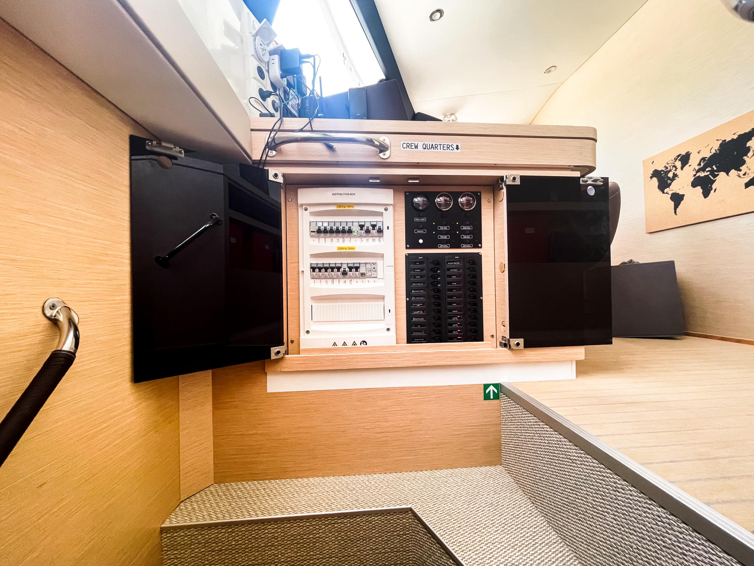 Out Of The Woods features the desirable 4-cabin layout with a deck level master cabin. The deck level master cabin is one of the defining features of the Neel 51 design that offers convenient access, reduced noise, and stunning views which just cant be achieved on other multihulls. It has a large en suite head with separate shower stall. The 3 guest cabins are situated in the bow and both amas – they all include queen bunks and en suite heads and showers elegantly designed with modern fixtures and finishes.