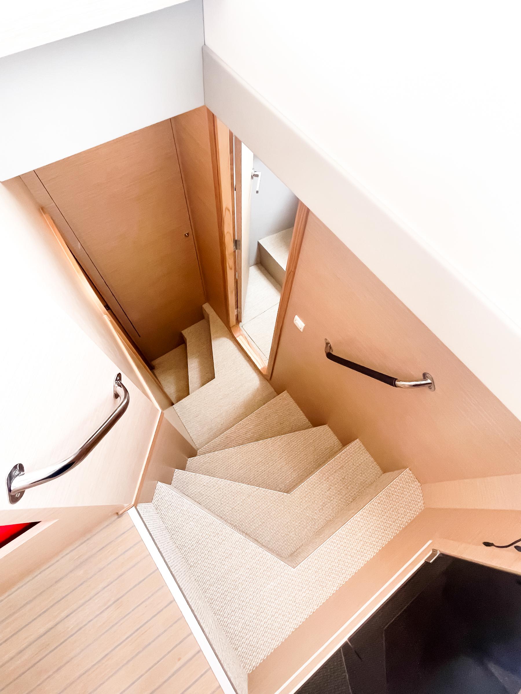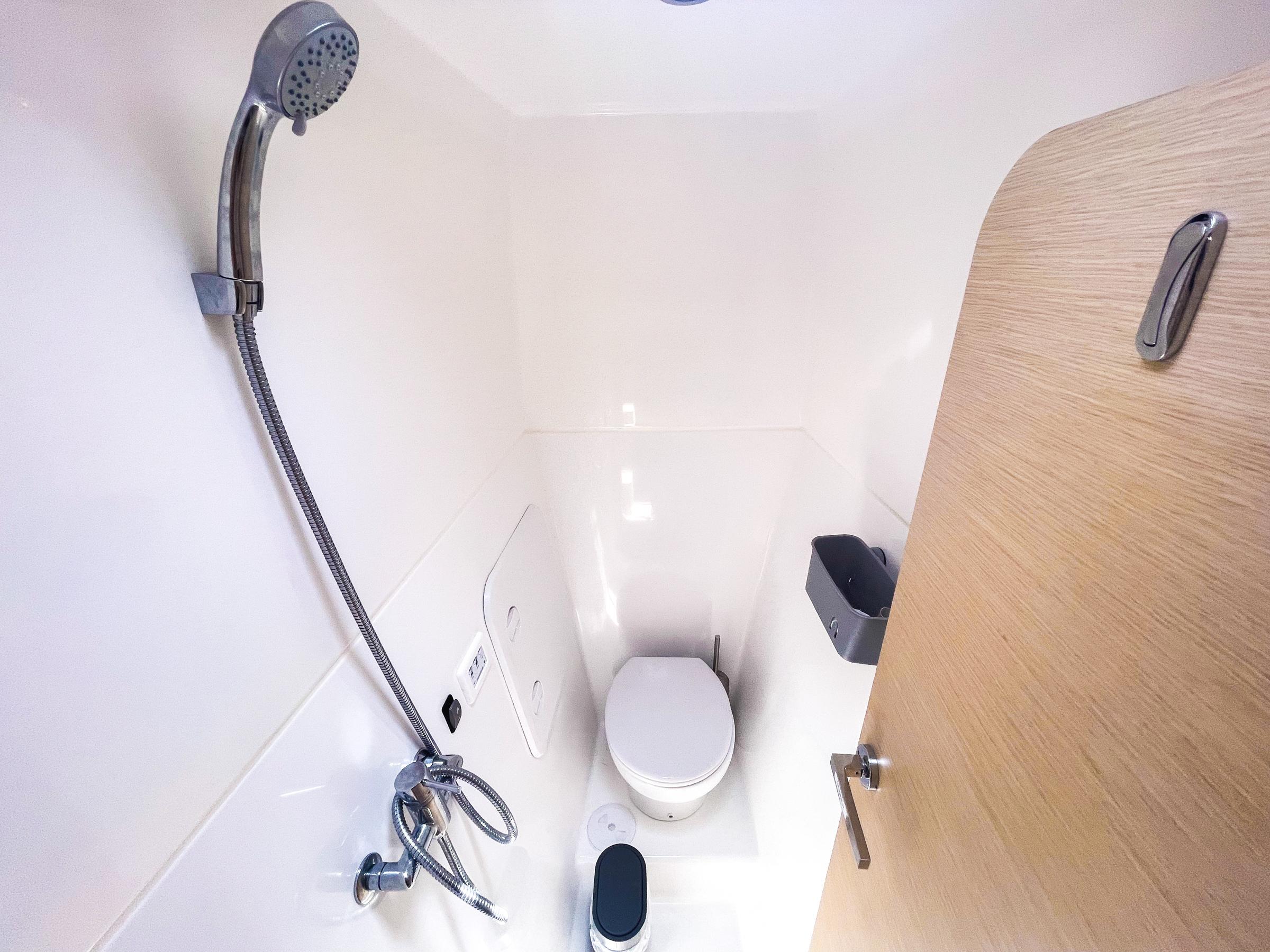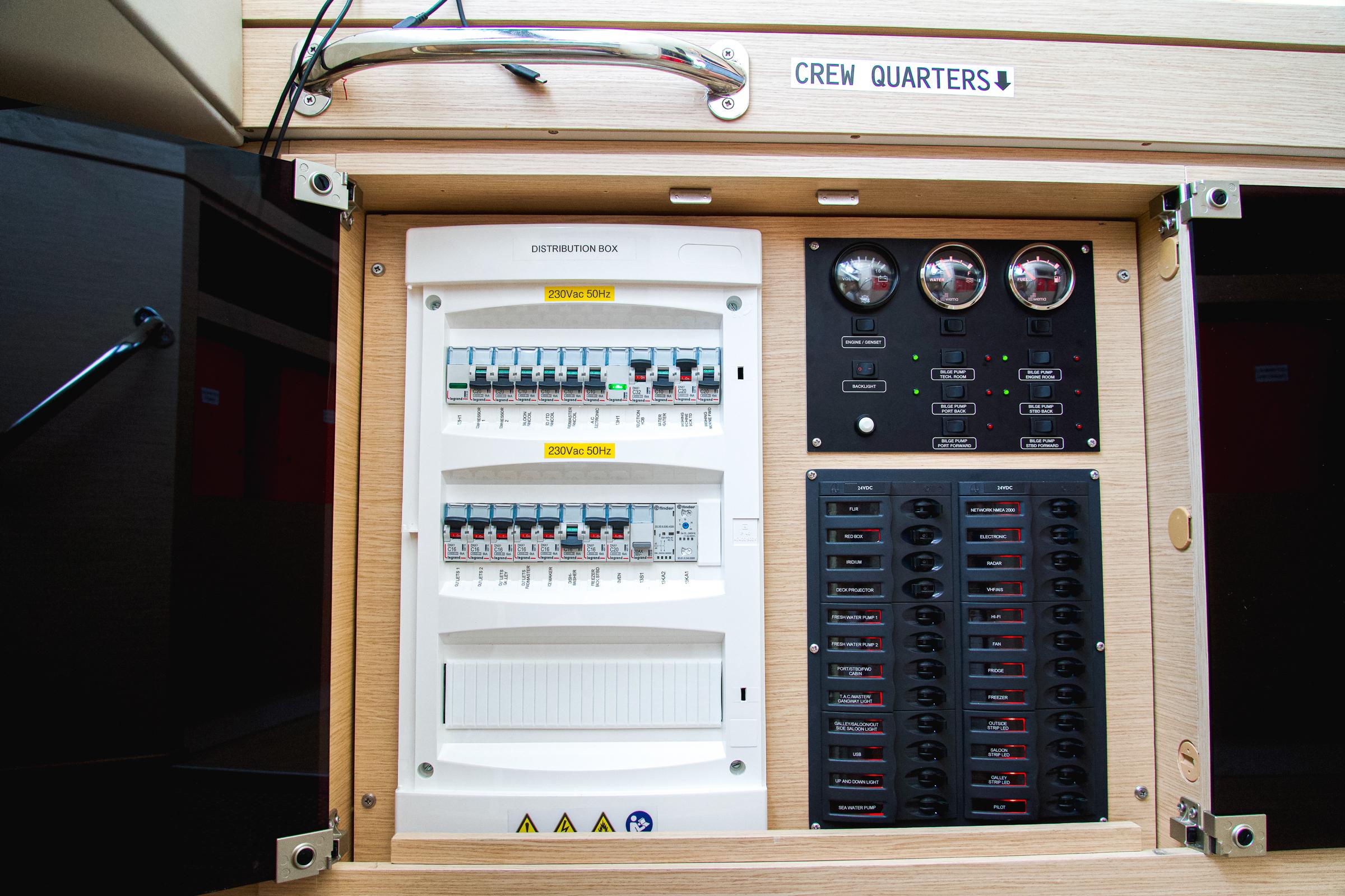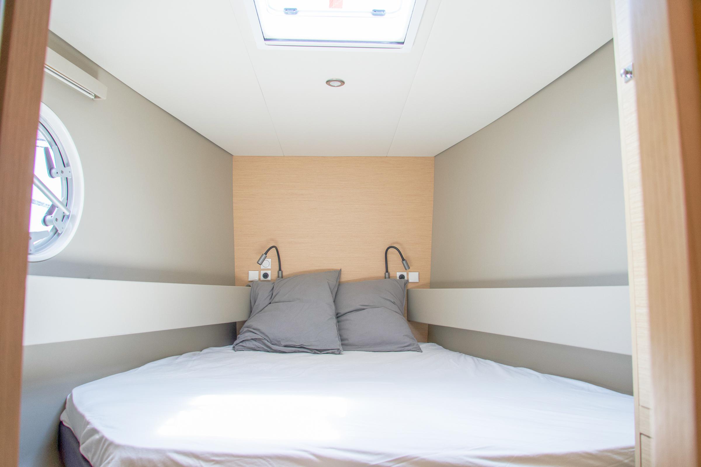 Out Of The Woods features the desirable 4-cabin layout with a deck level master cabin. The deck level master cabin is one of the defining features of the Neel 51 design that offers convenient access, reduced noise, and stunning views which just cant be achieved on other multihulls. It has a large en suite head with separate shower stall. The 3 guest cabins are situated in the bow and both amas – they all include queen bunks and en suite heads and showers elegantly designed with modern fixtures and finishes.