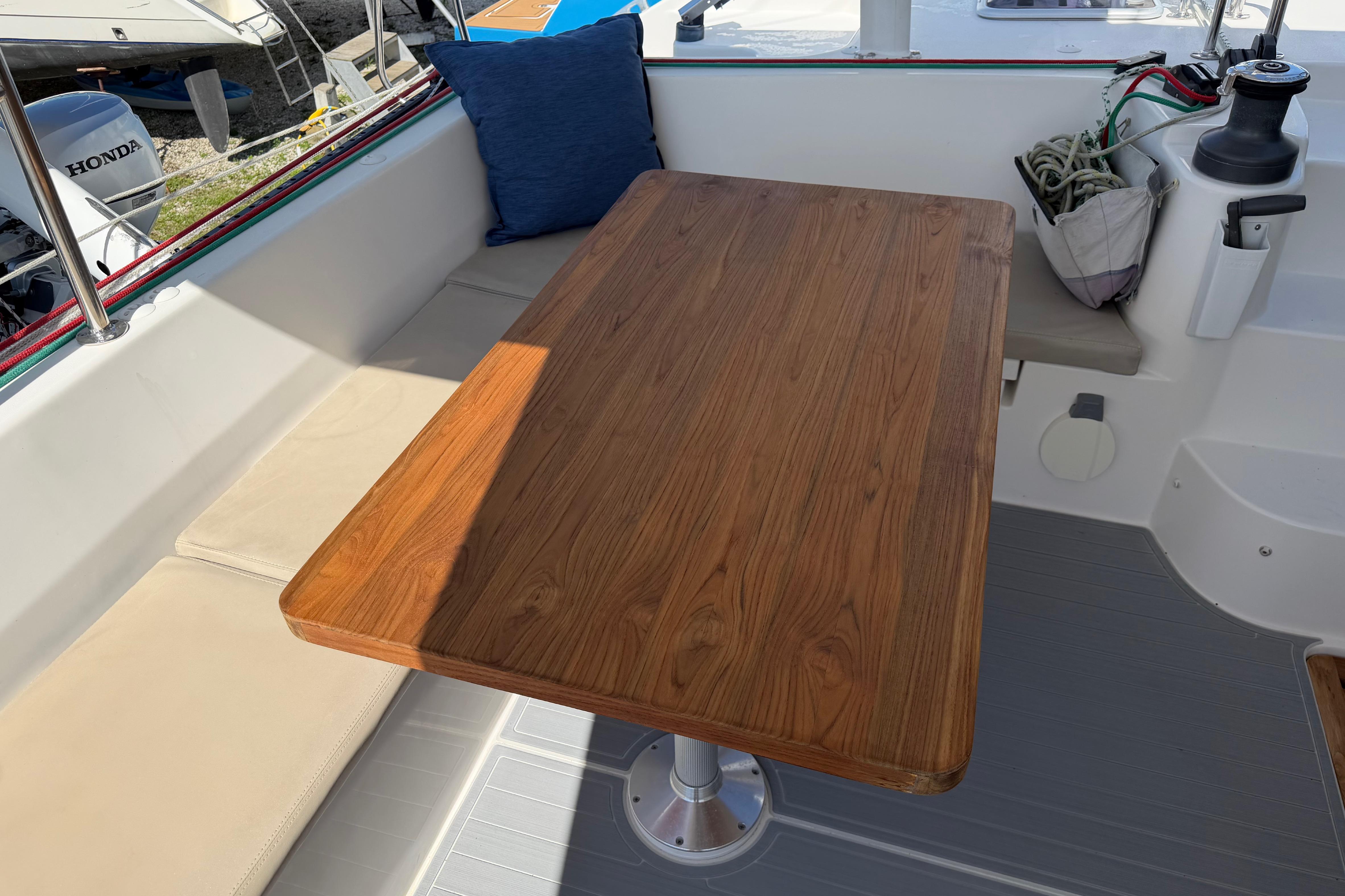 On deck, STRATEGERY X is clean and purposeful. The cockpit is protected and well-organized for offshore sailing, and the sail handling systems have been upgraded to make single-handed or short-handed operation genuinely manageable. The mast modification for ICW clearance has been thoughtfully executed the mainsail reduction affects only the upper section mid-sail, preserving the lower CE for better balance and less weather helm in a breeze.