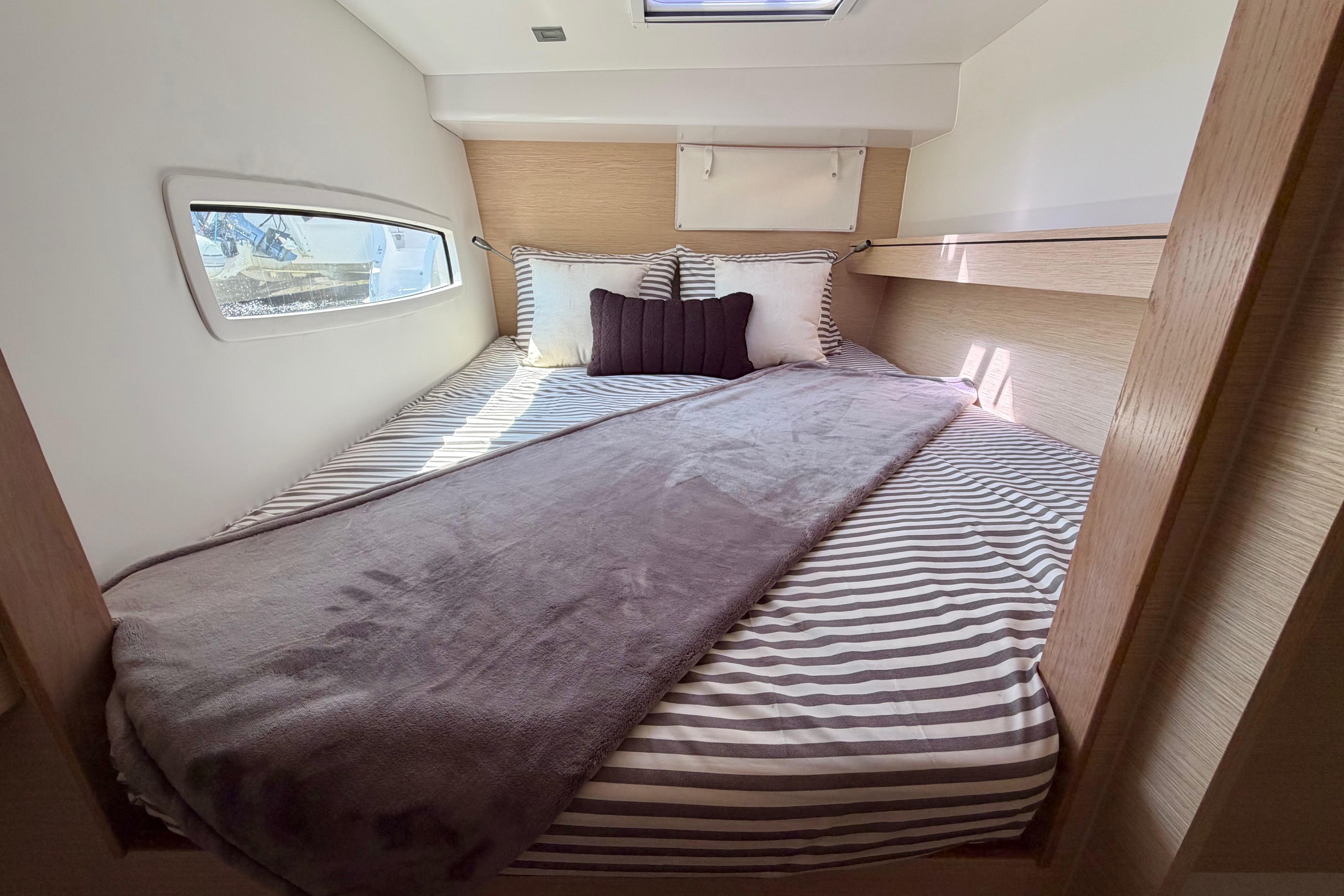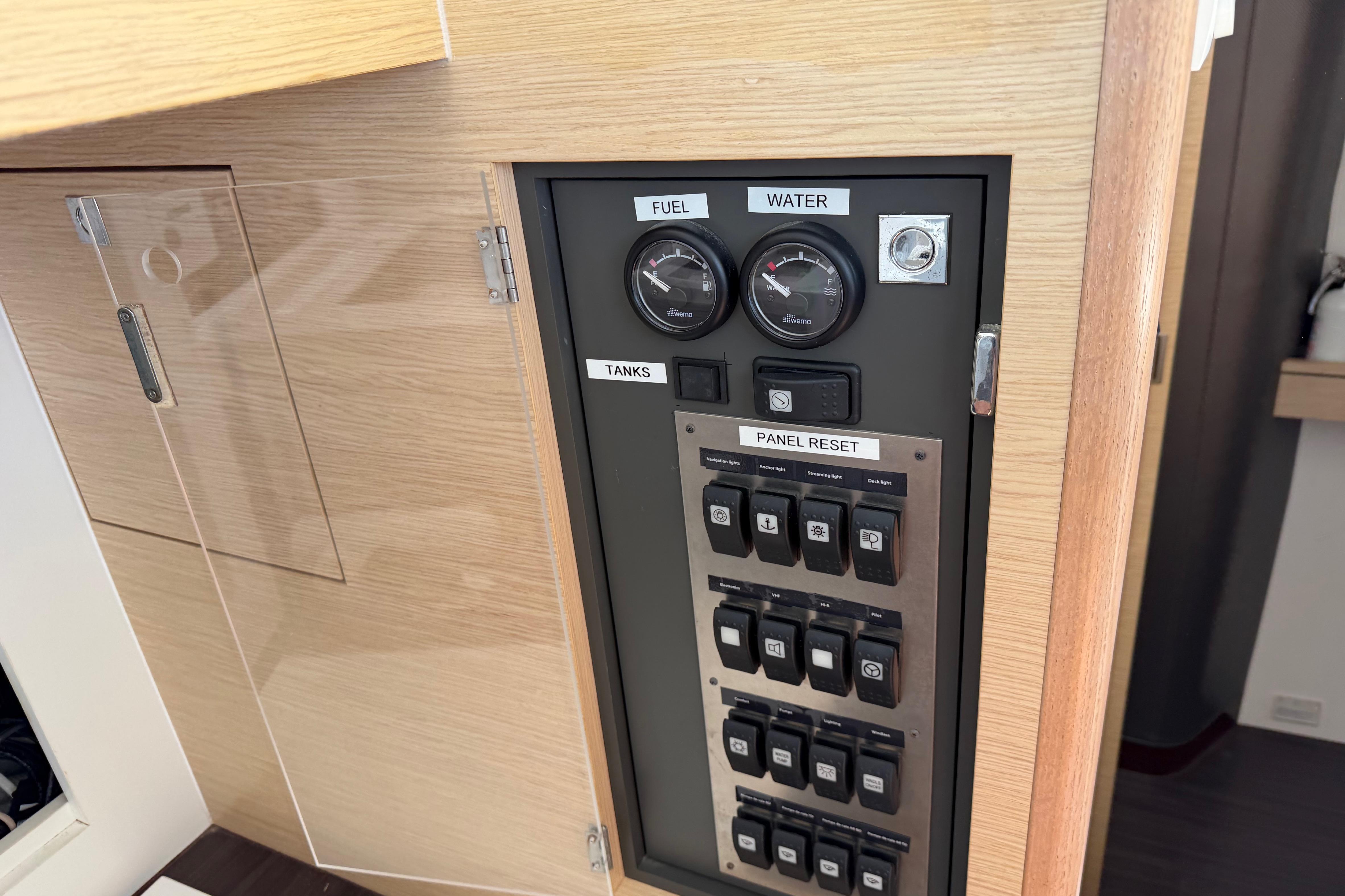 USB outlet in each cabin and 12v outlet at helm