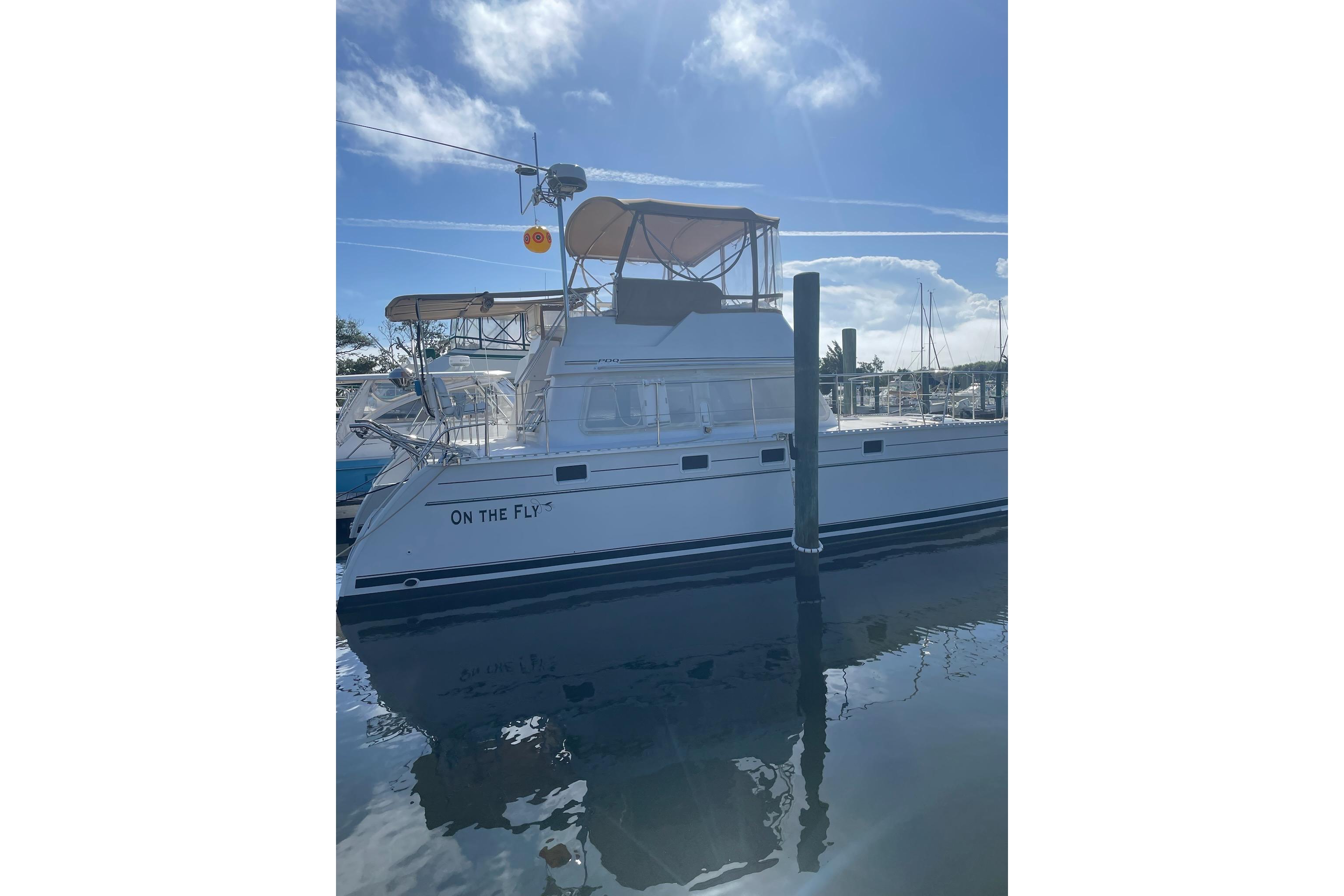 This PDQ 34 is fully equipped for cruising. On the Fly is in excellent shape and has been very well cared for. The next owners will be able to move aboard and start enjoying her immediately! Recently upgraded electronics, dinghy, solar and flybridge surround, On the Fly has been spared no expense. She is currently located in Southport, NC.