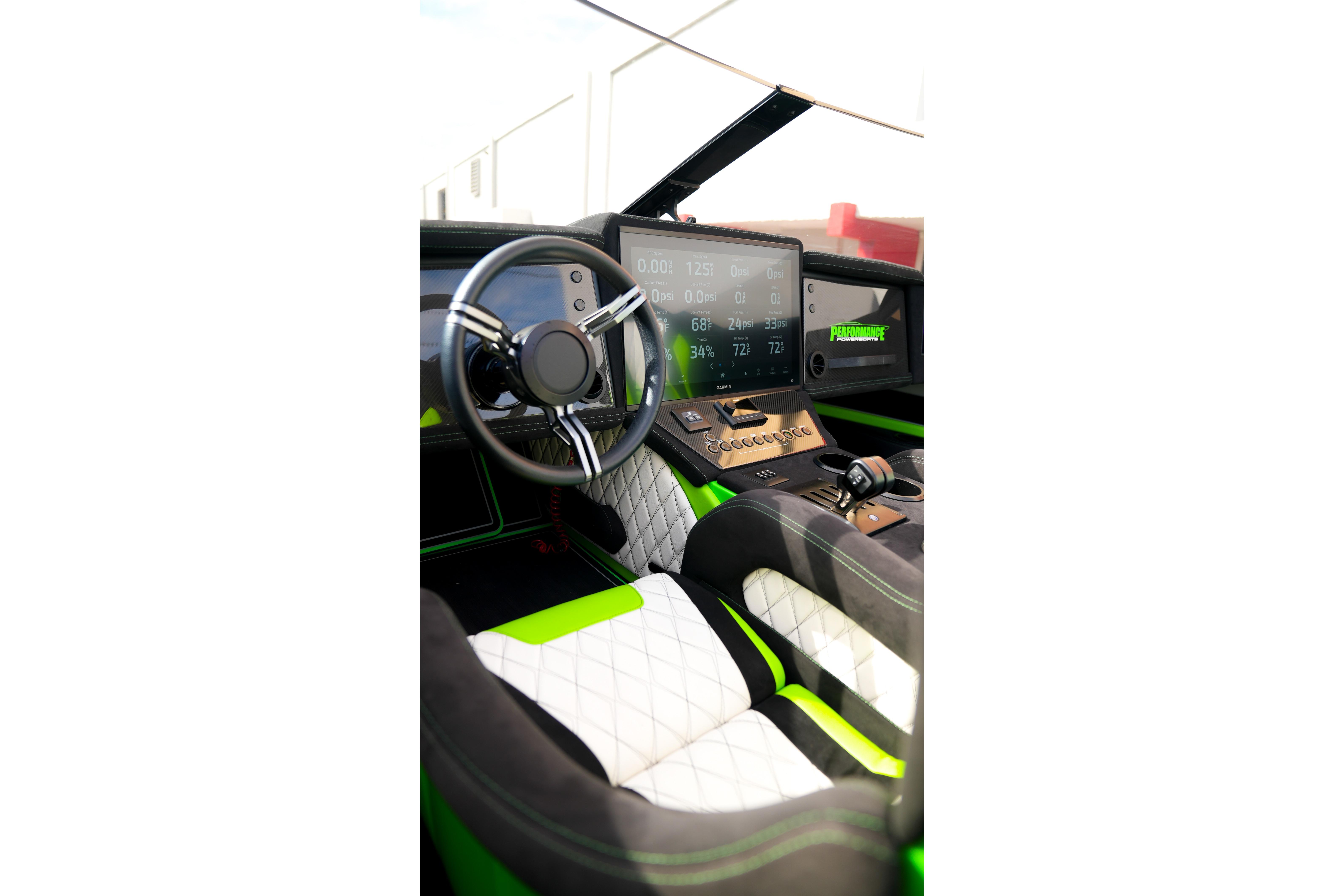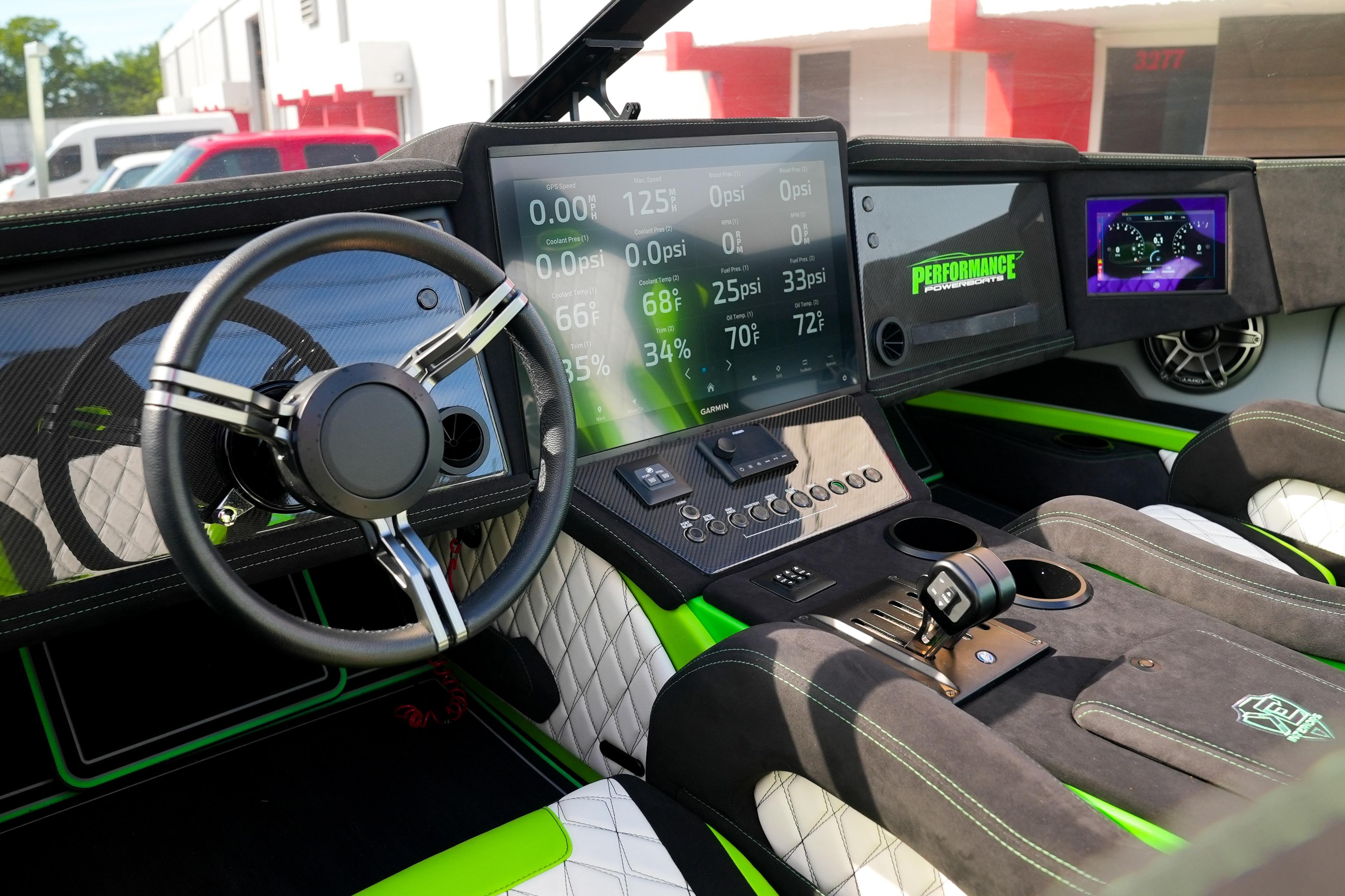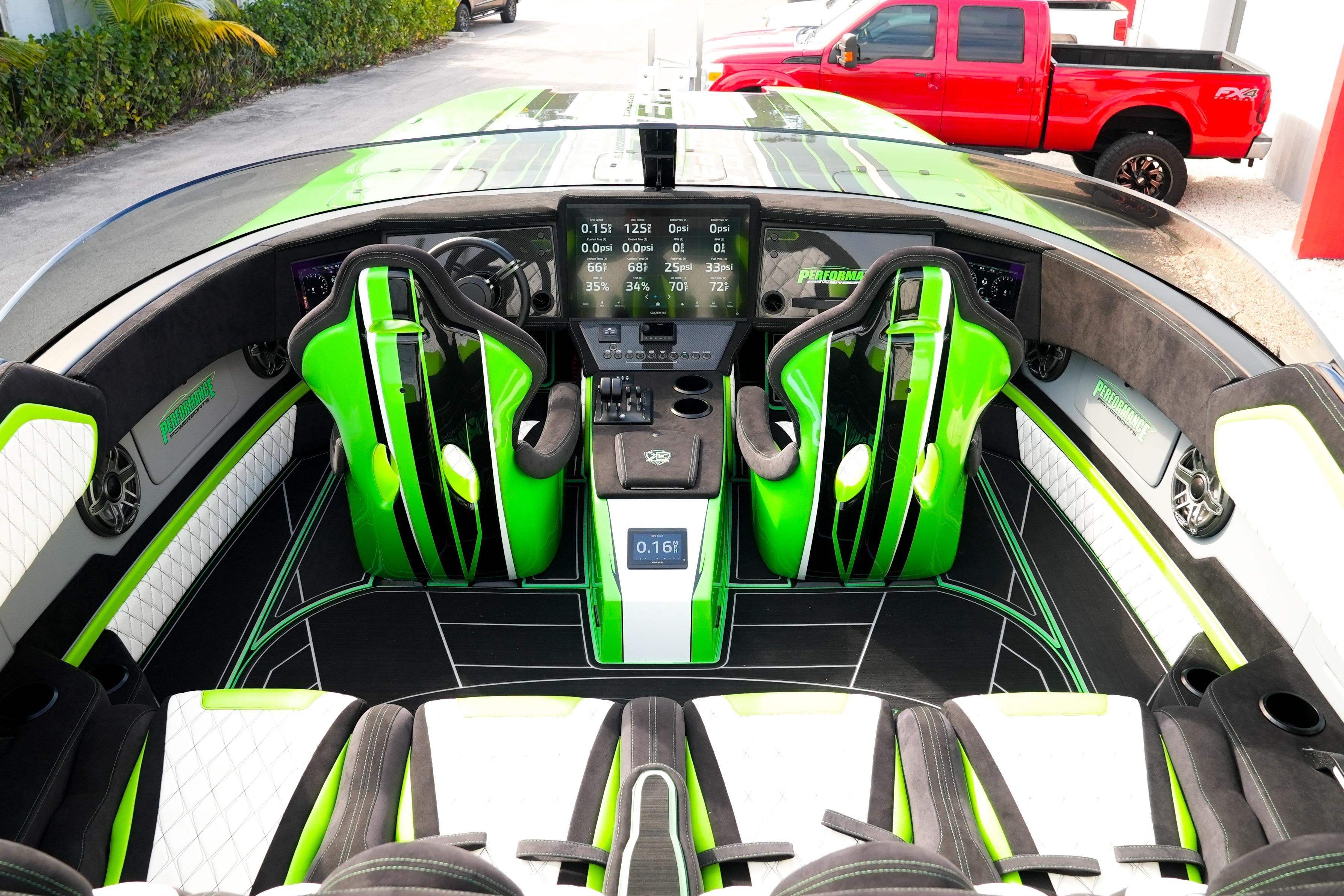 2025 Performance Powerboats P360 powered by Mercury Racing 500R with 25hrs. Mercury CNC 5 blade cleaver props, Garmin 8622 (22” display), Mercury DTS(digital throttle/shift), Vessel View 902, Fusion/JL Audio sound system with (6) 7.7 JL Audio components, JL Audio Subwoofer, Isotta steering wheel, Sea Deck flooring, custom interior, custom dash panels, LED navigation lights, underwater lights, (3) AGM batteries with remotes switching, on-board charger, cockpit cover, custom paint. Flat Evolution Trailer included!