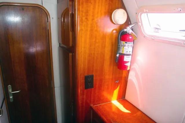 The boat is equipped with extensive safety gear and multiple bilge pumps. In addition, many spares and tools are onboard to support extended cruising and systems maintenance.