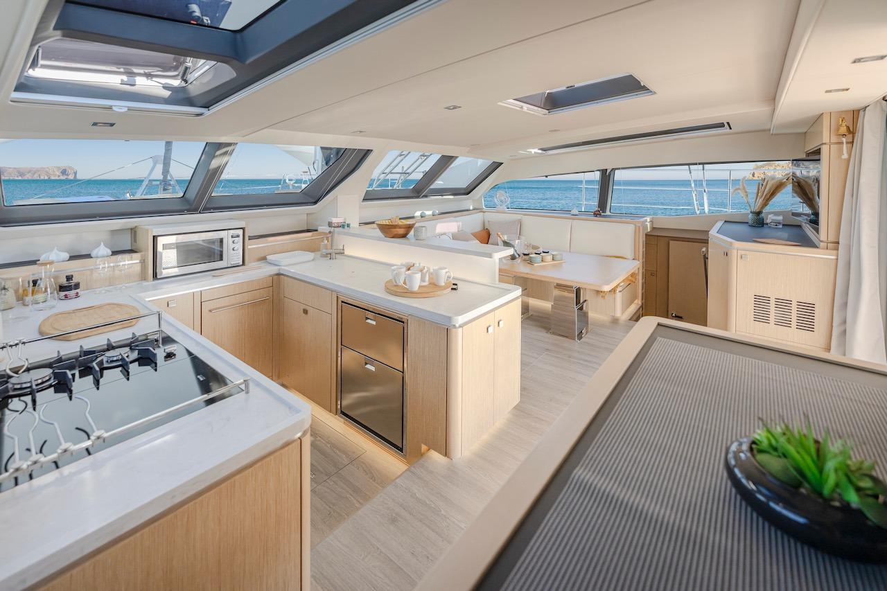 LIvable Environment - Passive ventilation while at anchor and silent a/c when needed. With 7 overhead hatches in the master suite and 5 in the salon, air flow while at anchor is ideal. Privilge Catamarans are equipped with a central chiller system so youll enjoy interior comfort with far less noise, even in extreme heat.