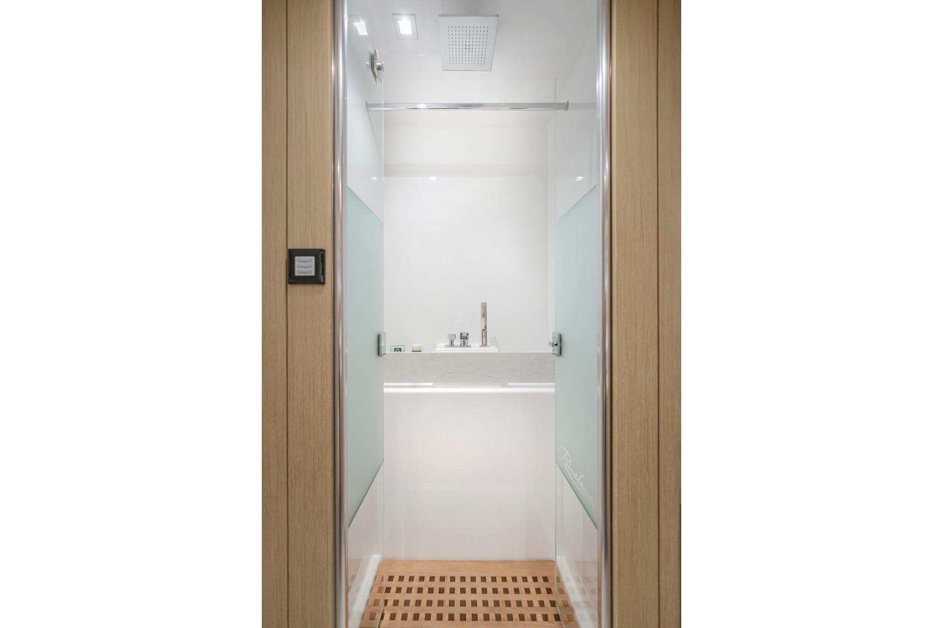 • 230VAC, 50Hz circuit with 2 outlets in each cabin, 4 in the master suite, 4 in the galley, 2 in the saloon, 2 at chart table, 1 in each head, 1 watertight in each engine room, 1 watertight in each bow