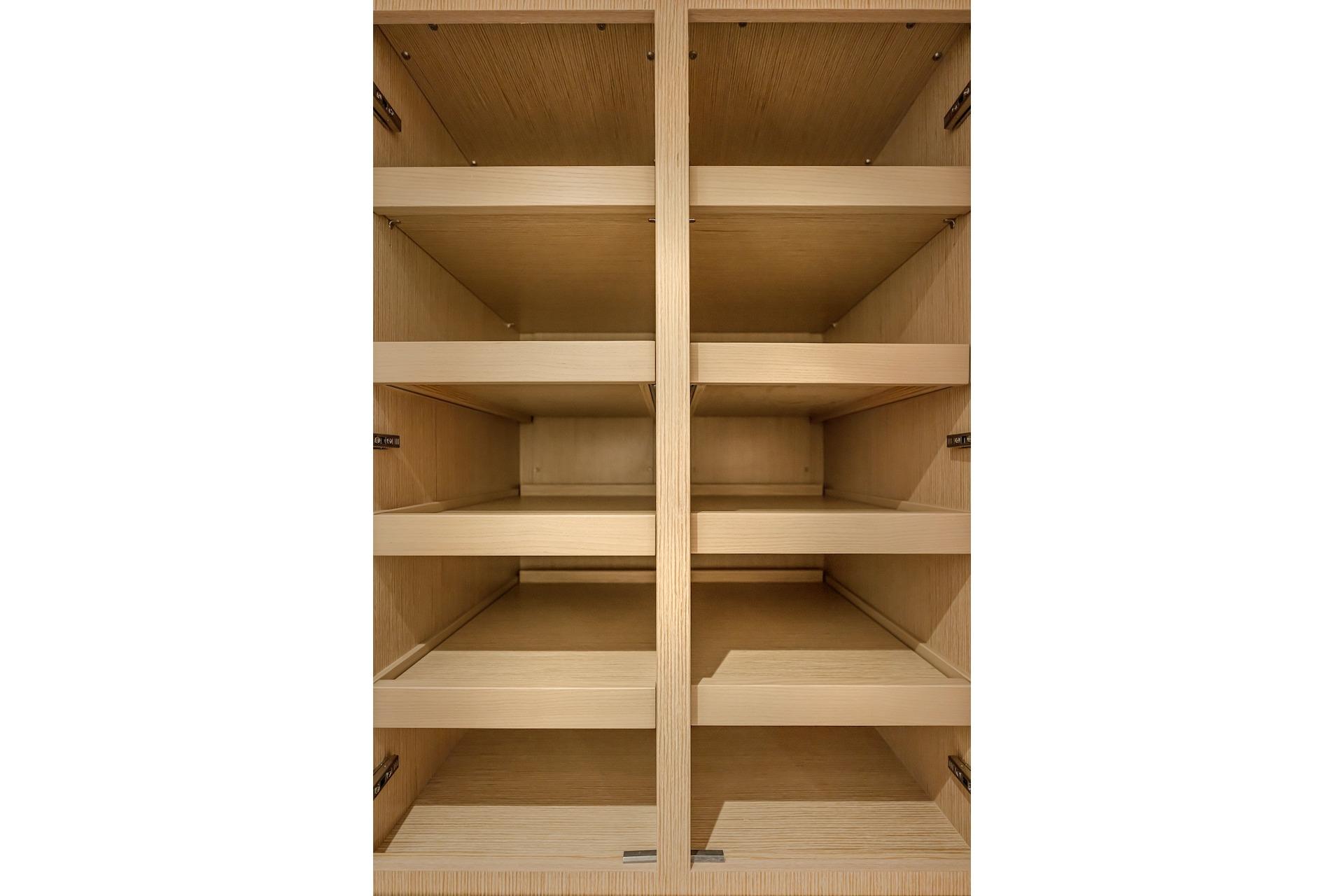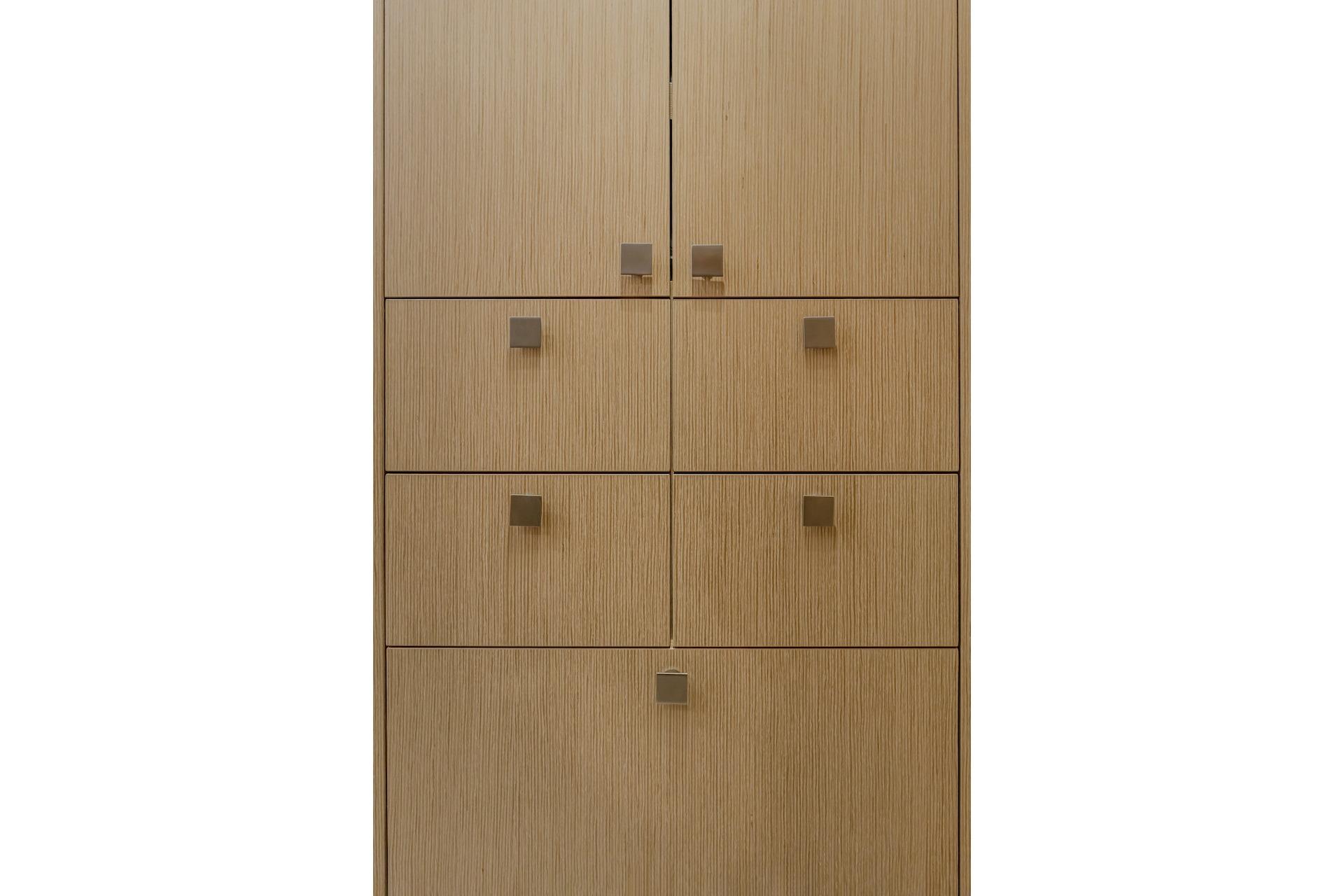 • 1 cabinet behind the fixed glass door of the patio with 4 drawers and 1 door