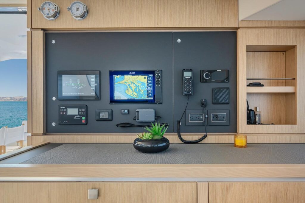 • Twin USB charging A+C: 1 in each cabin, 2 in the master suite, 1 in the saloon and 1 at chart table