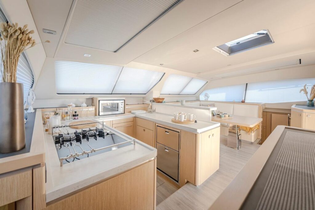 LIvable Environment - Passive ventilation while at anchor and silent a/c when needed. With 7 overhead hatches in the master suite and 5 in the salon, air flow while at anchor is ideal. Privilge Catamarans are equipped with a central chiller system so youll enjoy interior comfort with far less noise, even in extreme heat.