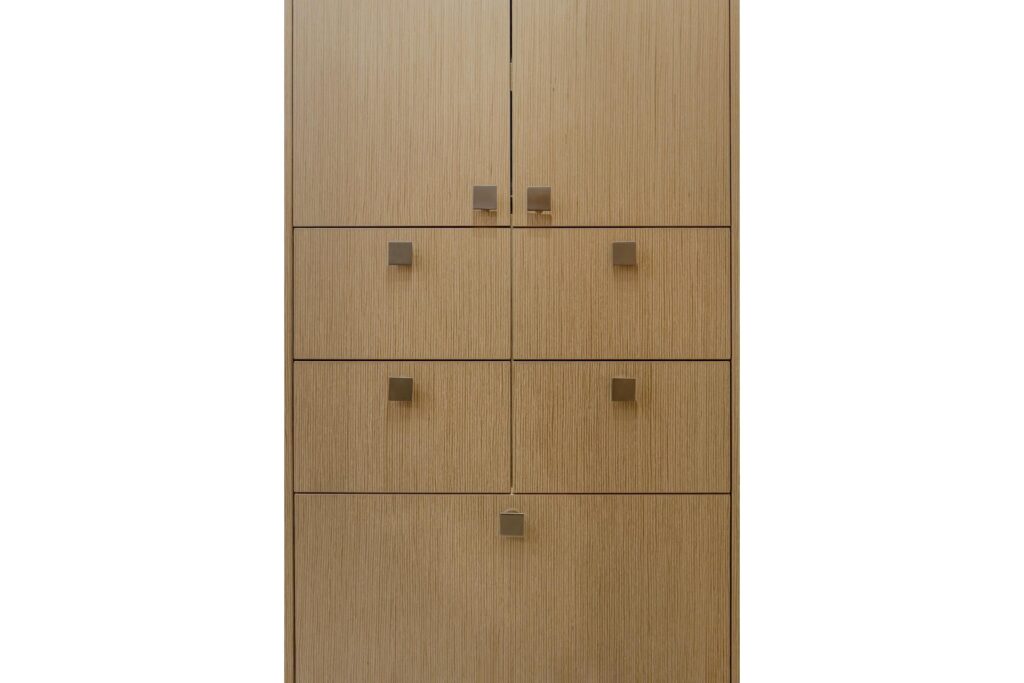 • 1 cabinet behind the fixed glass door of the patio with 4 drawers and 1 door