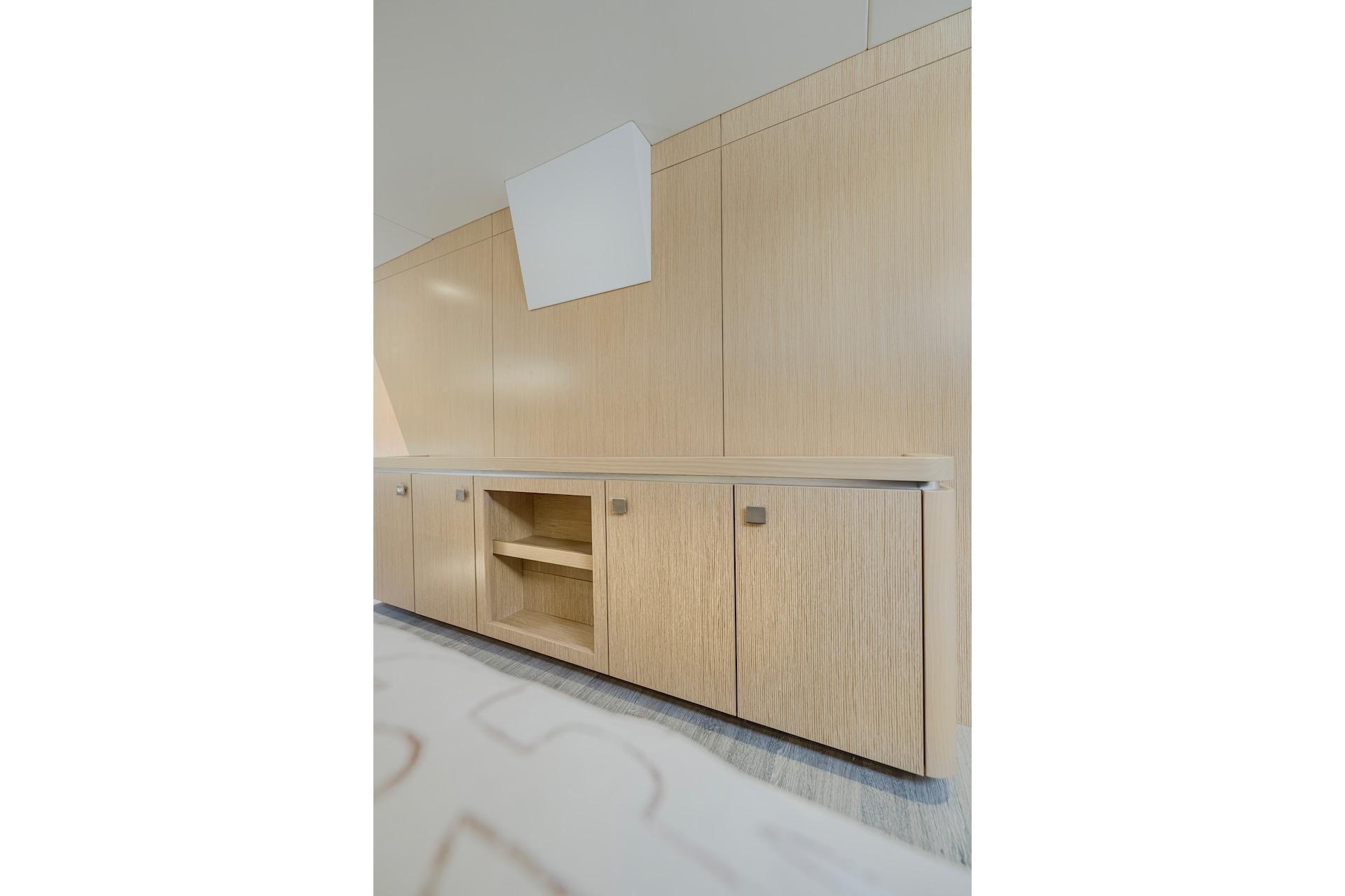 Storage Capacity -Storage capacity is essential for extended time aboard. A dedicated wardrobe in the master suite, a floor to ceiling pantry and large capacity fridge and freezer in addition to a well-appointed galley with plenty of cupboards and counter space are just a start. Also as important are spaces to store wet or bulky items such as fenders and additional sails. Theres also a dedicated location for an easy to deploy life raft in the cockpit that doesnt interfere with the flow of movement.
