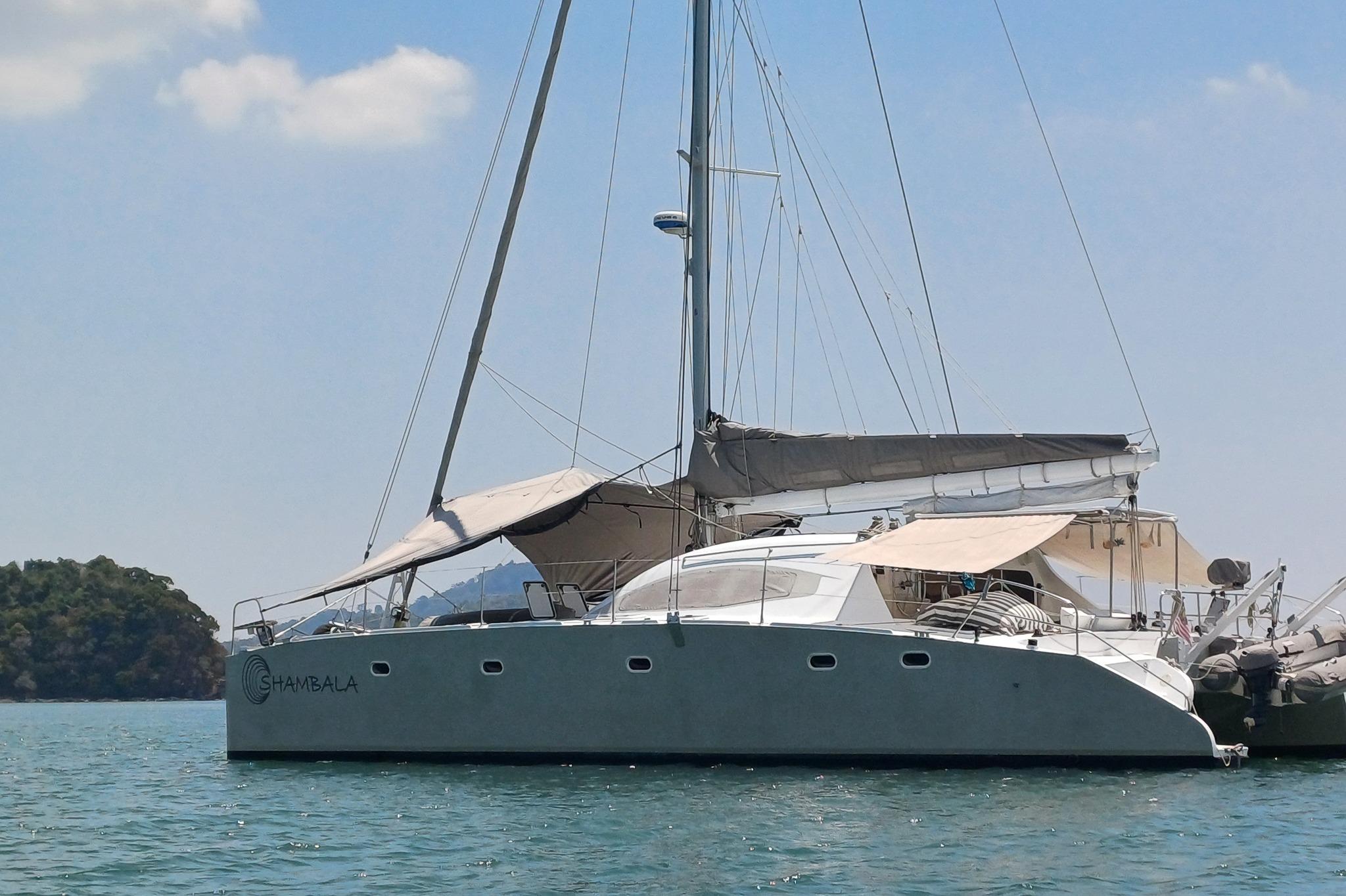 Built to sail, not to impress. SHAMBALA is a 2002 Punch 1500 LC—a design from Multicap Caraïbes that was engineered for cruisers who understand that capability outlasts flash. At 14.90 metres with an 8.10-metre beam and 1.40-metre draft, she's proven bluewater design from architects Mortain-Mavrikios who didn't overthink it: the shallow draft gets you into anchorages most cruisers can only dream of, the catamaran hull gives you real stability, and the layout works because it was built for people who actually live aboard.