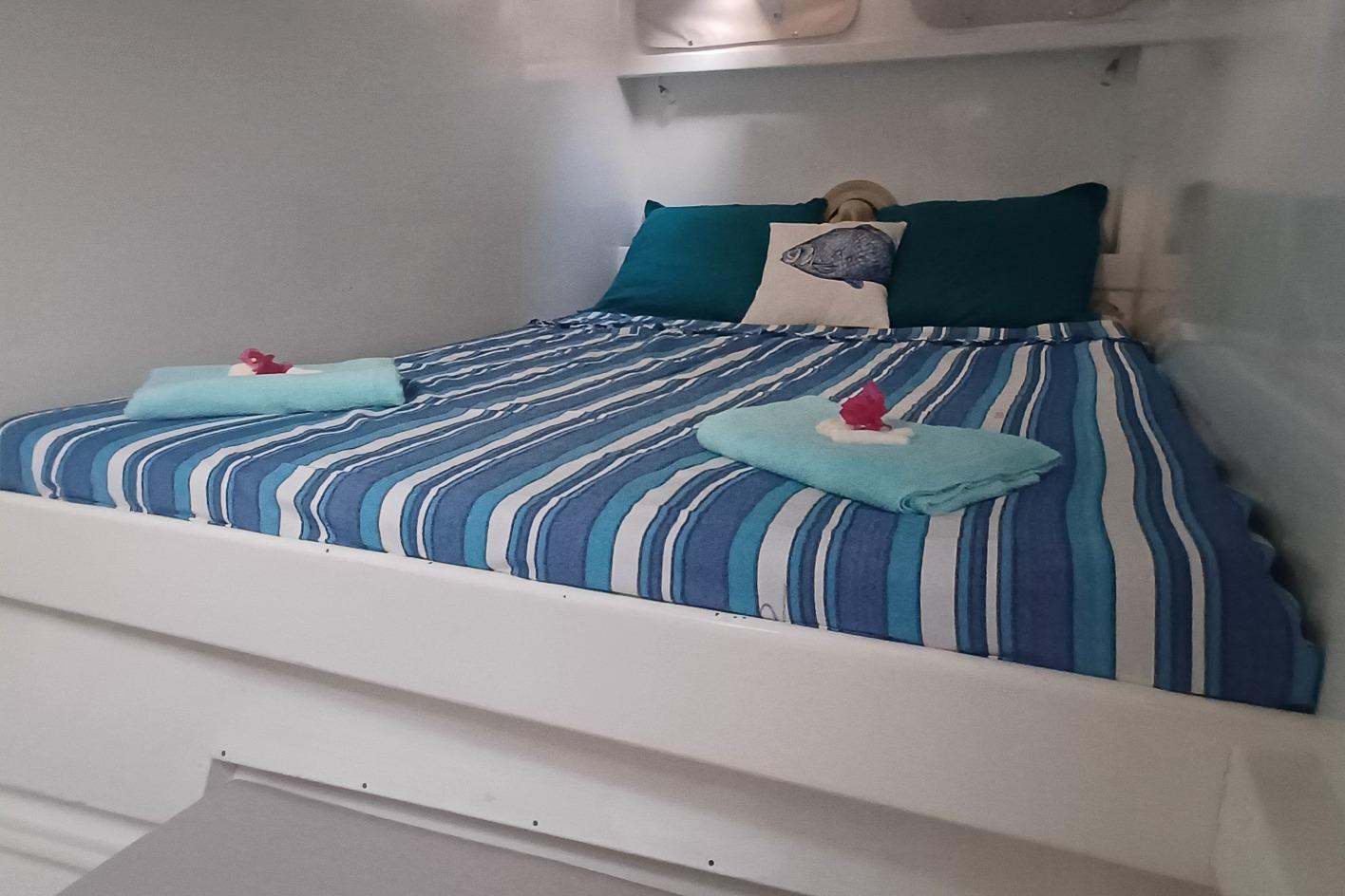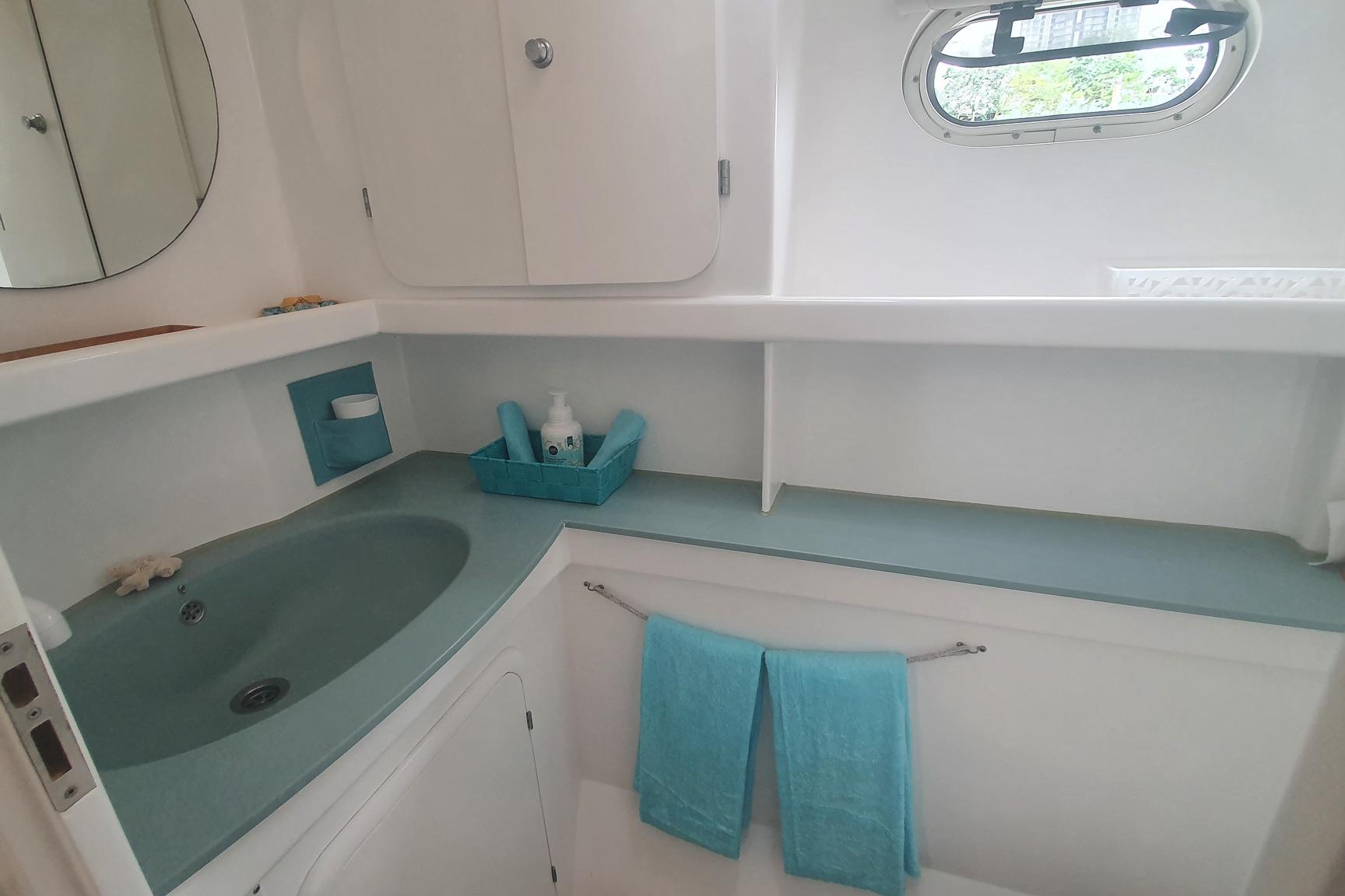 The layout is genuinely liveable. An aft owner's suite with a proper 160x200cm berth, forward guest cabins, electric heads with showers, and a convertible workshop space—all opening to a bright saloon and working cockpit. This is how people actually cruise: with room to move, space for guests, and no pretence about square footage that photographs well but doesn't function.