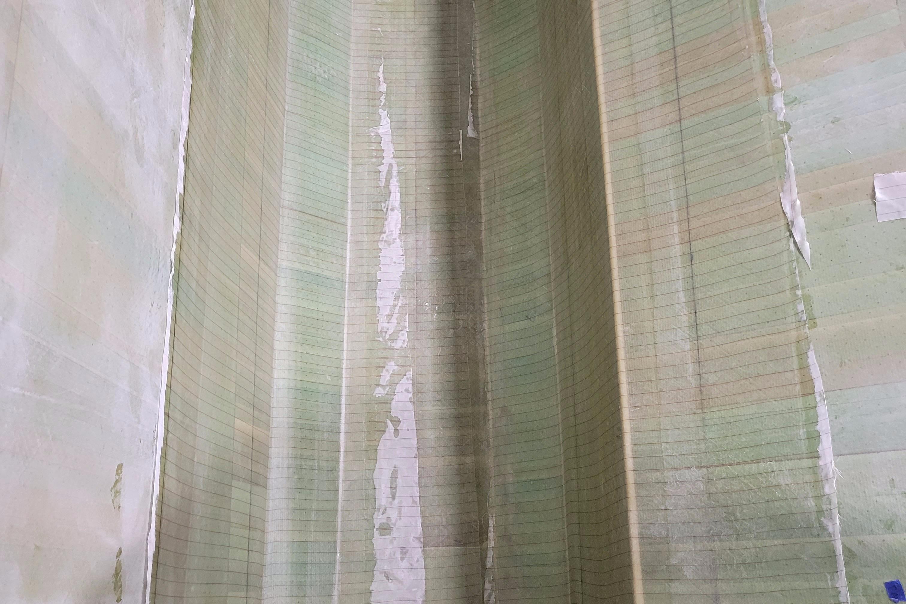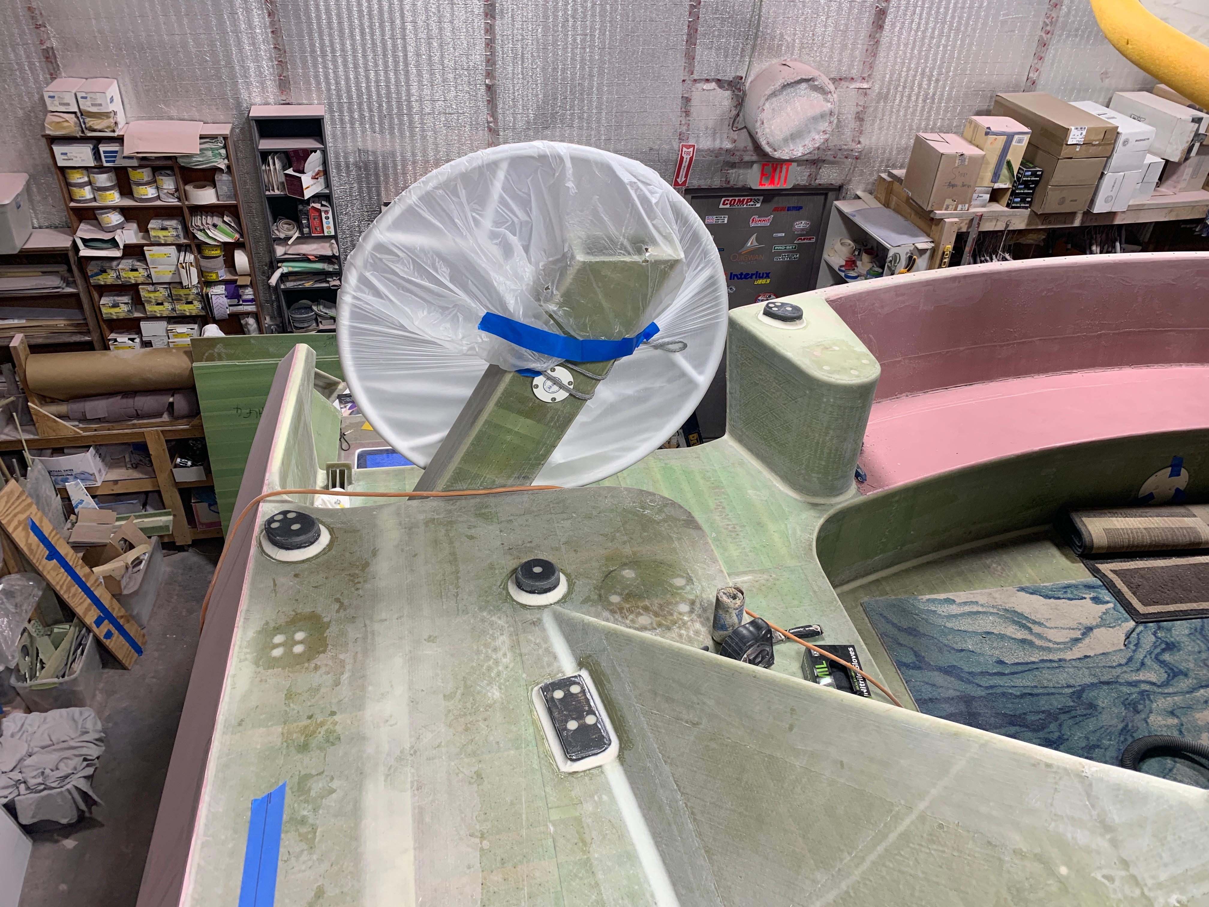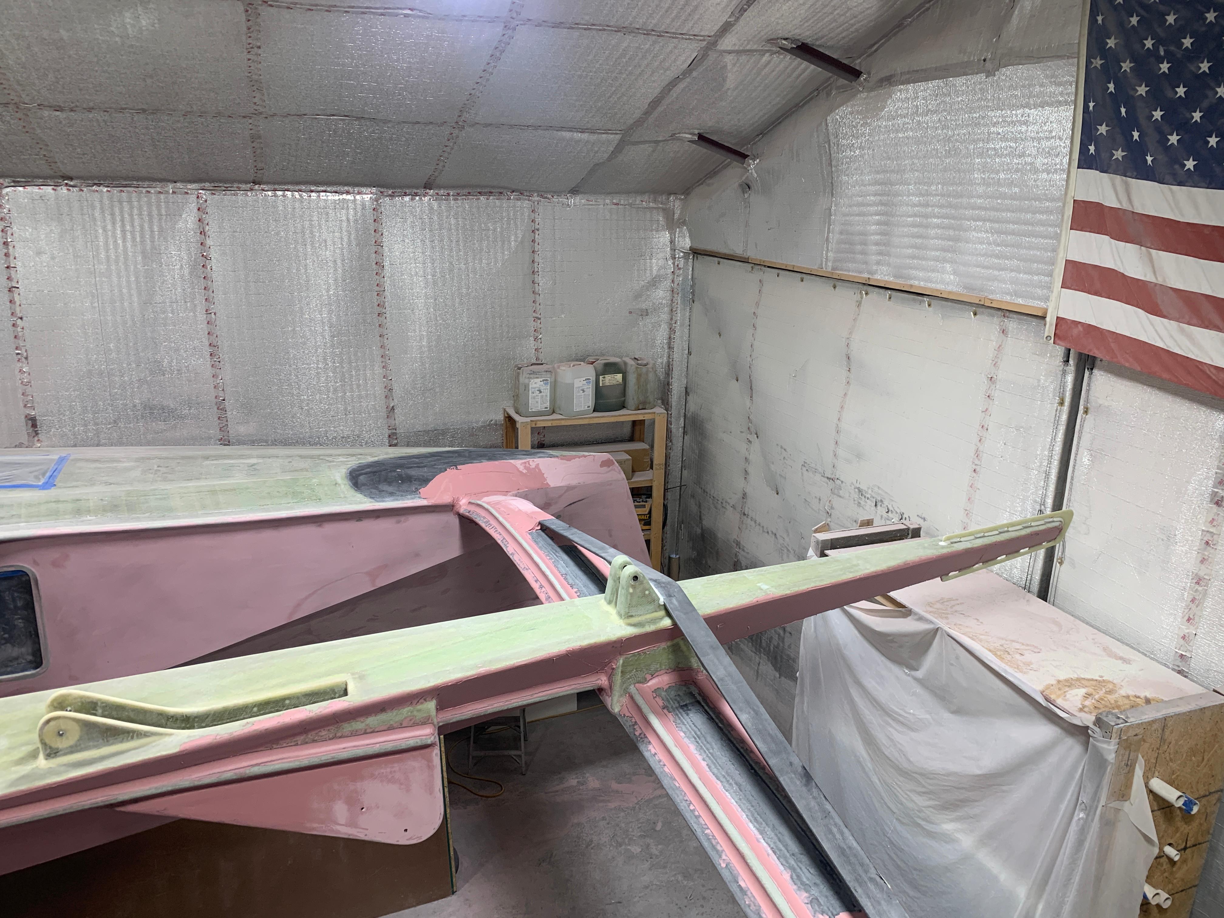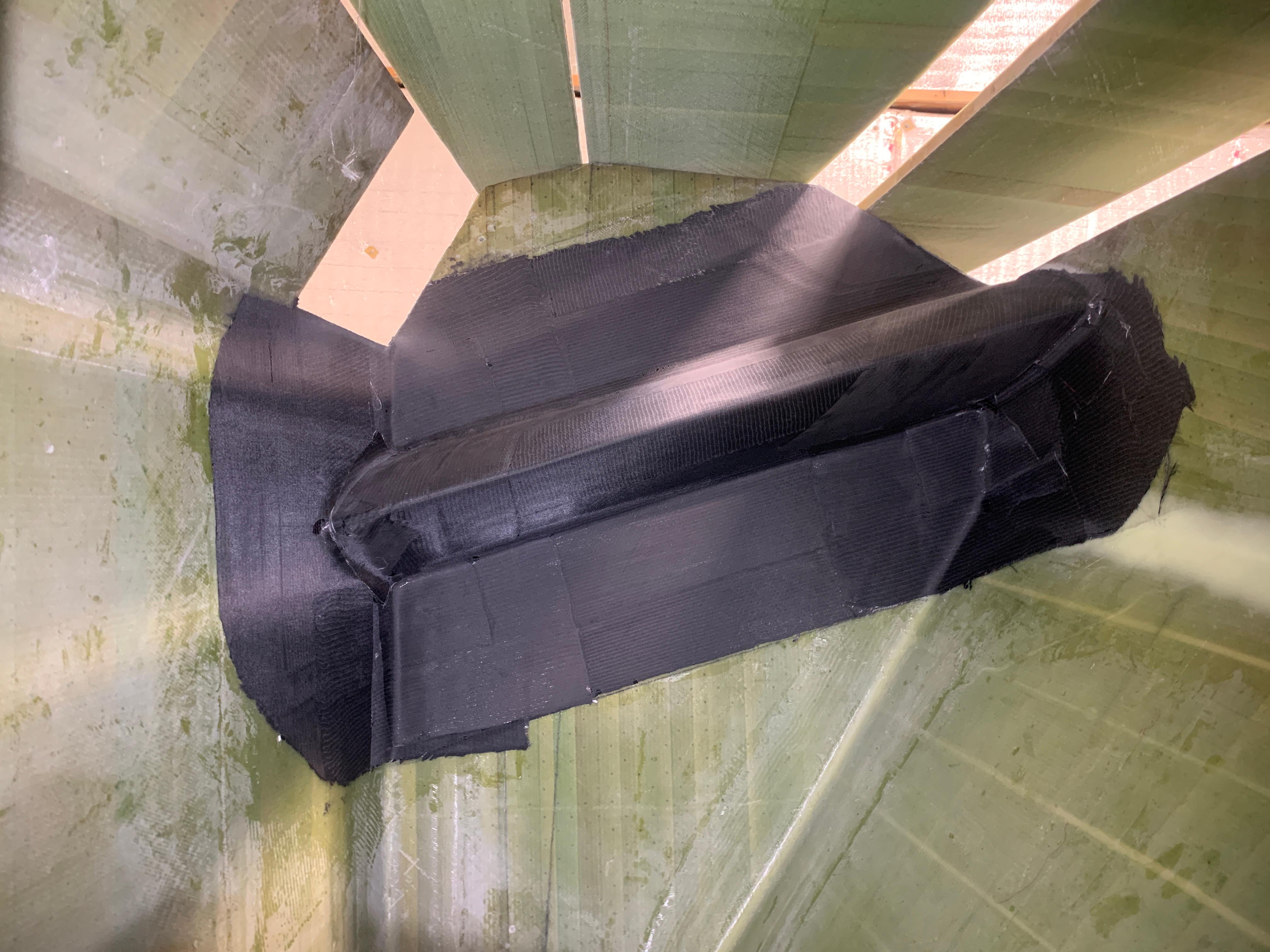 Joined with cabosil/cotton flock high density fillers and epoxy/fiberglass tape lines Faired with epoxy 2 part fairing compound