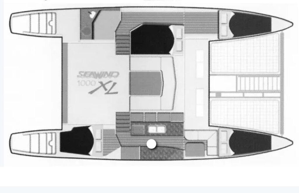 The Seawind Catamaran was designed specifically for ease of sailing and all-weather protection offering dual helms behind bulkhead and canopy protection, all lines lead to the cockpit, 360 degree visibility, and a nice open air salon to the cockpit with great ventilation through the boat. The bright open galley is down in the starboard hull allowing for a bigger galley with more storage and more space in the salon, and the cockpit has no fixed table allowing for more usable space. She also offers a unique hide away drop-down bow ladder for beach boarding. A must see...
