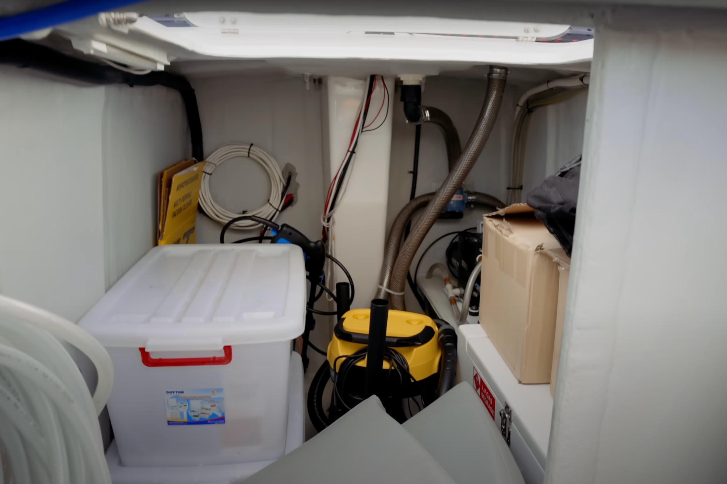 Port Side head – electric shower bilge pump with direct overboard dishcharge