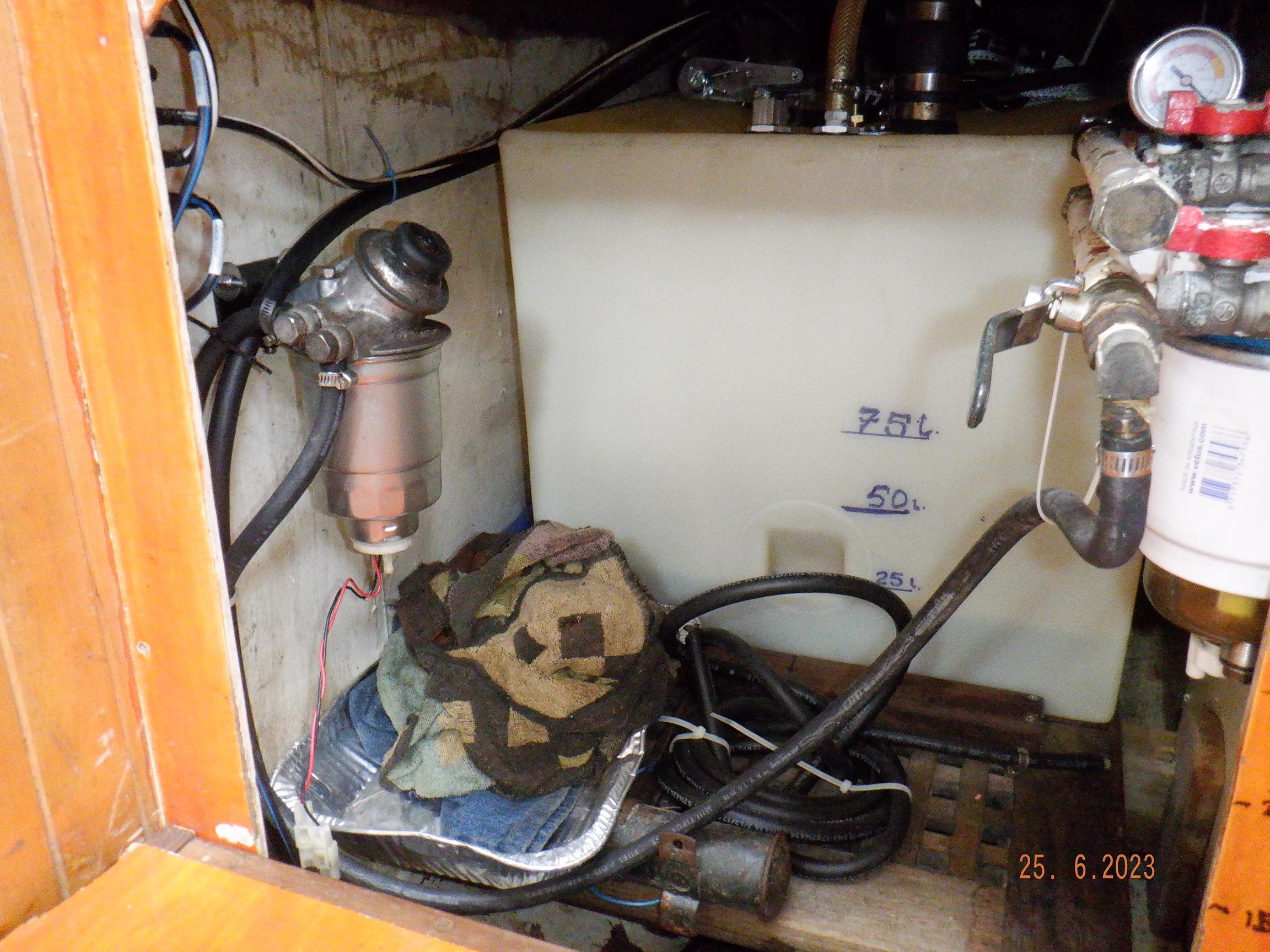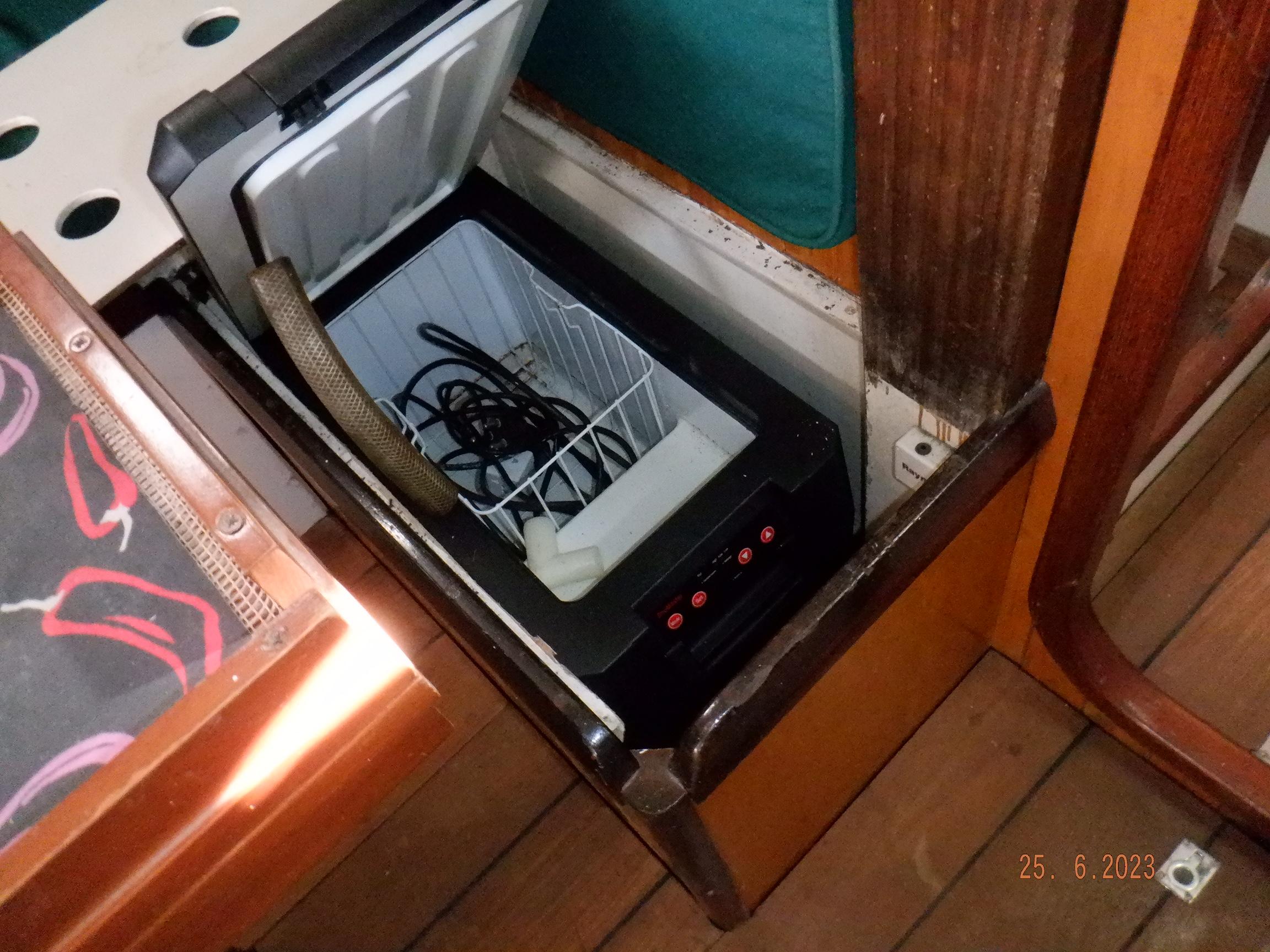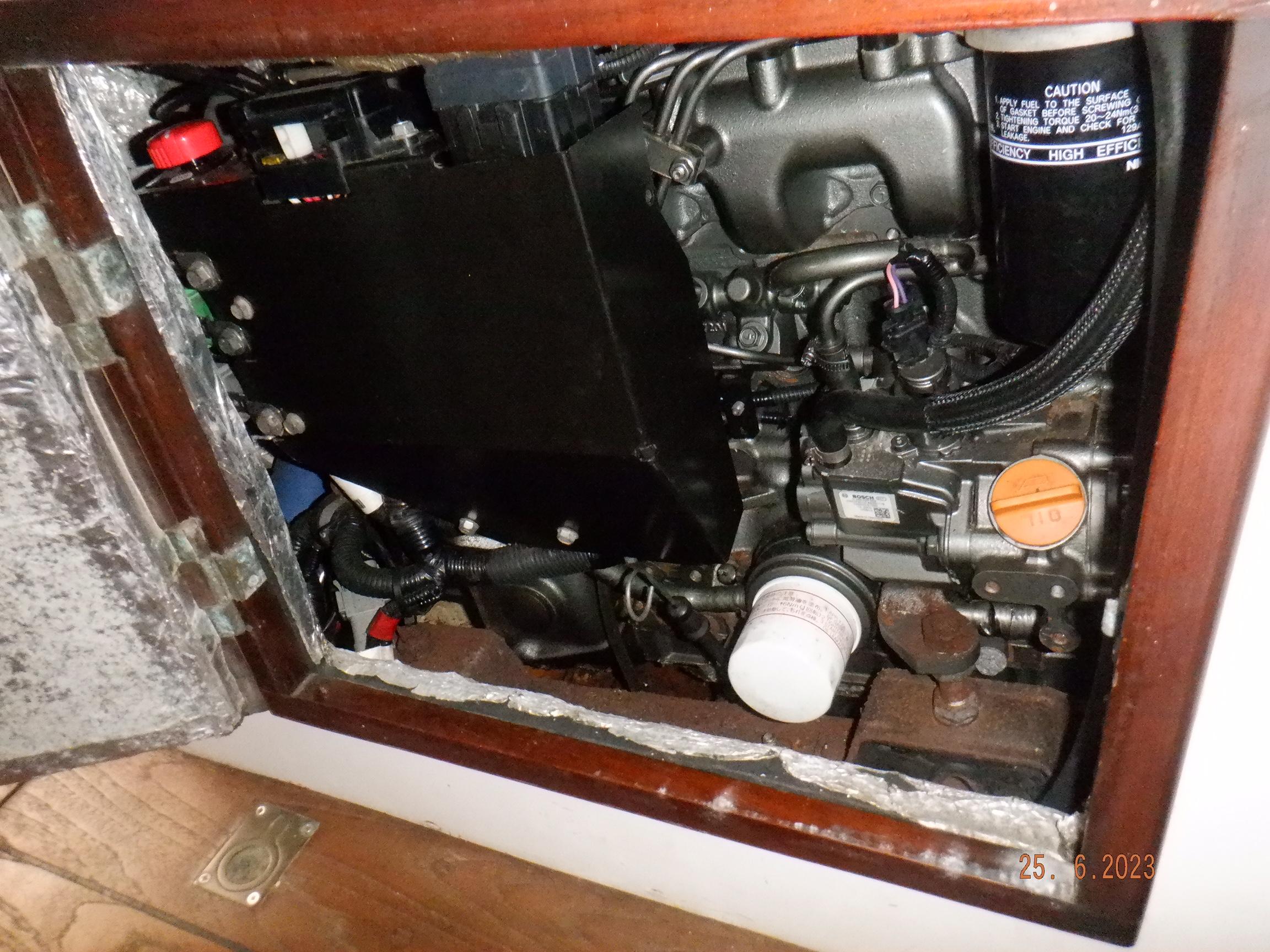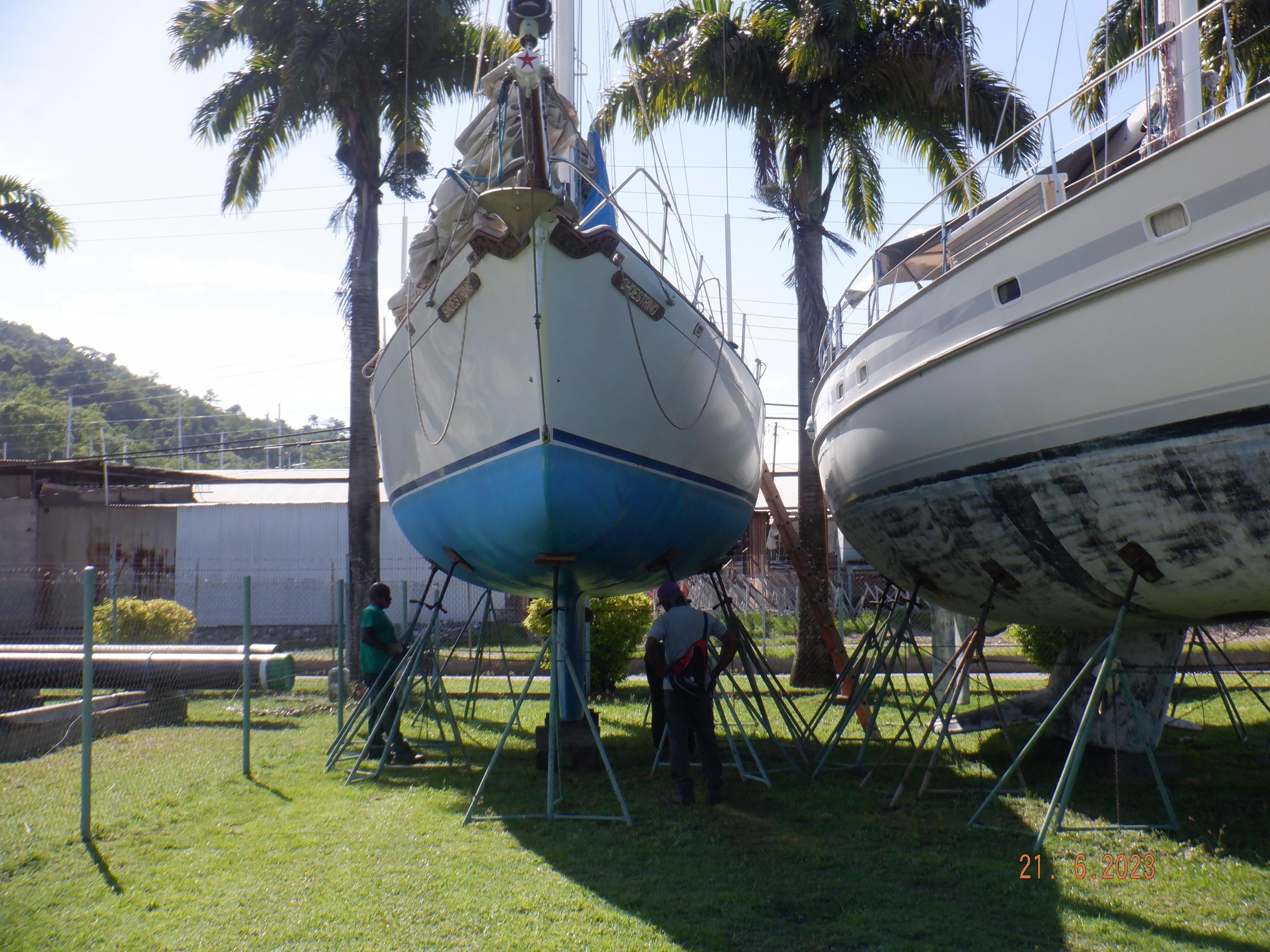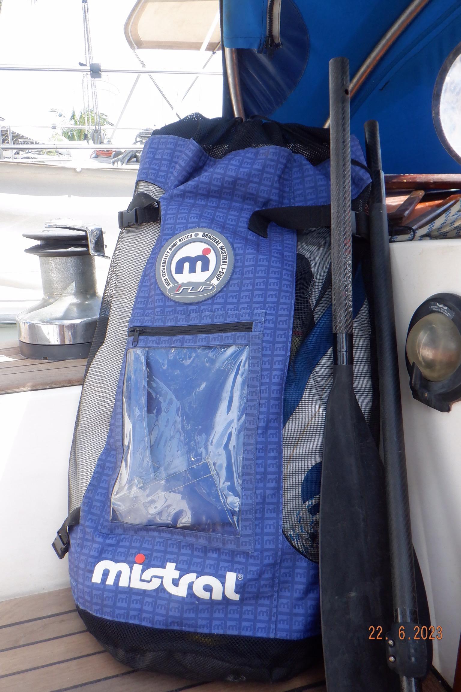 Equipment List Rig/Sails Sparcraft mast and boom, twin spreader. Cutter rigged with masthead staysail. Mast steps up to lower spreaders then a single pair at mast head to provide stability when working at masthead. Removable running backstays Twin backstays 3 forestays. Main forestay to bowsprit end with Profurl furler for genoa. Masthead. Inner forestay to bowsprit base for hank-on staysail. Masthead, making for a well secured mast. Highfield Quick release lever at base. Inner inner forestay to upper spreaders for storm jib. Also Highfield quick release lever at base. Bellamy kicker. Traveller 6 halyards with double purchace main halyard. Grannybar on starboard, with goody-bag designed for easy storage of winchhandle, sail ties, short lines etc. Spinaker pole, plus jockeypole. Ullman stackpack with adjustable lazyjacks. North fully battened mainsail with two reefs Ullman 110% genoa. North heavyduty #3 hank-on staysail, with 4 battens. (my favoured sail when on passage) Quantum reaching gennaker (good condition but colour has run) Storm trysail plus storm jib All sails in good working order. WINCHES IN COCKPIT Lewmar 56st primaries Lewmar 46st secondaries Portside cabintop:- Barlow 25 for toppinglift, reefing lines Starboard side cabintop:- Lewmar 46st for mainsheet, kicker, Cunningham ON MAST Port:- Lewmar 30st for staysail halyard, port spinaker halyard. Starboard :- Lewmar 30st for main halyard, genoa halyard, starboard spinaker halyard, stormjib halyard. Under boom:- for outhaul, plus can use for reefing lines, etc. ENGINE Yanmar 3JH40 common- rail diesel 40hp (hours currently 284hr June 2023) Installed late 2018 KM35 transmission, Vetus Bullflex coupling 30mm s/s propshaft. Fixed blade 17×13 propshaft TENDER/DINGHY ZODIAC 2.5m PVC inflatable (near the end of its life) Inflatable keel, grp over honeycomb floor panels MERCURY 5hp outboard with remote fueltank Paddles and pump, anchor and rode ELECTRONICS (all installed 2016/7) AT NAVSTATION Raymarine eS97 chartplotter/MFD Raymarine Ray60 vhf radio with DSC AIS 650 transceiver Raymarine ACU200 autopilot control (Robertson HLD2000 Mk2L hydraulic ram at rudder quadrant) Garmin GPSmap76 handheld (old & never used, but working. Uniden Atlantis250 handheld VHF (old and battery failing) IN COCKPIT Raymarine eS75 chartplotter/MFD Raymarine P70 autopilot control Raymarine i60 wind instrument Raymarine i70 multipurpose instrument Raymic VHF handheld plus active speaker ON MAST Raymarine Quantum radar ELECTRICS Eclectic Energy D400 wind generator with Xantrex charge/load controller 300w solar panel with Victron MPPT 100/15 controller Xantrex battery monitor 2 off Lifeline AGM GPL-8DL 255ah house batteries 1off xStream Power MF115D31R 85ah cranking amps 830amps engine start battery. Victron blue-smart 30a battery charger Victron Phoenix 12/800 inverter Four electric bilge-pumps in bilge, for quick clearance of water. One extra large manual bilgepump in saloon area. WINDLASS/GROUNDTACKLE Maxwell RC10/10 1200w 12v vertical axis, with capstan. Maxwell Autoachor 710/6 cordless remote control. Secondary Up/Down control box out of forecabin(thru hatch). Keeps switching equipment away from damp environments except when in use. VULCAN 20kg galvanized anchor FOB HP 20kg galvanized backup anchor CHAIN/RODE:- (connected) 70m of 10mm galvanized chain (backup) 30m of 10mm galvanised chain plus 50m of rode. Stored underforepeak bunk in separate locker, with tubular feed up into anchor locker on deck, connected permanently for quick access. ON DECK 2 dorades ahead of traveller feeding fresh air to galley and starboard aft cabin. Teak mounting brackets for boathook/paddles/oars/battens/etc. Sampsonpost with s/steel plate atop, useful when cutting/drilling etc. Ample cleats, fairleads, clutches etc. Pressurised seawater deckwash outlet on portside deck. Various fenders, docklines. 2x 25liter diesel jugs. 1x 10liter petrol jug. GALLEY Force 10 2burner stove with oven/grille. Adjustable Potholder brackets, Gimballed. Replaced Jan 2020. Ample pots, pans, baking/roasting trays, pressure cooker, s/steel kettle. Full range of chefs equipment, knives, ladles, tongs, graters, etc etc etc. Six-piece cutlery (s/steel) crockery (melaware), mugs and glasses, with spares of certain items. Ample airtight containers for in-use ingredients, plus food storage. Double sink, fed by pressurised cold fresh water, footpumped drinking water, and footpumped seawater. HEADS Vaillant gas waterheater to handbasin, never used but tested from time to time. JABSCO compact electric toilet Pressurised hot/cold water to handbasin. Handshower incorporated into tap unit. SAFETY EQUIPMENT Viking 4man cassette liferaft, mounted in quick release bracket on deck. MOB horseshoe life-ring with danbouy. 4 x PFDs 6 x life jackets Waterproof canister with flares, smoke signals, mirror, etc. 2 off 2.5kg drypowder fire extinguishers. 1 off 2.0kg CO2 fire extinguisher. Rigging Shears (1/2 inch/ 12.7mm) capacity, brand new in box. Ullman sail repair kit MISCELLANEOUS Nikon 12×50 binoculars 2x goggles, 2x snorkels, 2x flippers Spareair 15min scuba tank 1 x scuba bottle (almost full, used to fill Spareair. 2 x sleeping bags Fitted sheets for all bunks, pillows and pillowslips 8 x scatter cushions for saloon Various bath towels, hand towels, beach towels, kitchen dish towels and hand towels. Gas braai/barbecue mounted on pushpit. Coldwater handshower in cockpit. Bosuns chair Rope climbing kit for solo mast climbing 12v air compressor 2 x boathooks Full set of handtools (all mounted) to carry out any repairs/service. Makita 18v cordless anglegrinder Makita 18v cordless 13mm drill Makita 18v cordless 10mm angledrill Makita 18v cordless orbital sander Makita 18v cordless jigsaw 220v/18v Makita charger 12v/18v Makita charger. 2off Makita 18v 5ahr batteries 1off Makita 18v 1.5ahr battery Makita18v cordless airblower Makita 18v cordless hand vacuum. Bench vice attached to workbench. Various spare belts, filters, nuts
