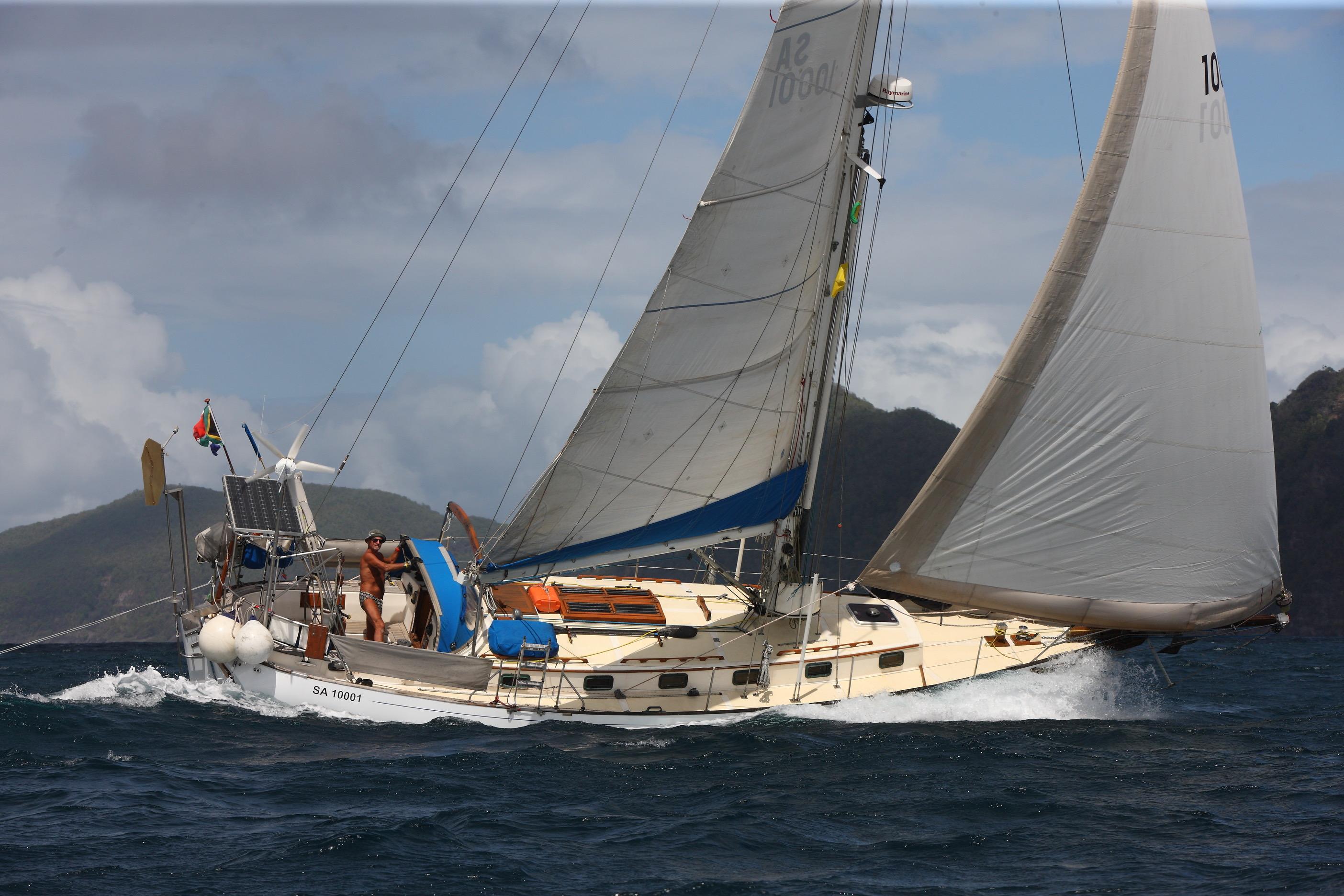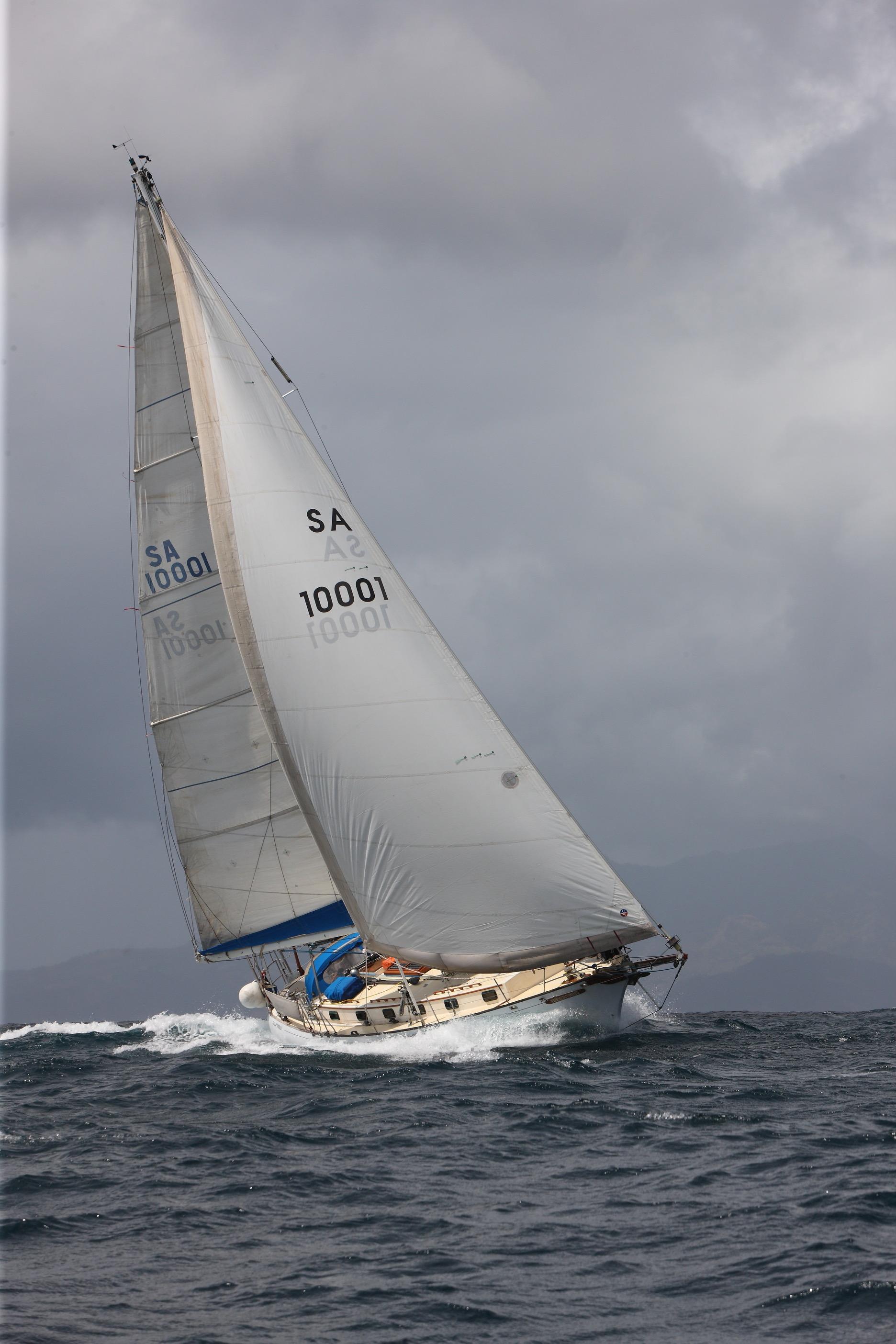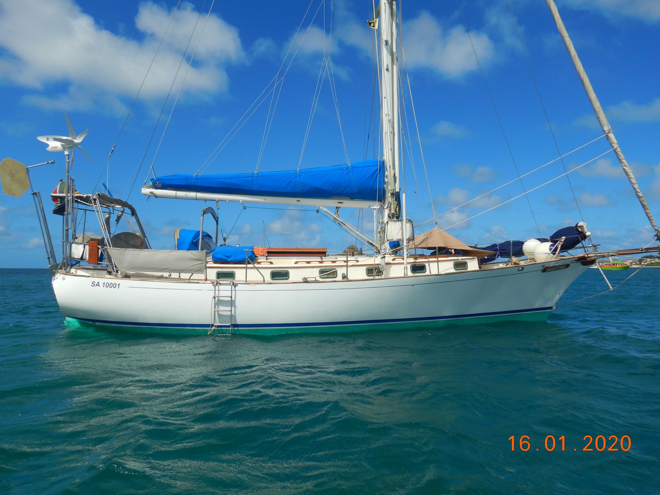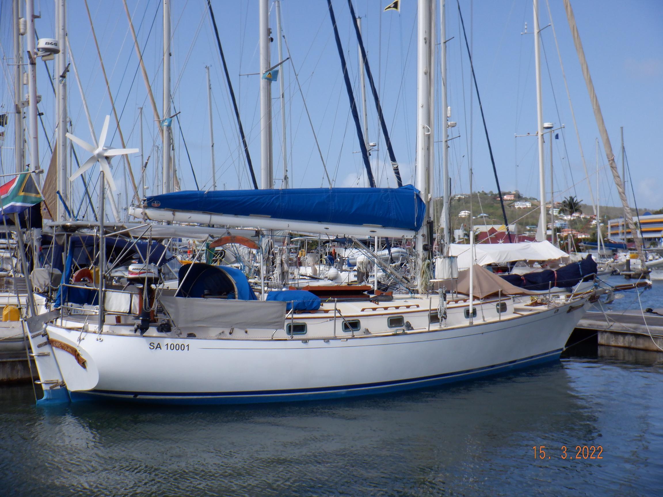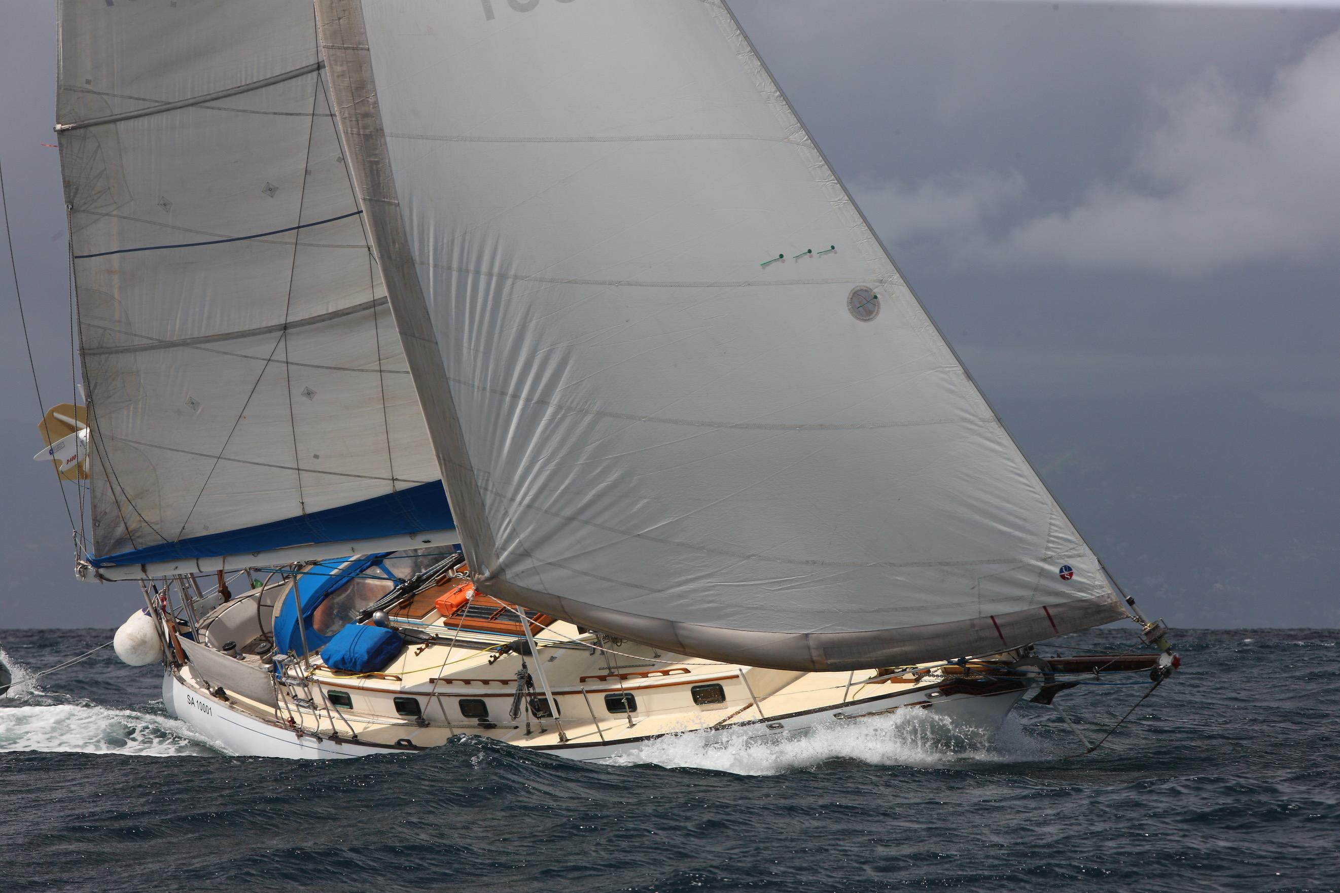 Fitted out and launched in 2002 by Peter Muzik, a well known South African sailing character, for the specific purpose of completing a circumnavigation, she was an ideal choice for the task ahead. Classically beautiful lines disguise a fast, stable, and smooth-riding hull form, providing a wonderful platform for covering large distances in safety and comfort. Her clipper bow keeps her decks dry and her optional long bowsprit creates a larger foretriangle for greater sail options. Likewise, the masthead inner forestay provides better sail options with the added bonus of a more securely supported mast. An inner-inner forestay up to the top spreaders takes her storm jib, both inner stays using Highfield levers for deck quick-detachment. Twin backstays, running backstays, a twin-spreader high duty Sparcraft mast, round off a vessel fit-for-purpose. Built to Lloyds specifications for blue-water sailing, this was exactly her raison detr. Solo sailing presents no shortcomings, with her direct-to-rudder windvane steering system, powerful autopilot, and well equipped cockpit. Lewmar 56st primary winches make sail trimming a breeze; everything about this yacht has been well-considered.
