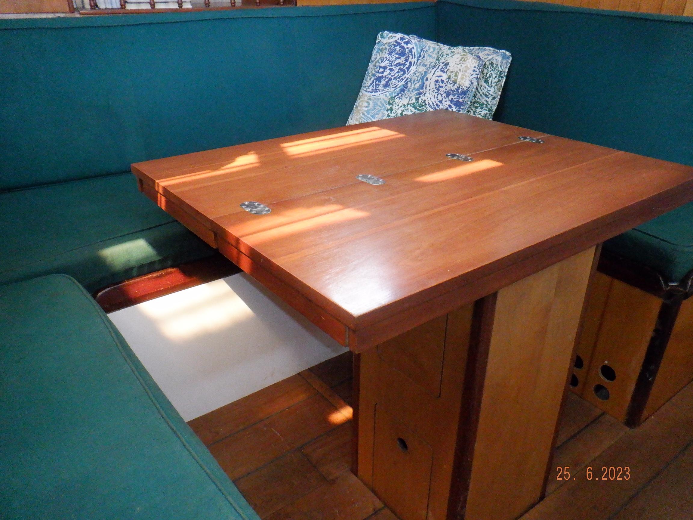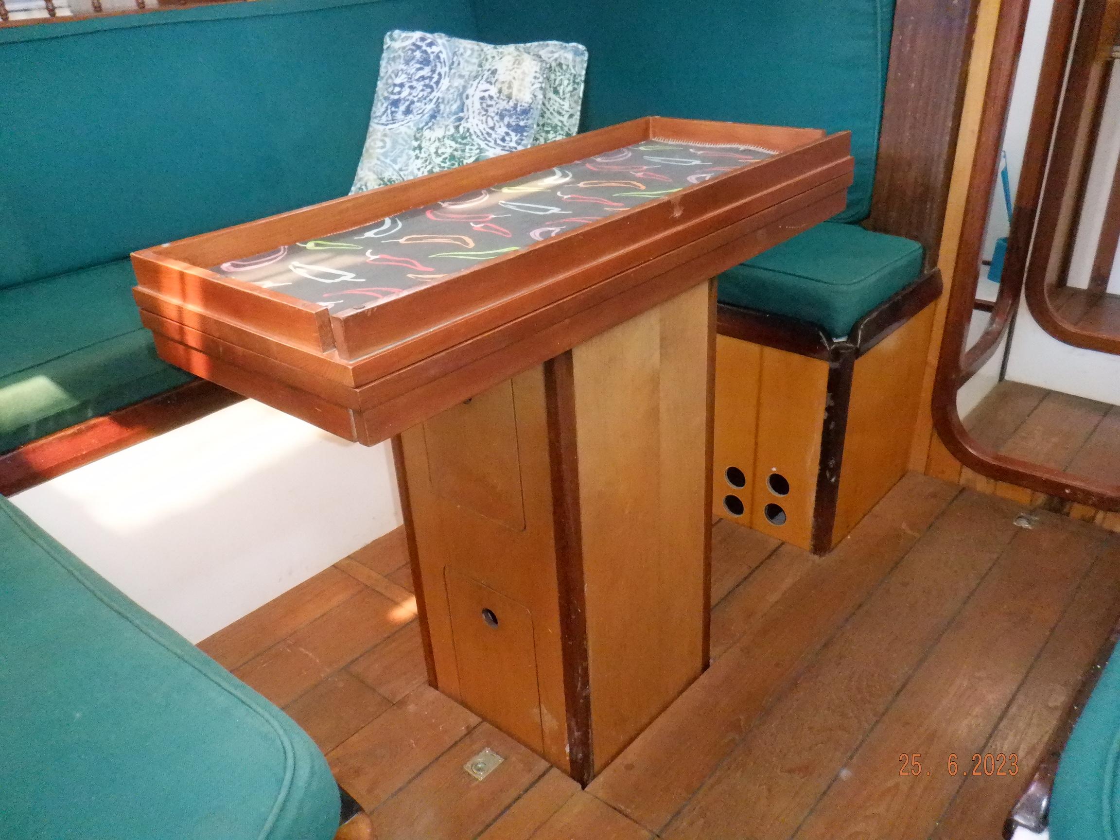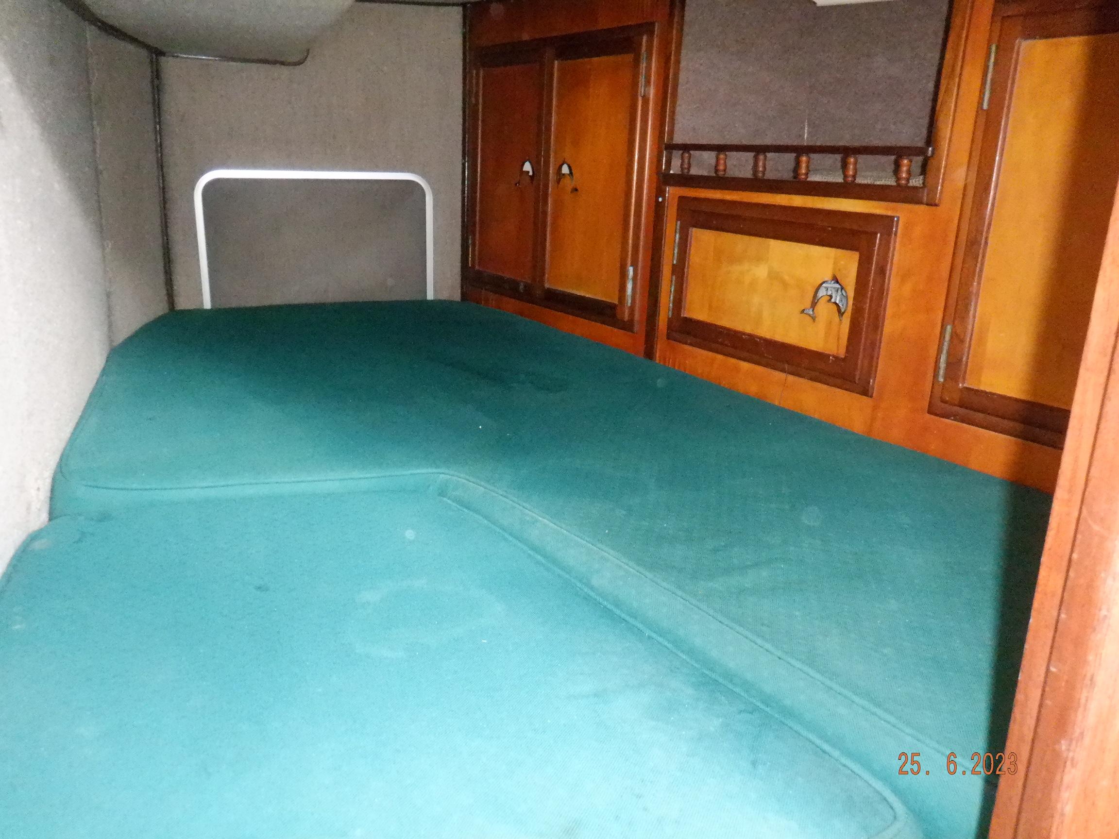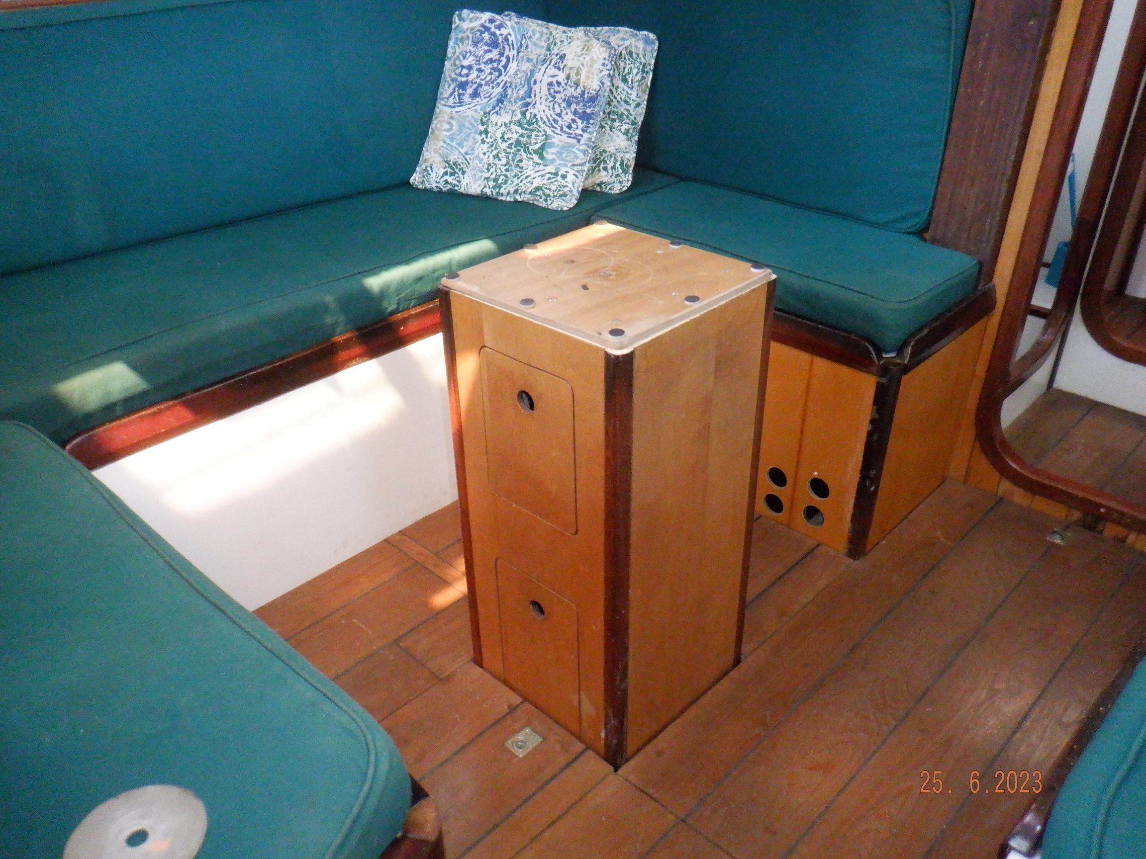 DESCRIPTION General Interior Shoestring has a 3 cabin layout with a single heads, as per the brochure. The forecabins pullman berth has been enlarged to cover the full floorspace, creating an extra sail locker, but this can quite easily be reversed. The starboard quarterberth is a full double, whilst the port quarterberth is a 3/4 cabin. The main saloon settees also make comfortable pilotberths. The bunks average 2meter long. The heads has an electric toilet, and a pressurised gas-heated shower. More than enough lockers, drawers, and cupboards to stow everything. Opposite the heads is a custom workshop, with workbench and vice, and custom tool storage. Foldable dining table in saloon. Saloon hatch is a 115x70cm (45x28inch) two-leaf butterfly hatch with tinted shatterproof glass. Cockpit and deck area Cockpit and cockpit sole lined with 22mm Burmese teak. After 20years is not even half worn yet. Edson pedestal (chain/cable steering to quadrant on rudder), 36inch s/steel leather covered wheel, foldaway table and removable cup/glass holders. Canvas dodger and bimini,. Transom-hung rudder with 4 s/steel steps on either side for boarding (always available in an emergency), emergency tiller permanently mounted on rudder, folded up out of the way. Winch positions and uses all listed in Equipment list. Clutches for all lines. Shoestring is a Category A craft for trans-ocean sailing and is fully equipped for this. There are on-deck teak racks for boathooks, oars, fishing rods, battens, etc.