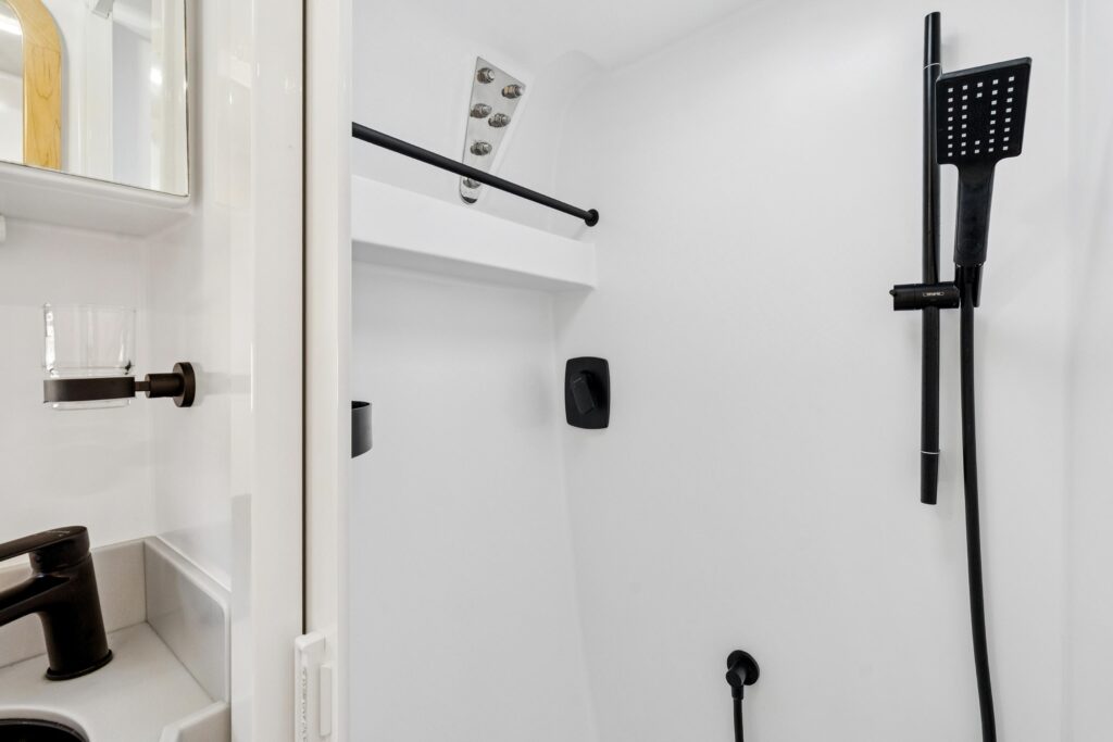 Twin 57hp Yanmar engines with 10kW electric motors for efficient, quiet cruising.