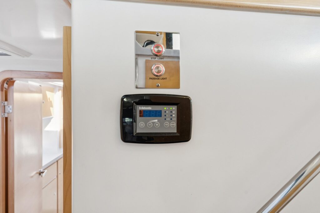2 x Fireboy-Xintex #MA0450NVC automatic and manual gas-filled fire extinguishers – includes heat and smoke detectors, an engine shutdown system, and a helm station status panel with audible and visible alarms