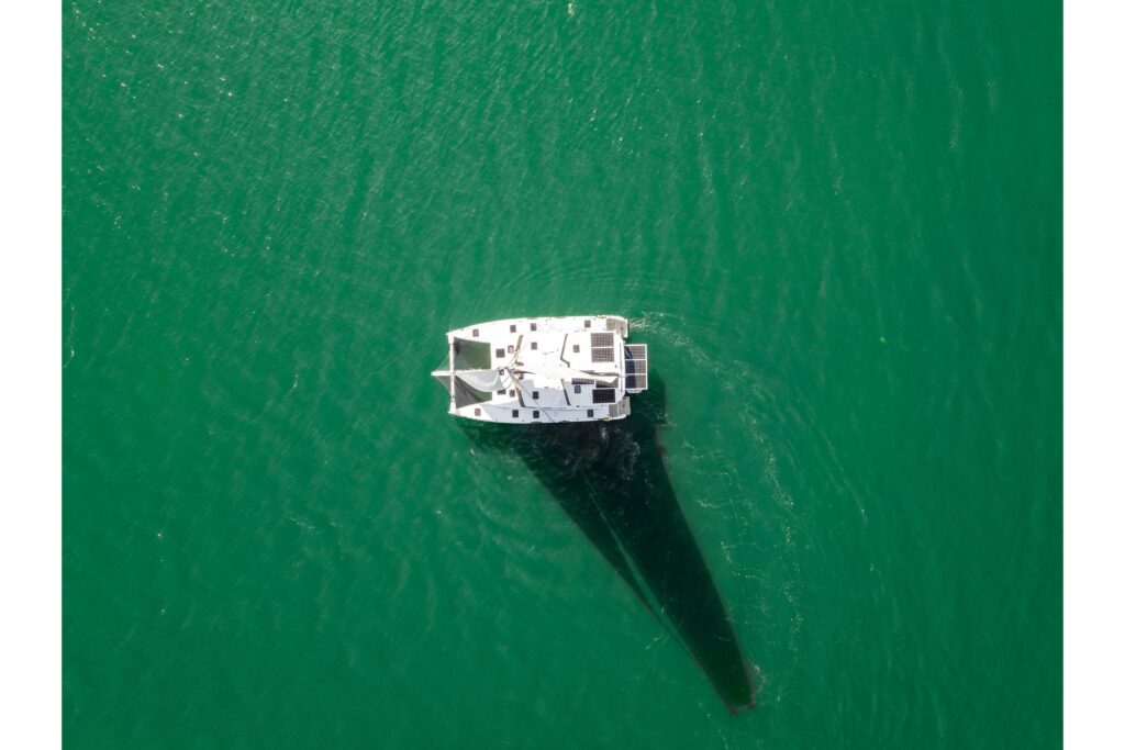 Carolina Red is a flagship example of this advanced design. Built for long-range efficiency, she features foam sandwich/marine ply construction with fully carbon-wrapped hulls. Her hybrid propulsion system combines twin 57-horsepower Yanmar diesel engines with 10kW electric motors, delivering performance with eco-conscious versatility.