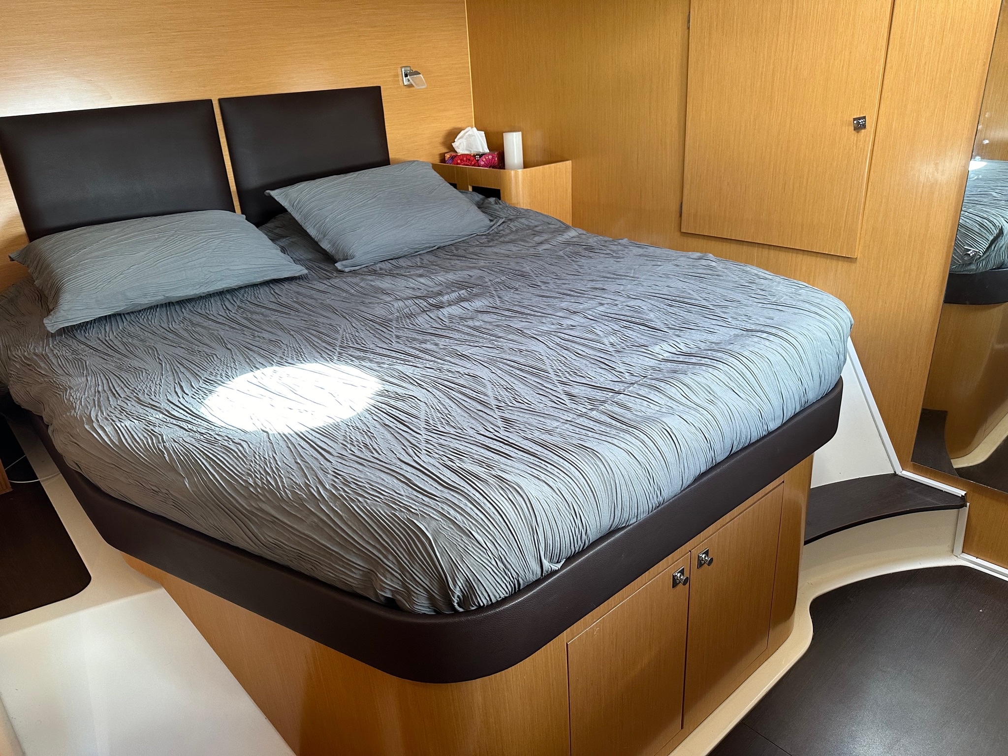 Cabins for the owner and crew are very private due to the twin hulls, with no single bulkheads required between the cabins. Fore and aft cabin arrangements can offer true three or four double cabin versions without compromising space and storage. On every model, the cabins enjoy generous dimensions, great headroom, wide passageways, and are situated well away from the engine rooms, ensuring they are quiet and fume-free retreats. The cabins feature excellent ventilation systems and natural lighting, courtesy of the generous portholes. There is also spacious access to the large beds with the benefits of en-suite bathrooms.
