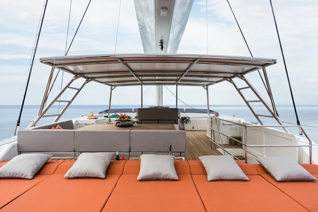 MAJOR refit items include: new engines, mast-off rigging full inspection and recalibration and replacements , new enlarged and integrated water tanks, massive new tender lift platform provided by Sunreef, new copper coating and bottom paint and all anodes replaced, bow thrusters completely rebuilt, new protective hull wrap in matt grey, newly constructed crew cabin and mess, all new Flexiteek decking on (new) areas forward and on all sides, new windlass’s, dive compressor and storage locker refit with optimized storage spaces, complete engine room repaint and insulation, generators full overhaul brought back to zero hours, full air-conditioning overhaul and new installations, all bilges repainted, new thru hulls and hoses, all sails serviced, etc etc.