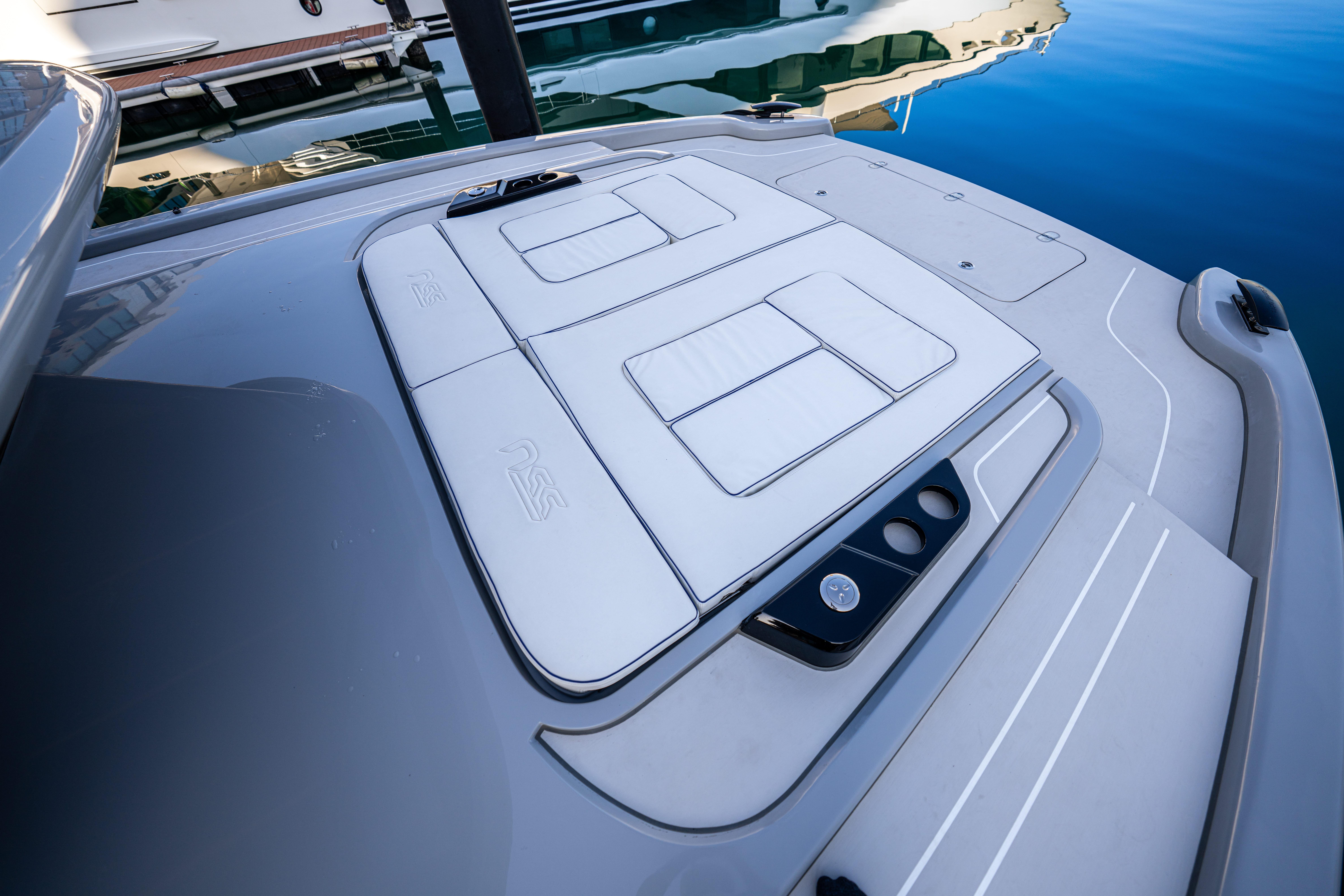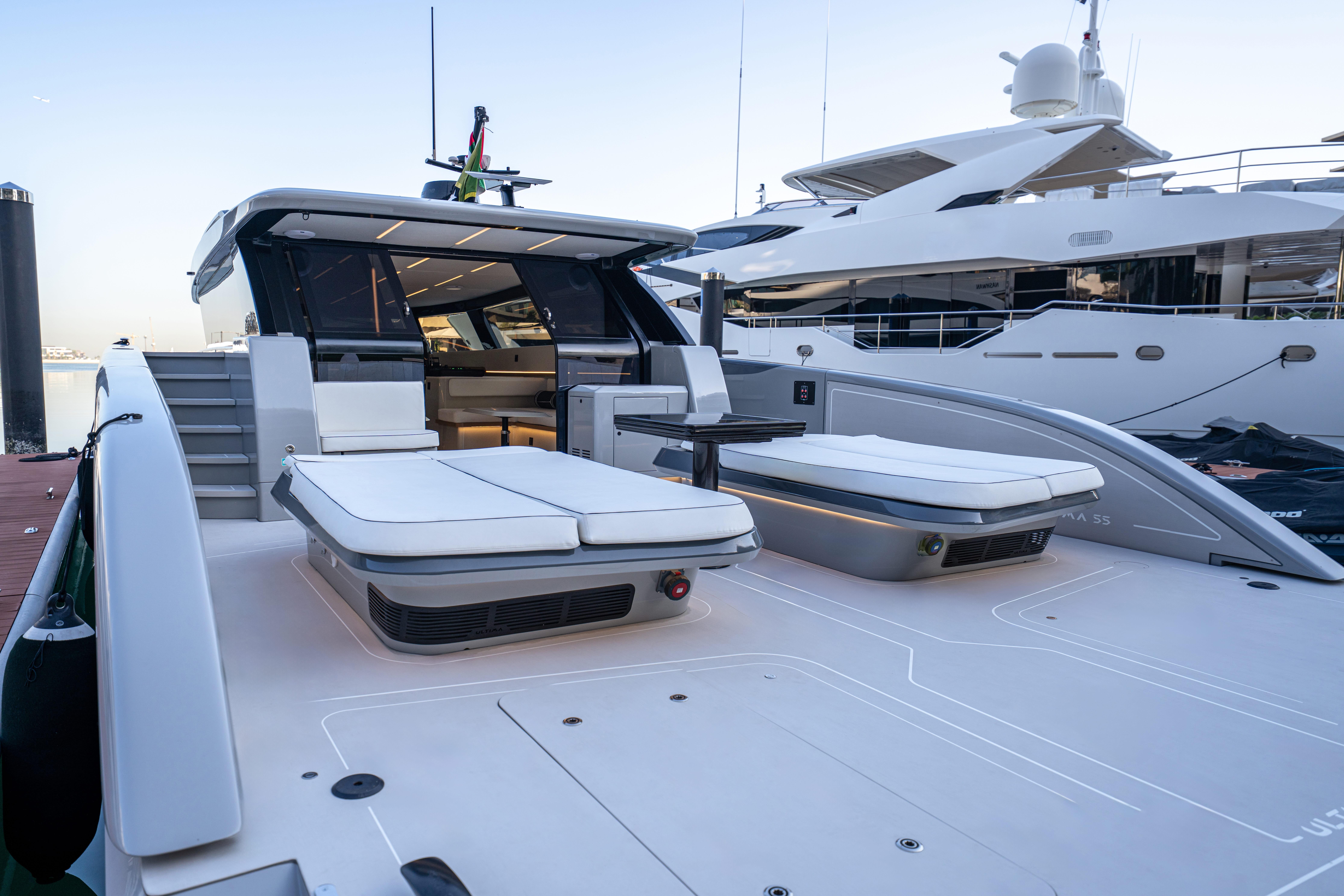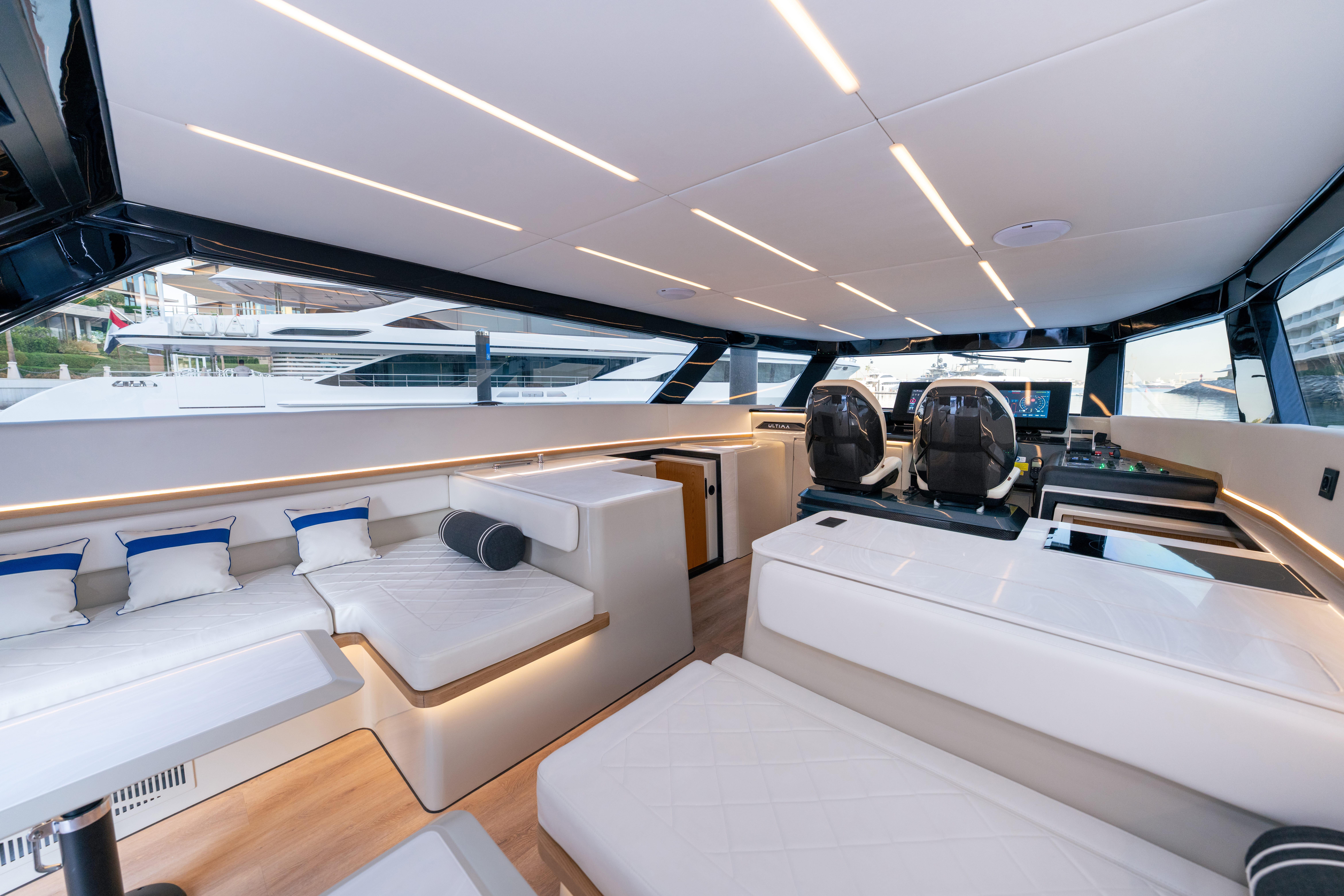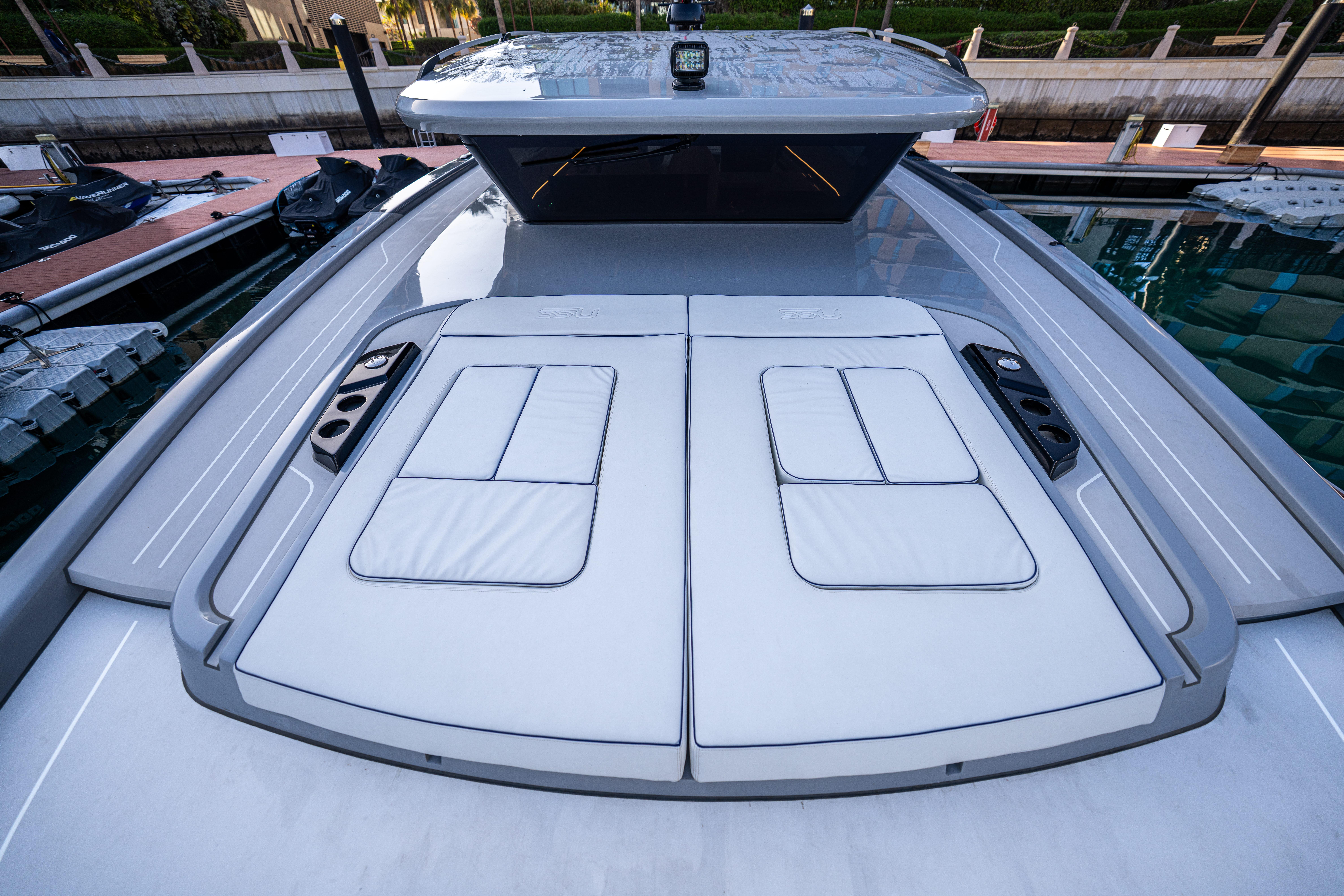 Her design is centered around open living and seamless movement. A full walkaround deck enhances safety and flow, while the vast semi-open saloon connects effortlessly to expansive aft lounging areas. Twin fold-down bulwark platforms extend the beam at anchor, transforming the stern into a true waterside retreat. Custom sea-stairs ensure safe and easy access to the water, while smart, integrated storage solutions keep water toys organized and ready for use.